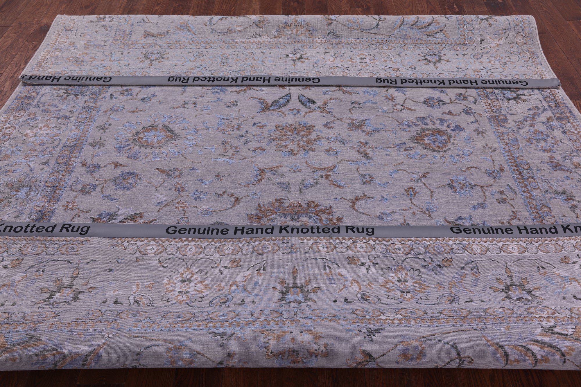 Grey Persian Tabriz Wool & Silk Hand-Knotted Rug 8' 1" X 9' 10" - Q19128 is backordered and will ship as soon as it is back in stock.