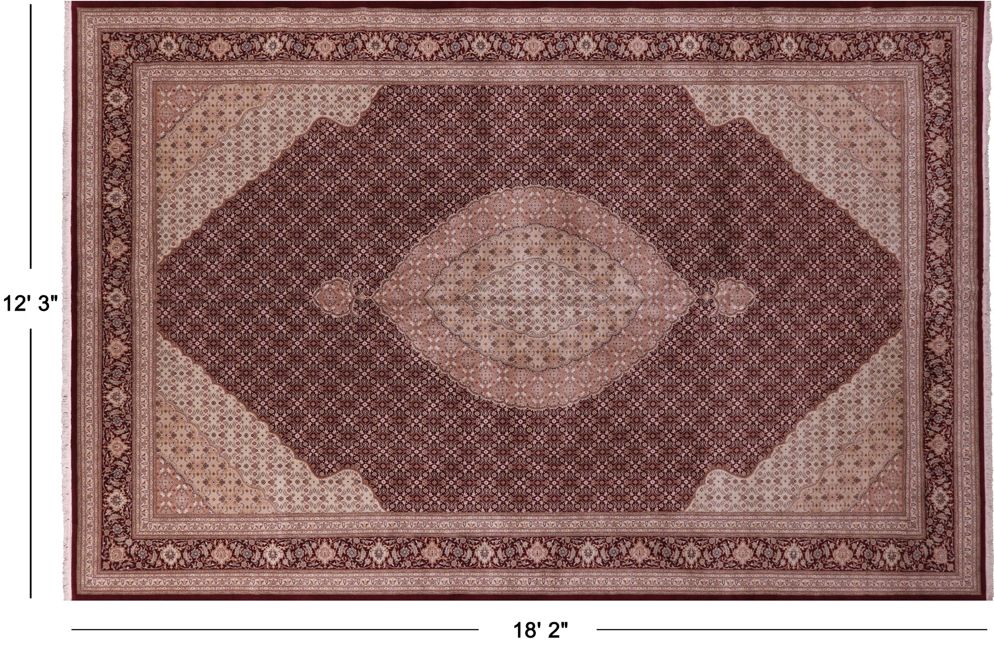 Burgundy 12' 3" X 18' 2" Persian Tabriz Hand Knotted Wool & Silk Rug - Q23670 is backordered and will ship as soon as it is back in stock.