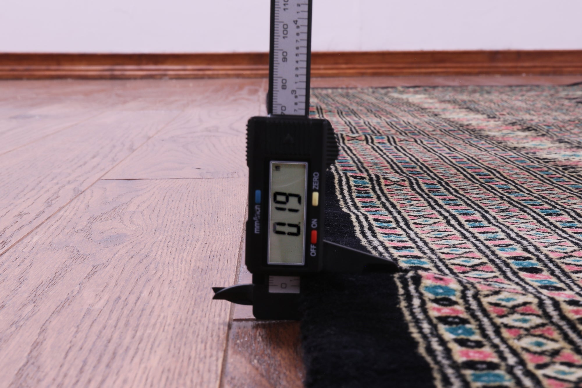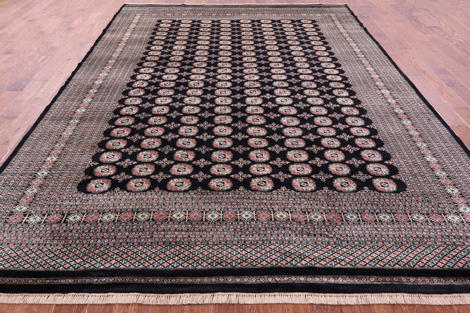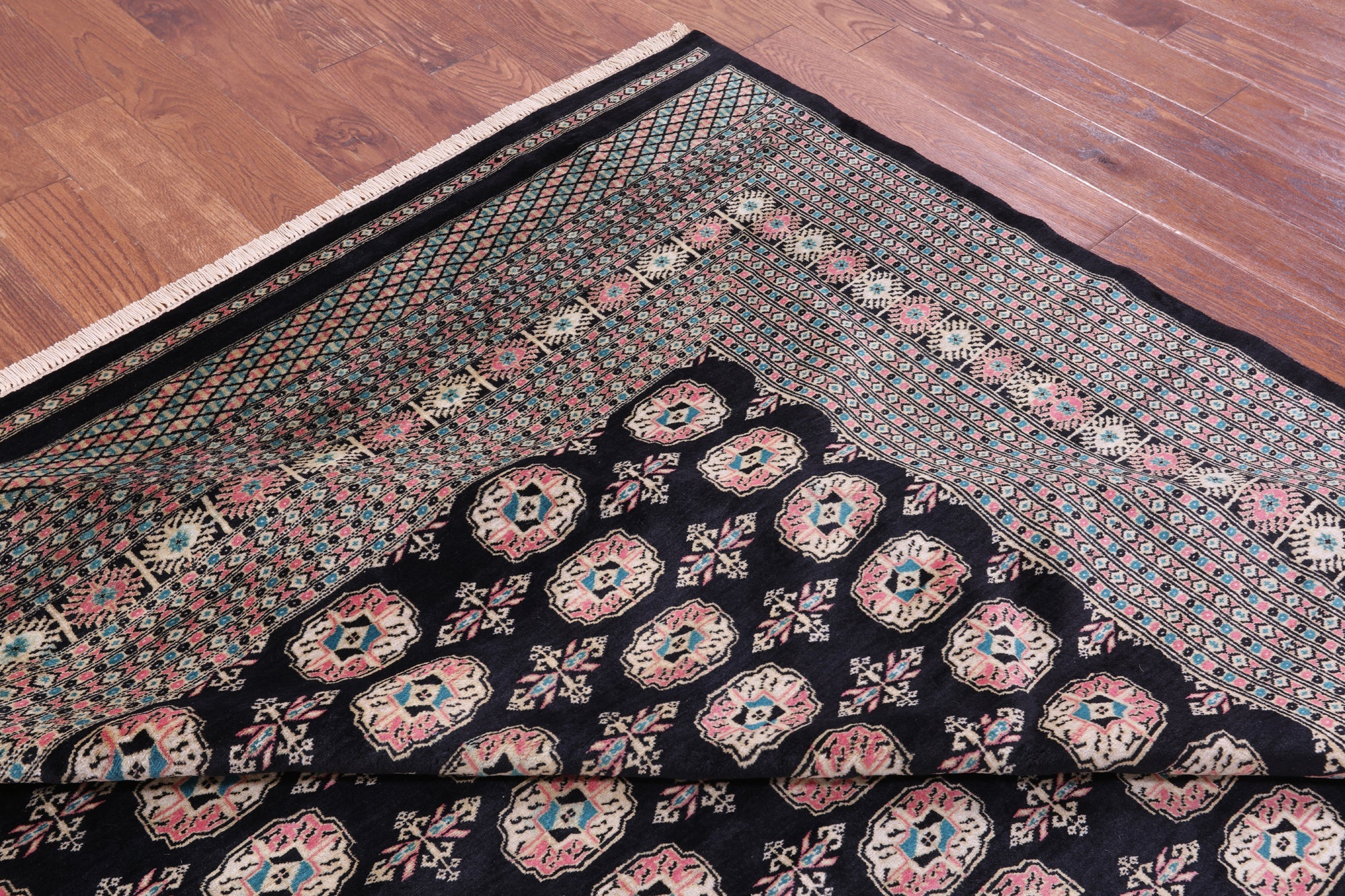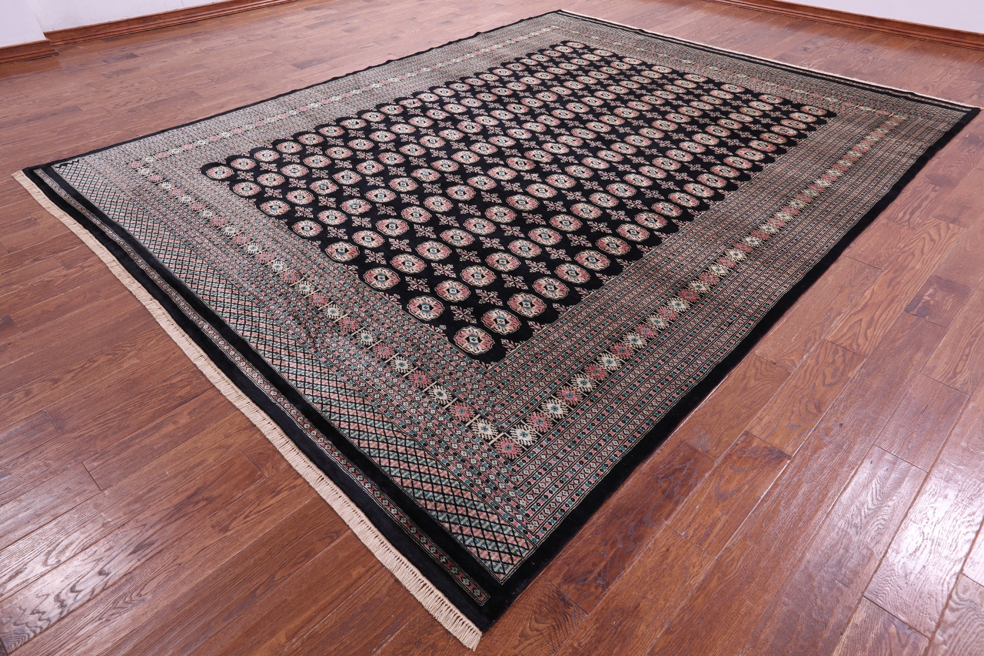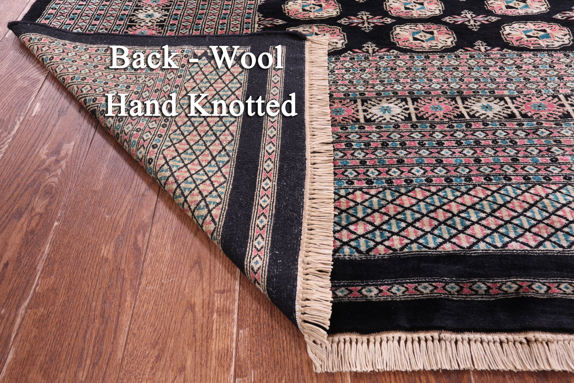 Black Silky Bokhara Hand Knotted Wool Rug 9' 1" X 11' 9" - Q23530 is backordered and will ship as soon as it is back in stock.