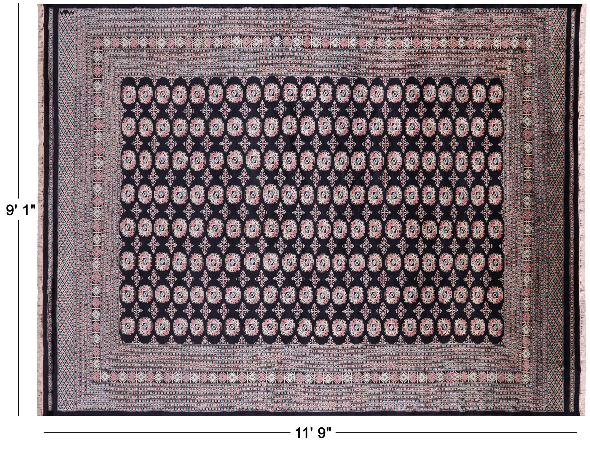 Black Silky Bokhara Hand Knotted Wool Rug 9' 1" X 11' 9" - Q23530