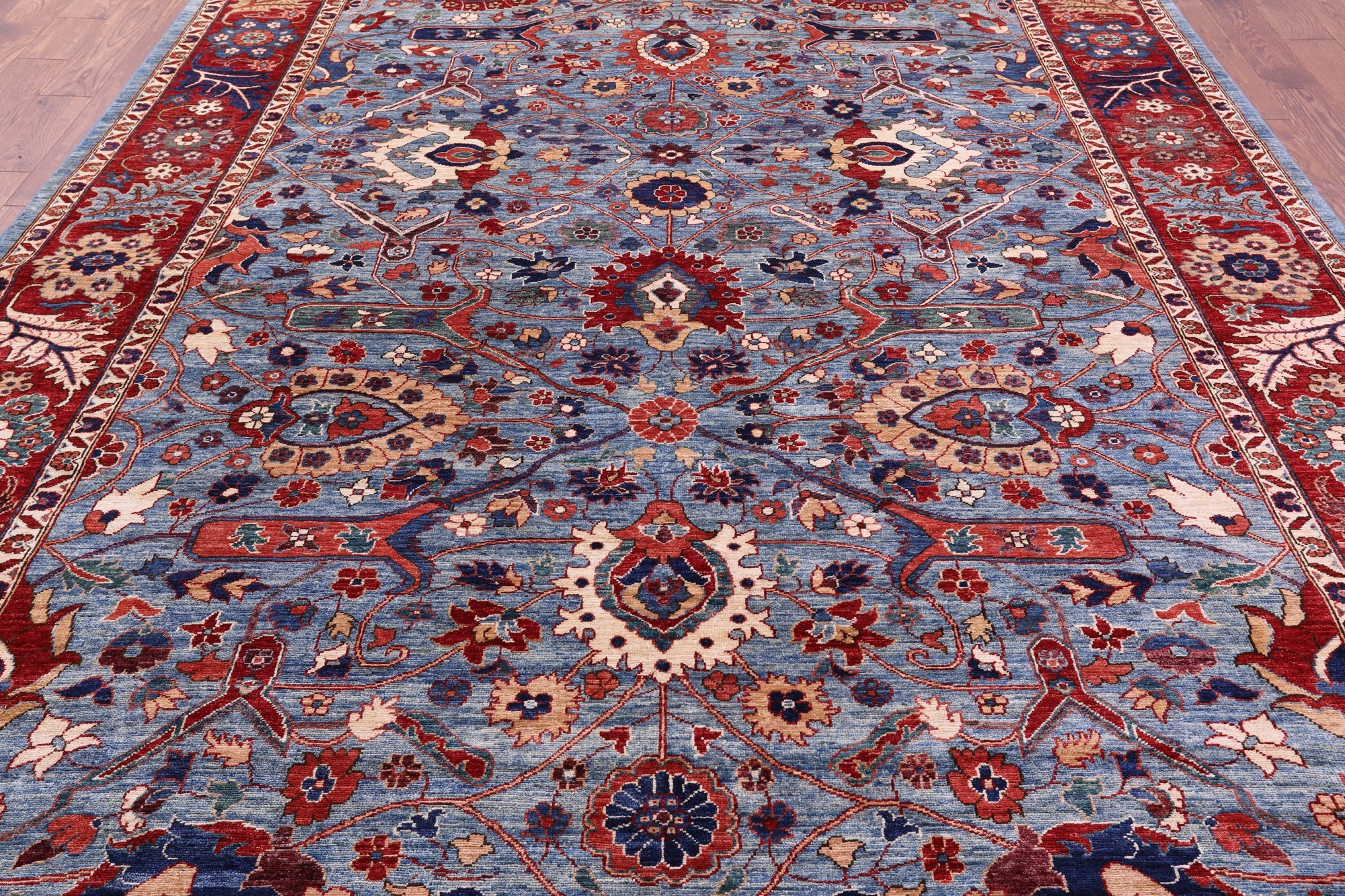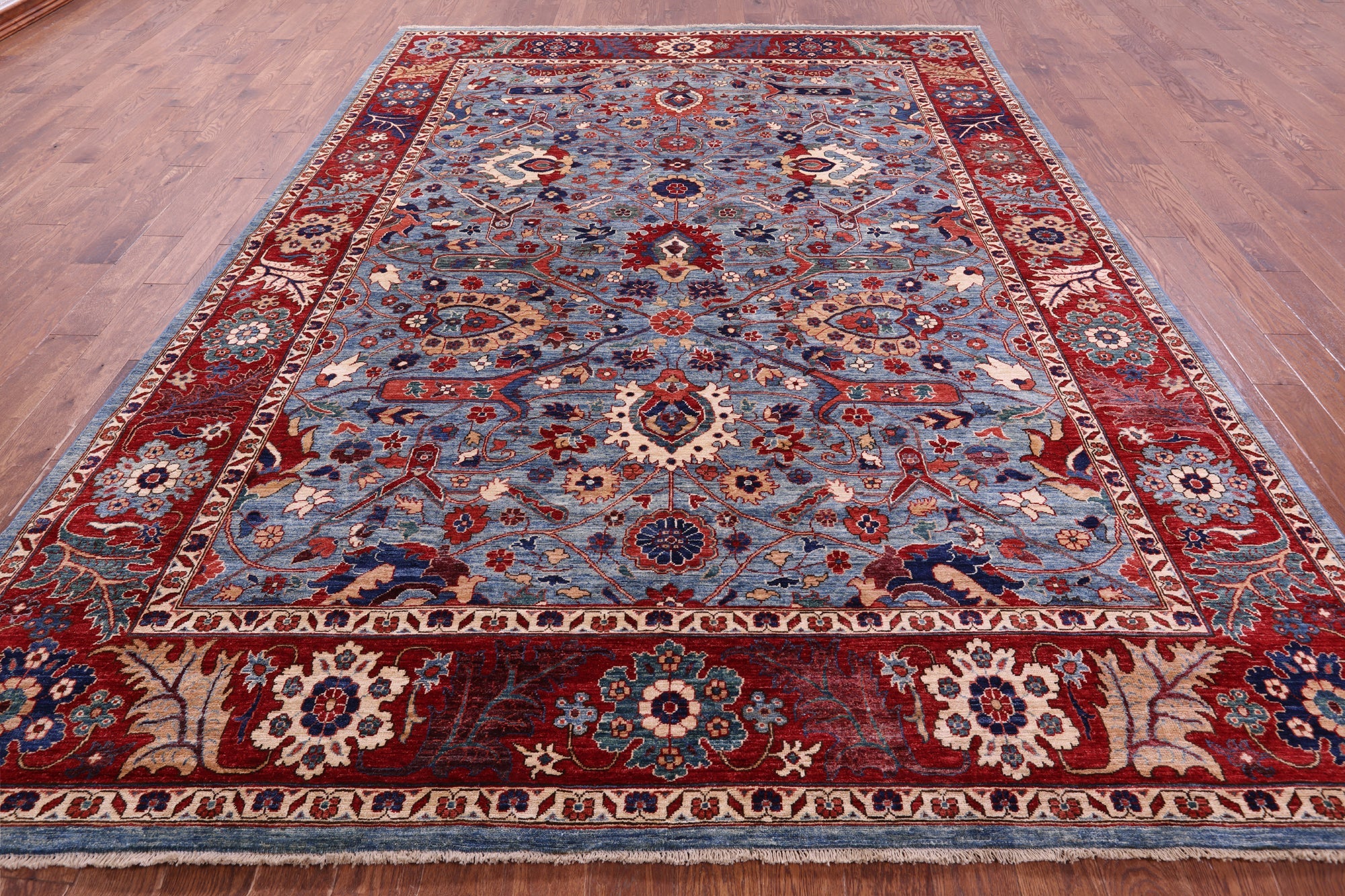 Blue Persian Heriz Serapi Hand-Knotted Wool Rug 8' 10" X 12' 1" - Q23057 is backordered and will ship as soon as it is back in stock.