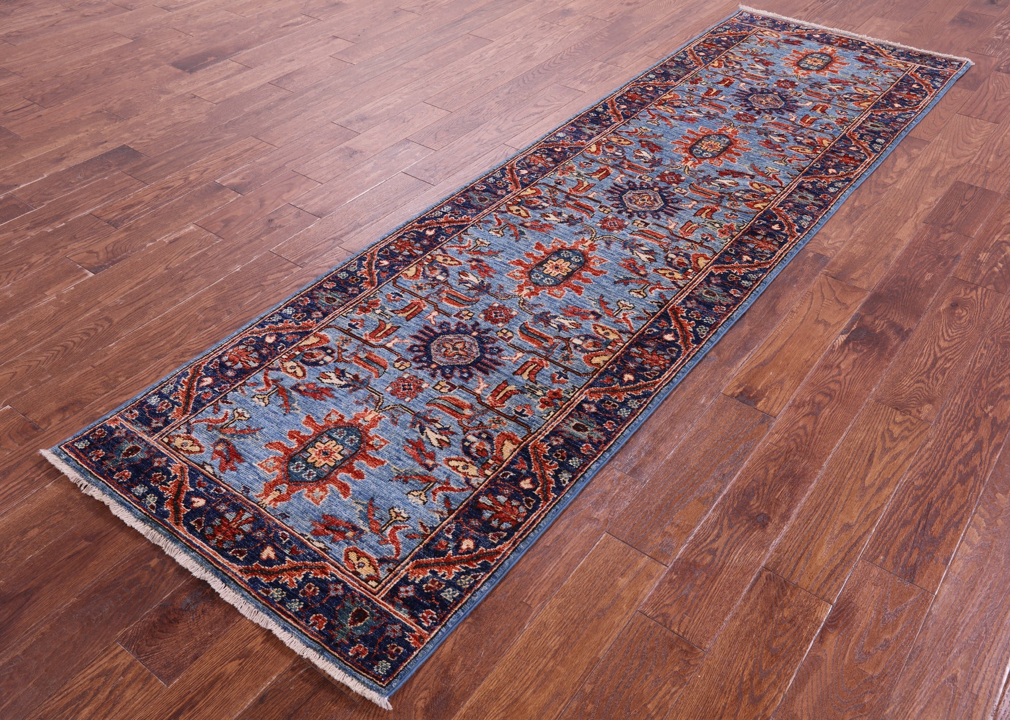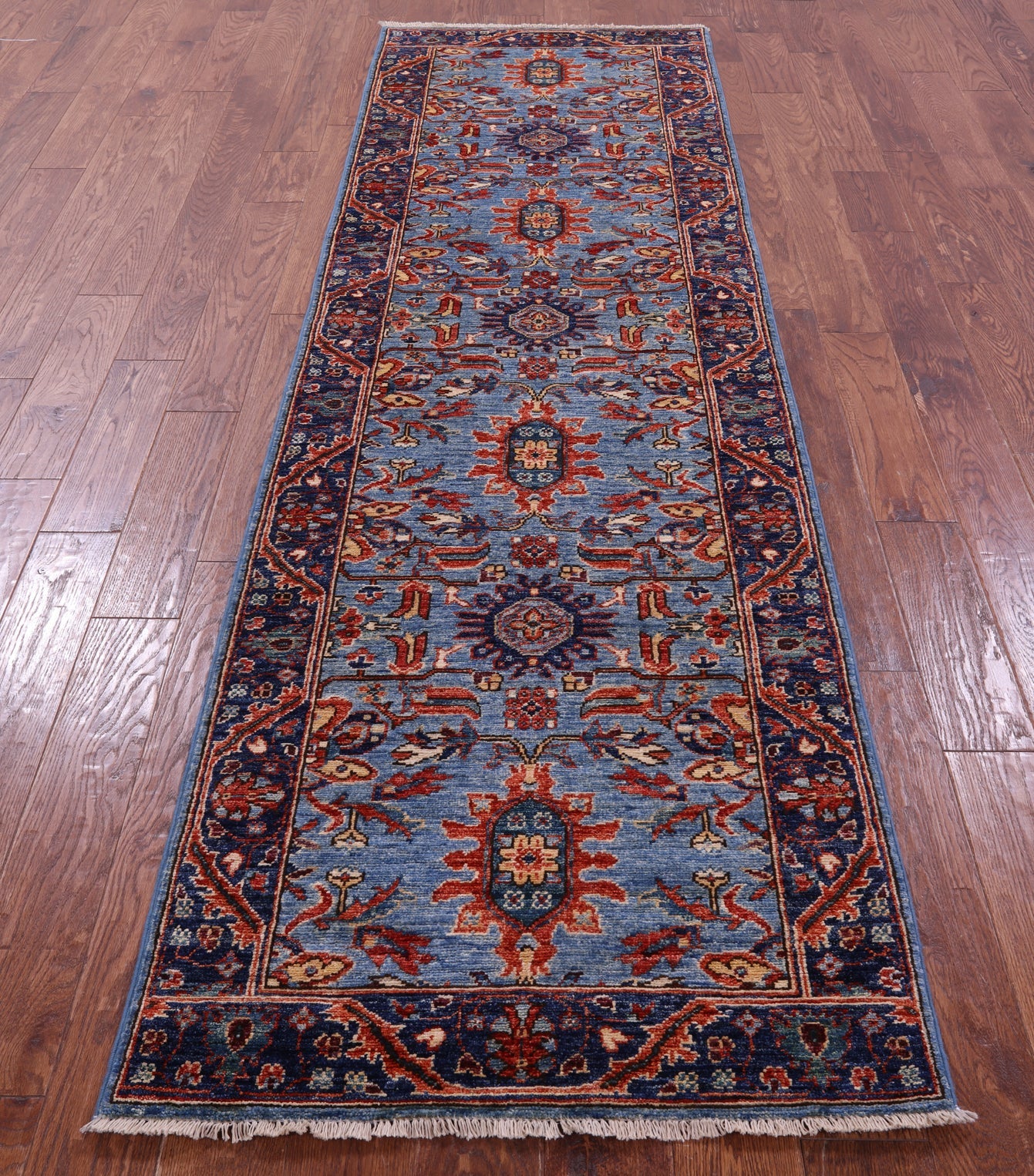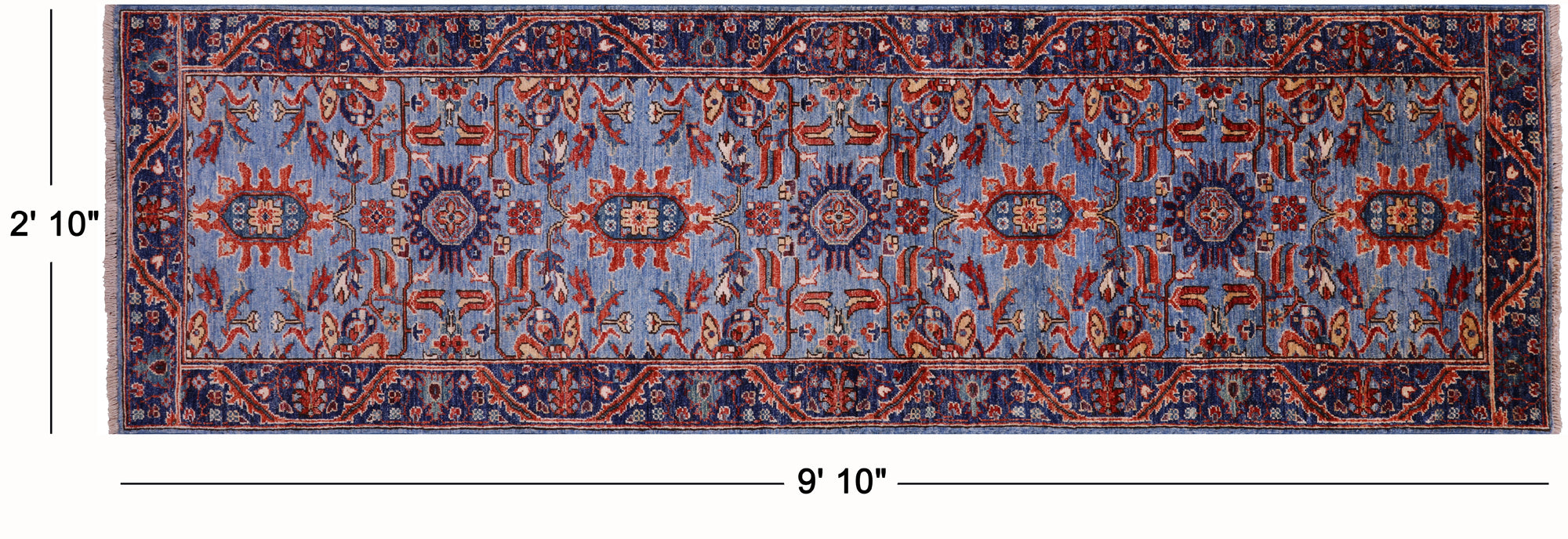 Blue 2' 10" X 9' 10" Persian Heriz Serapi Handmade Runner Rug - Q22848
