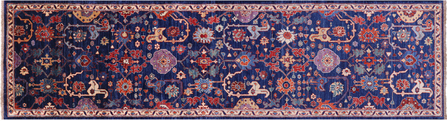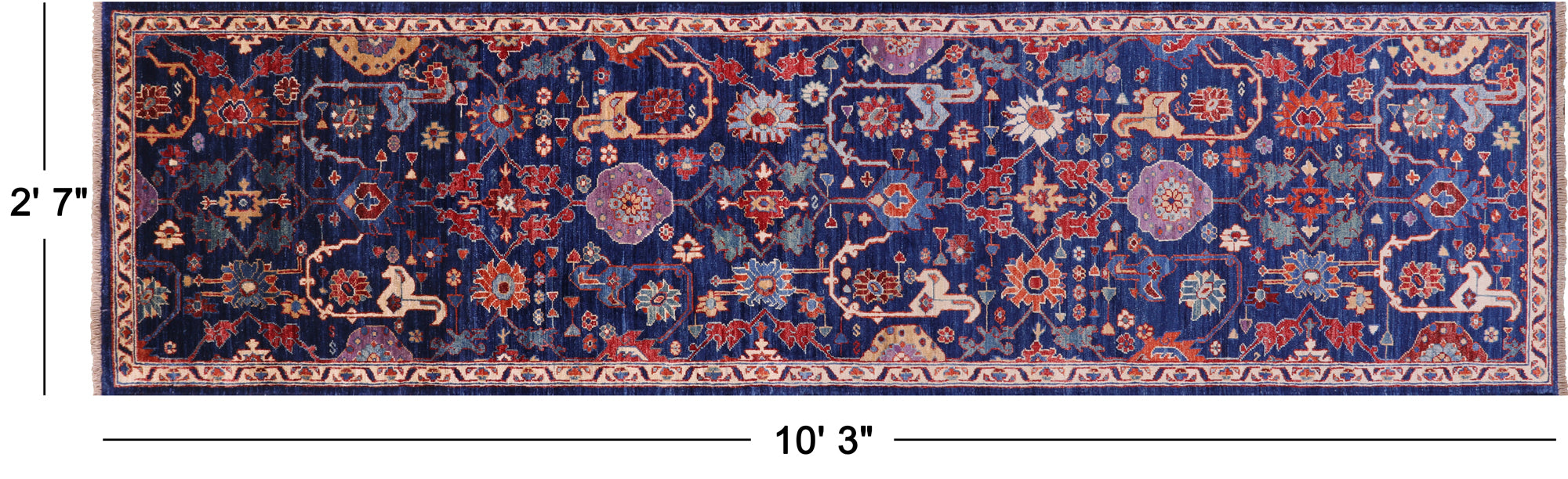 Blue 2' 7" X 10' 3" Persian Heriz Serapi Handmade Runner Rug - Q22869