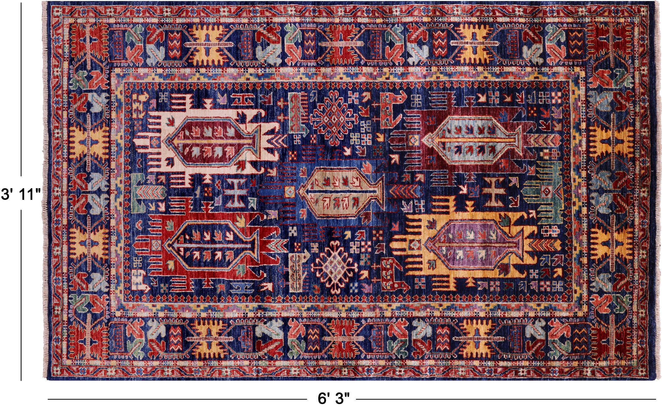 Blue Tribal Fine Serapi Handmade Wool Rug 3' 11" X 6' 3" - Q16608