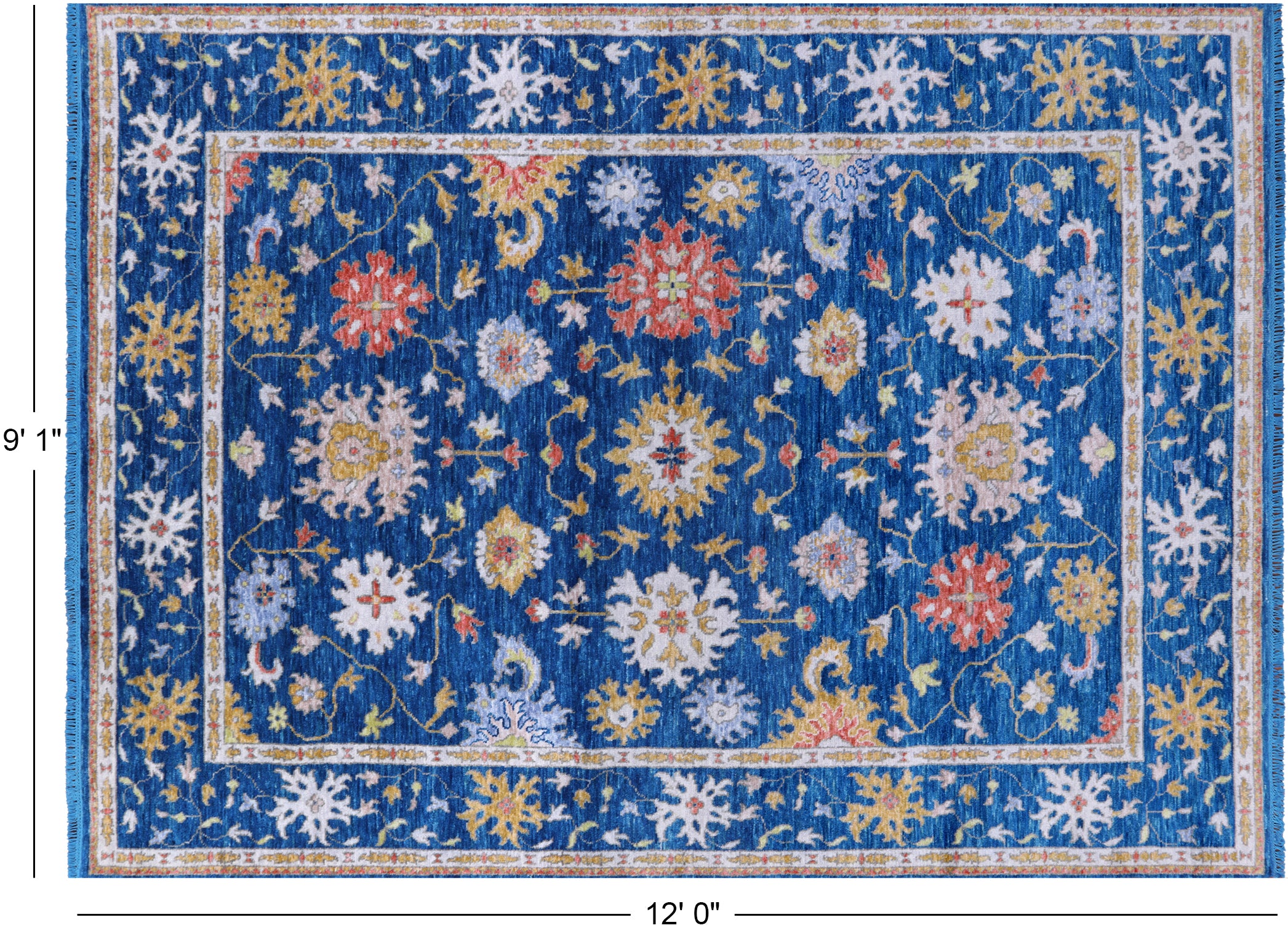 Blue 9' 1" X 12' 0" Turkish Angora Oushak Hand Knotted Rug - Q9168