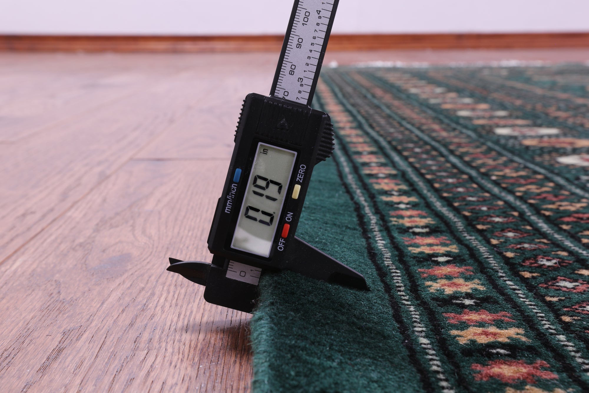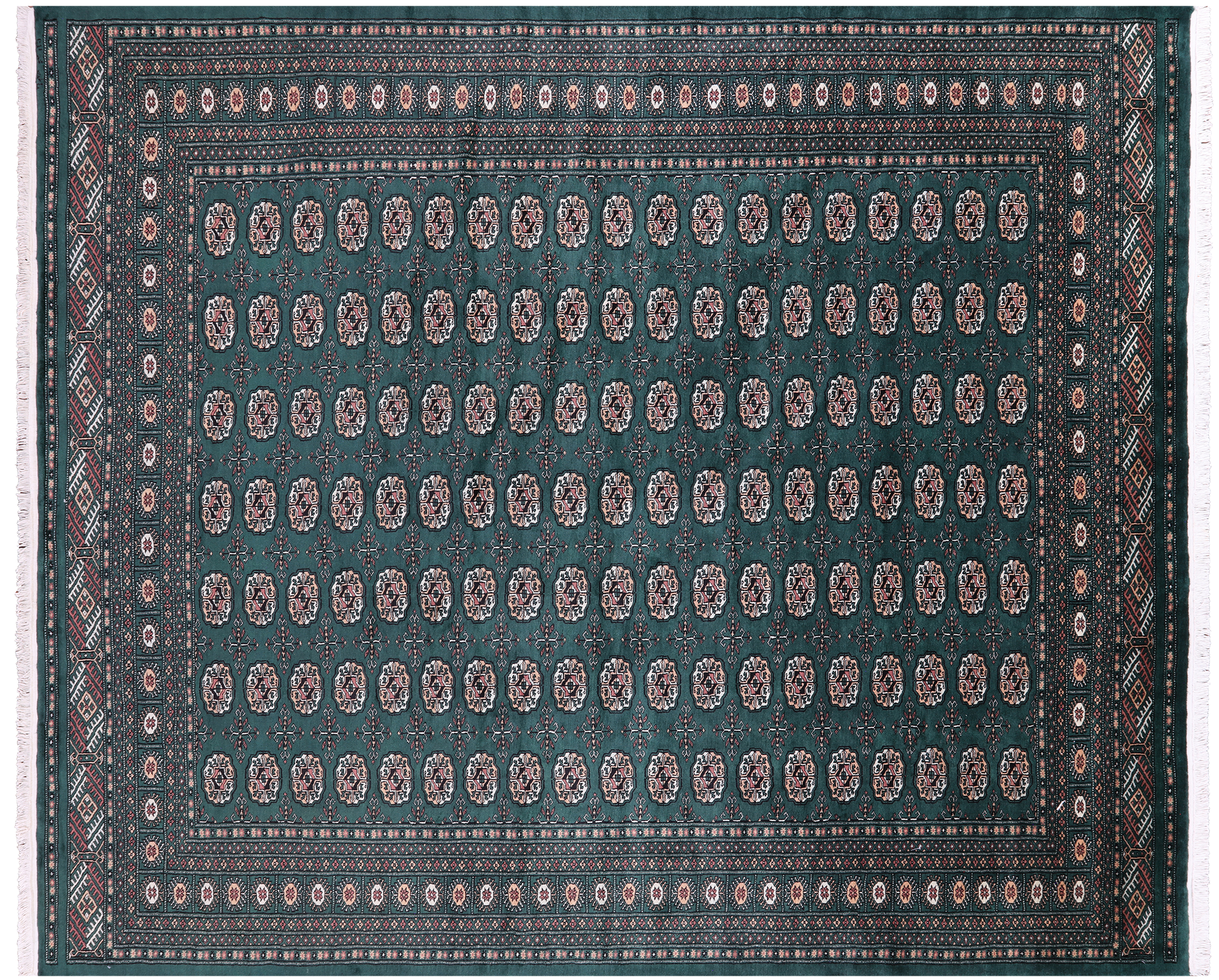 Green 8' 6" X 10' 0" Signed Silky Bokhara Hand Knotted Wool Rug - Q23531 is backordered and will ship as soon as it is back in stock.