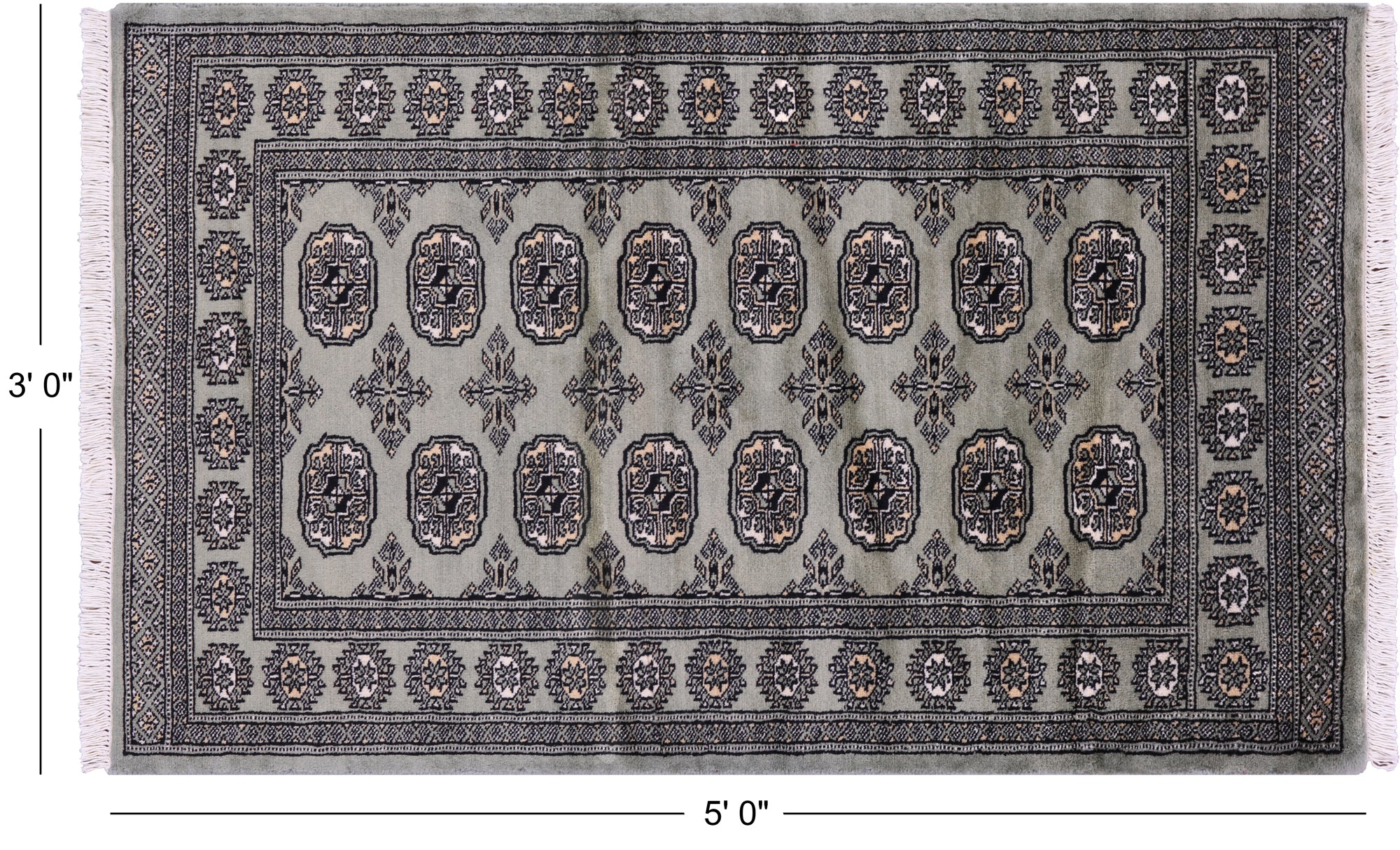 Green Silky Bokhara Handmade Wool Rug 3' 0" X 5' 0" - Q23810