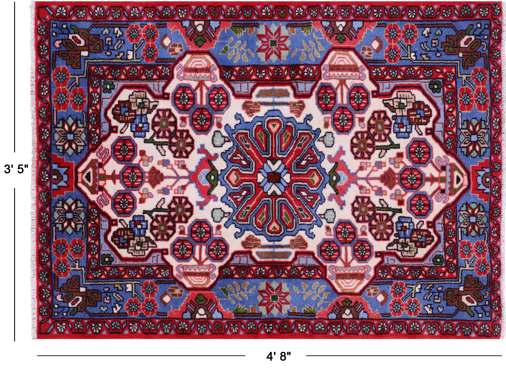 Ivory New Persian Nahavand Hand Knotted Wool Rug 3' 5" X 4' 8" - S2808