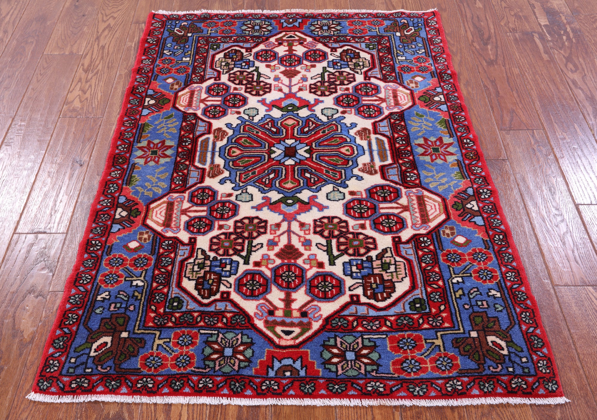Nahavand rugs comes from the city of Nahavand in Persia. These rugs have a tribal style look, often using floral medallions and a variety of vegetable dyed colors such as reds, blues, greens and different shades of ivory. Nahavand rugs are made with very high quality wool, which gives it a shine. They are very durable rugs that will last a lifetime.