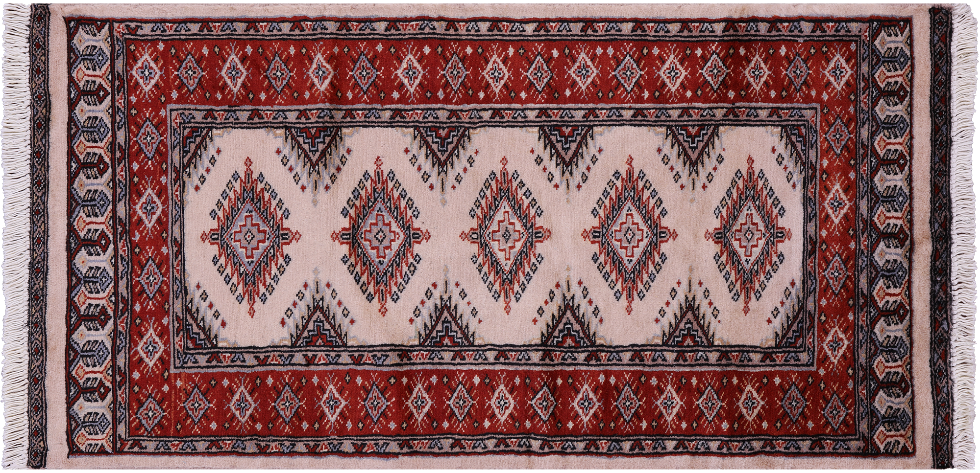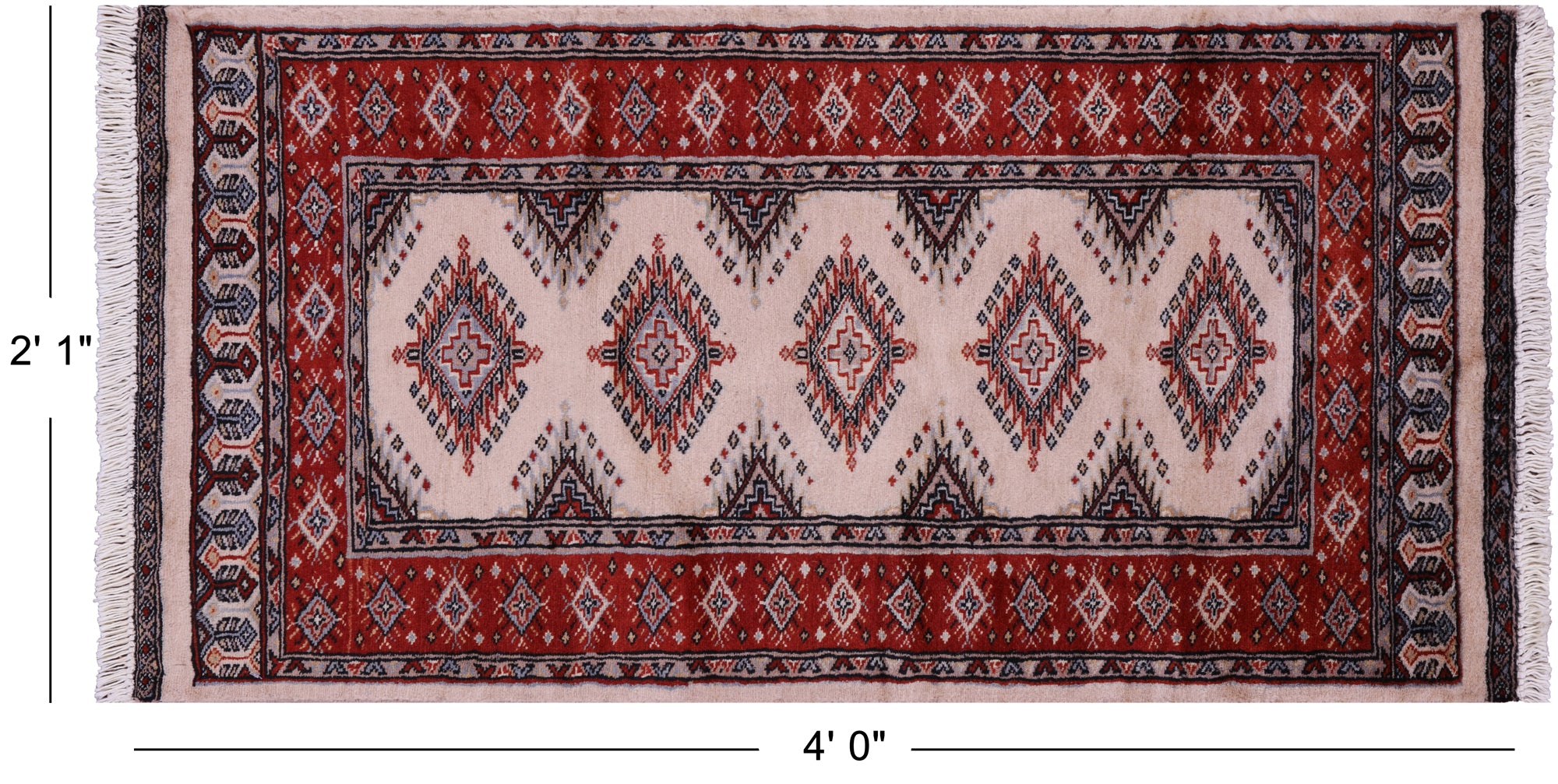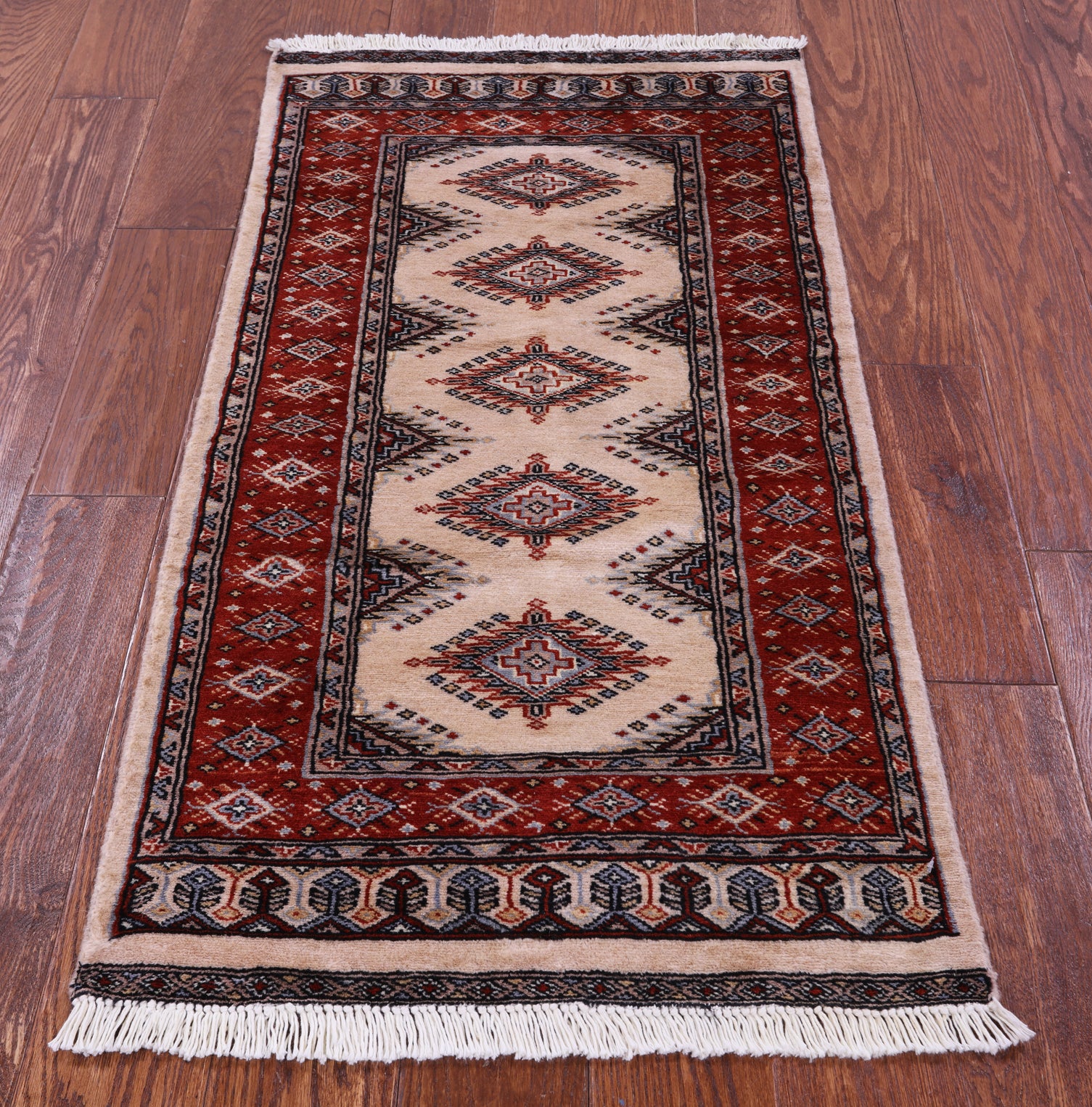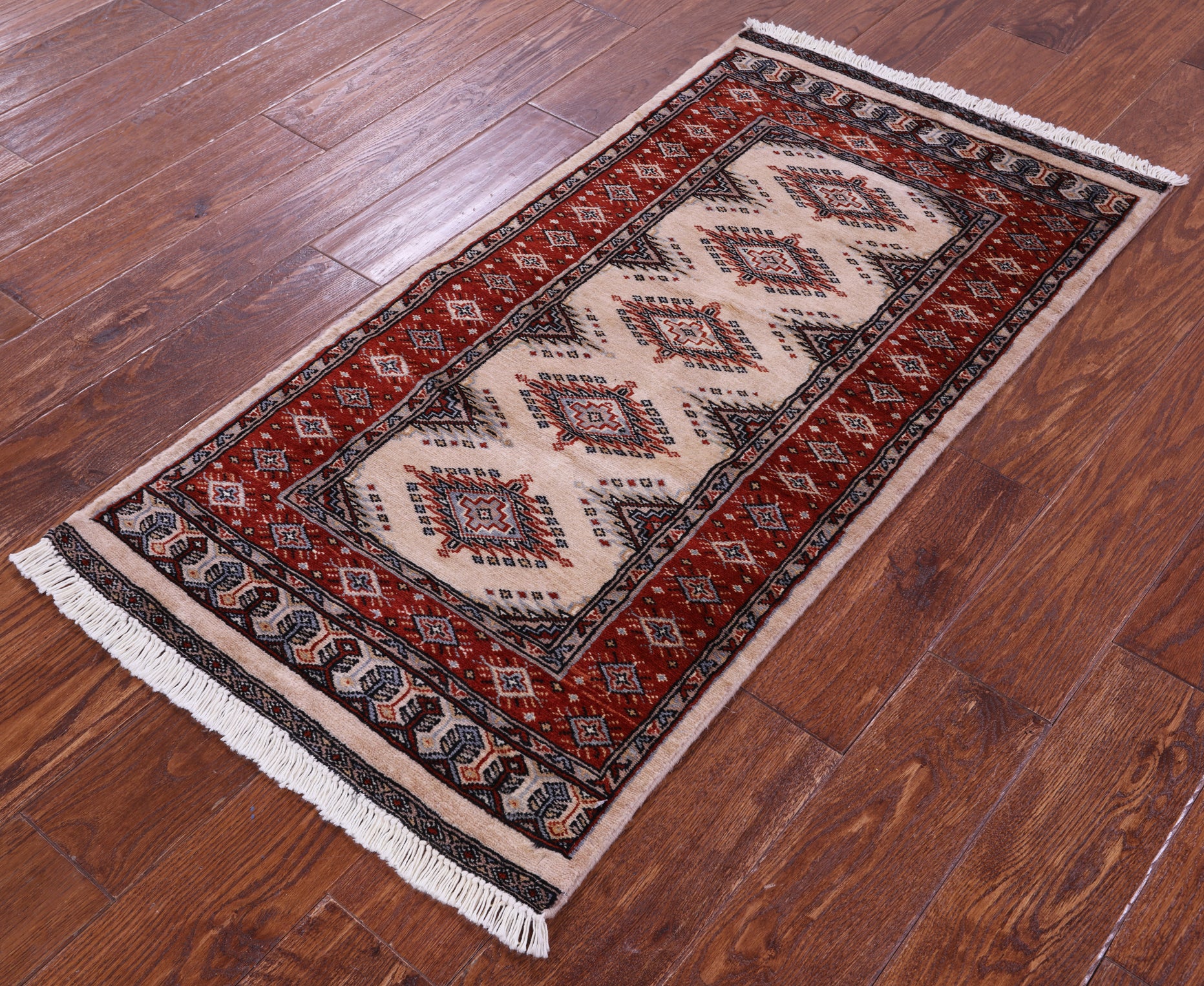 Ivory 2' 1" X 4' 0" Silky Bokhara Handmade Wool Rug - Q23870