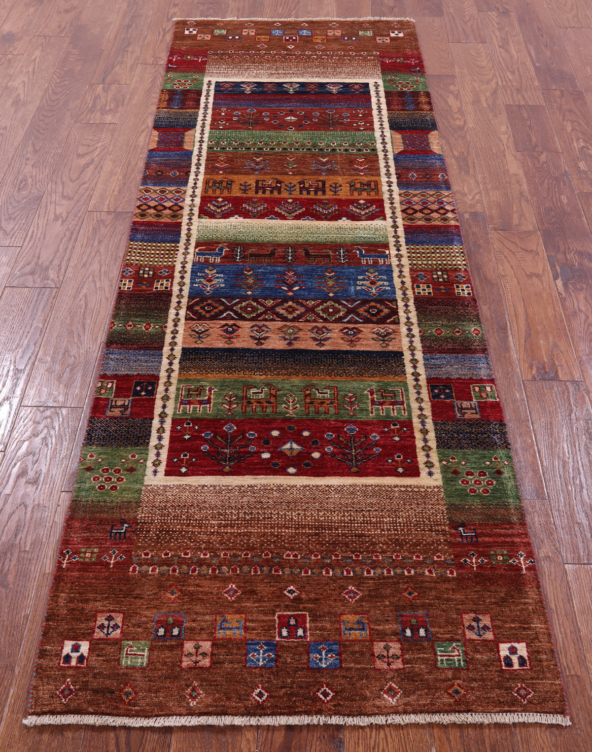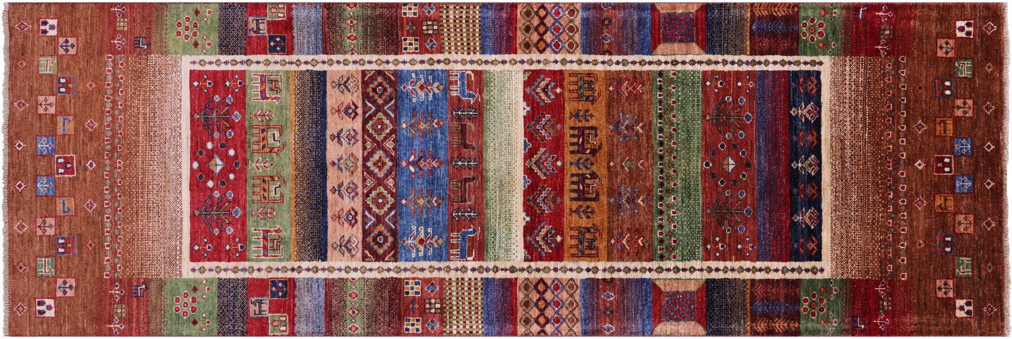 Tribal Persian Gabbeh Hand Knotted Wool Runner Rug 2' 8" X 8' 2" - Q20741