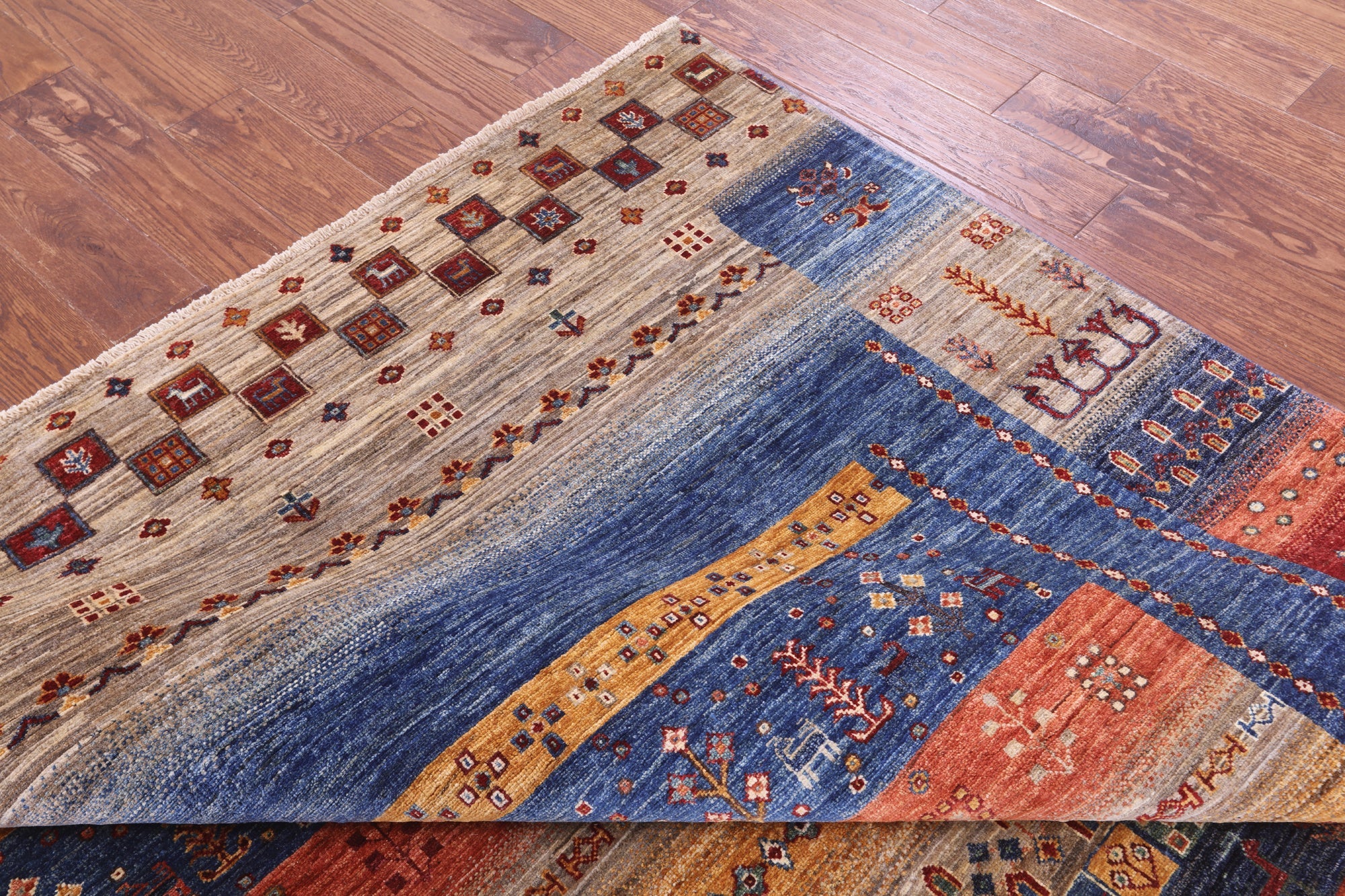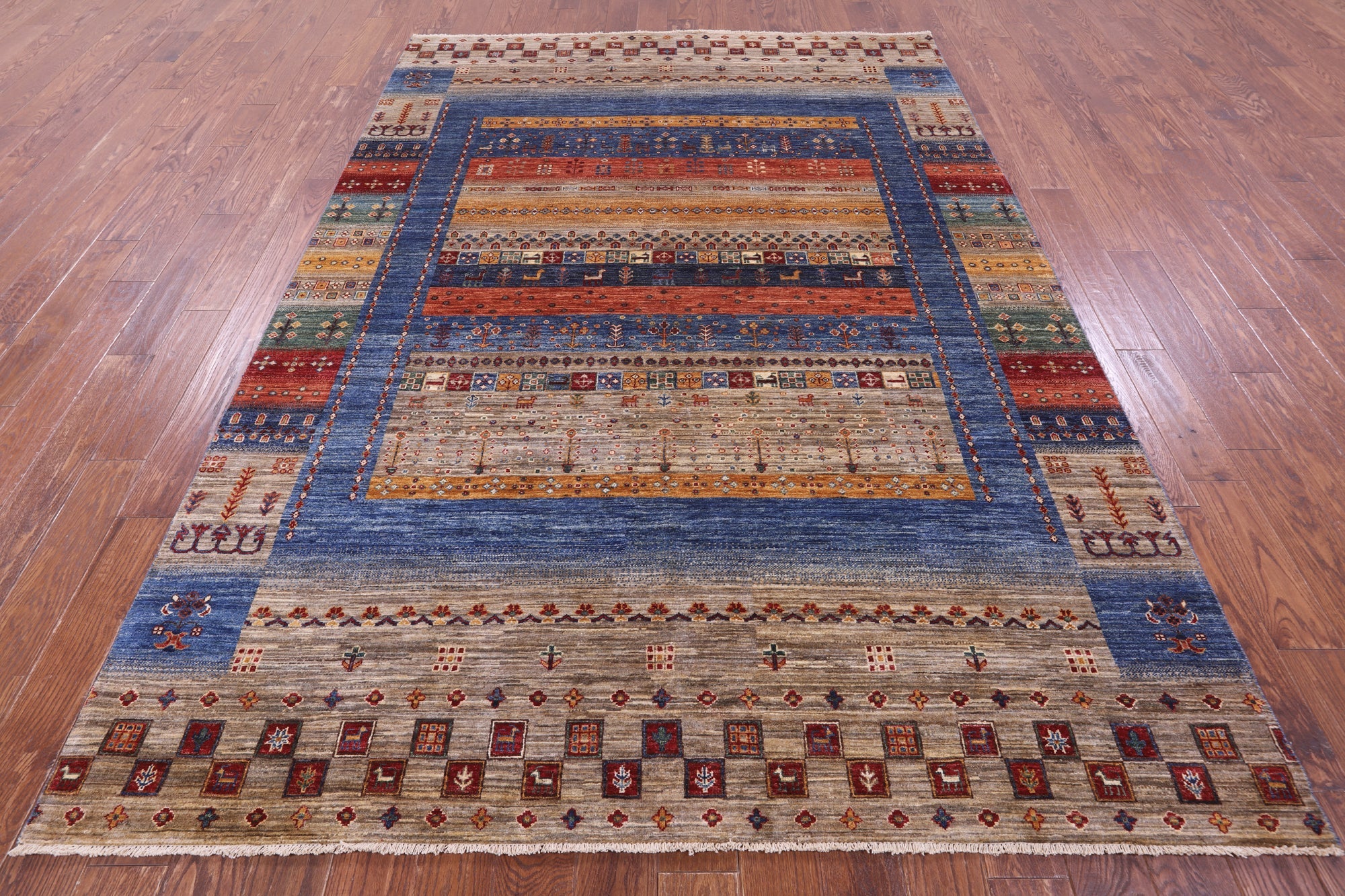 Gabbeh rugs are nothing short of simplistic and tribal, with designs consisting of primarily geometric shapes, animals, and plants. All done in a simplified way and based on the nomadic observation. Commonly brightly colored, these rugs are fun and beautiful and will add a warm touch to any home.