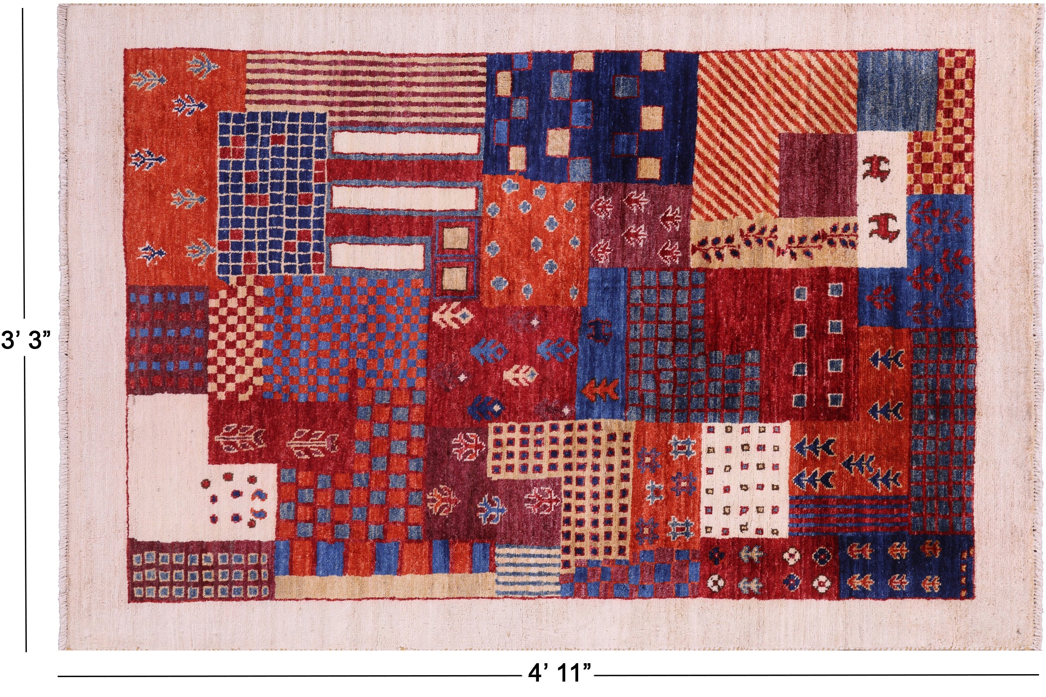 Tribal Persian Gabbeh Handmade Rug 3' 3" X 4' 11" - Q21054