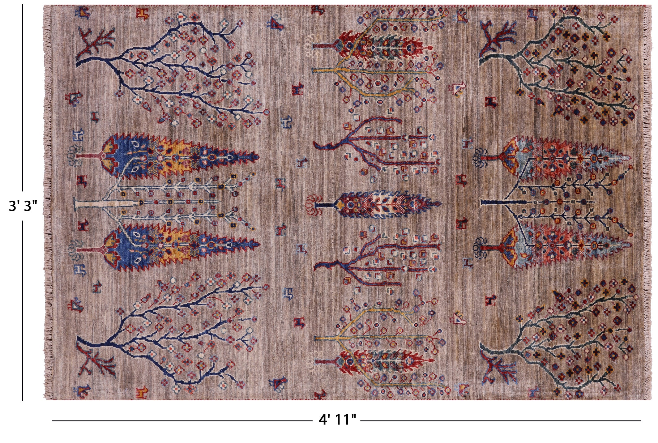 3' 3" X 4' 11" Tribal Persian Gabbeh Handmade Wool Rug - Q20451