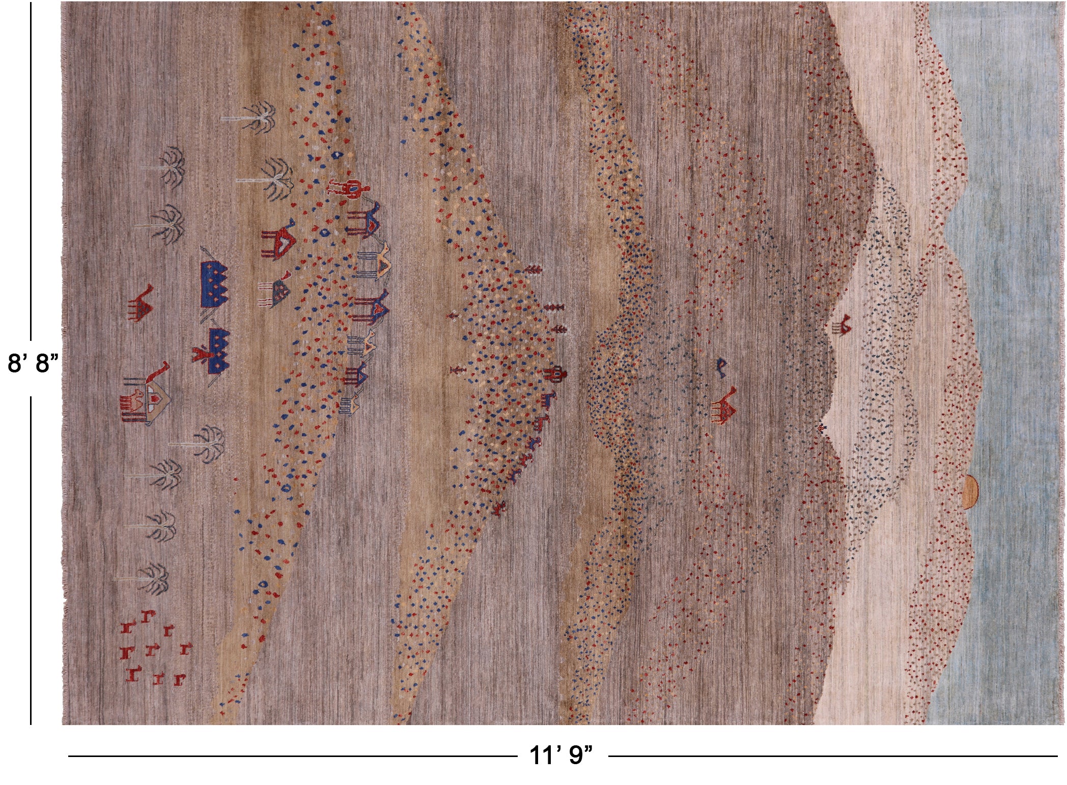 Tribal Persian Gabbeh Handmade Wool Rug 8' 8" X 11' 9" - Q20466