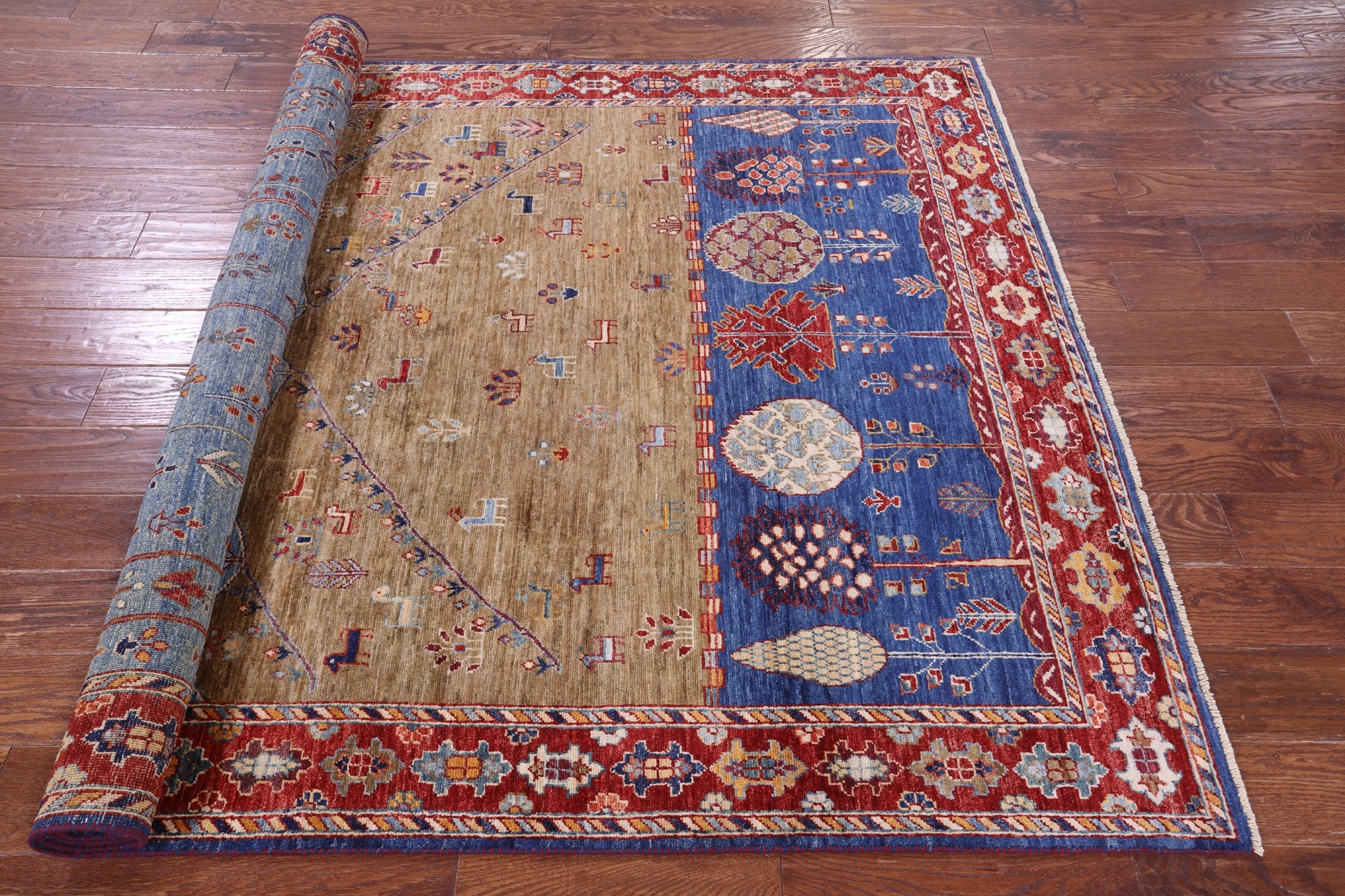 Gabbeh rugs are nothing short of simplistic and tribal, with designs consisting of primarily geometric shapes, animals, and plants. All done in a simplified way and based on the nomadic observation. Commonly brightly colored, these rugs are fun and beautiful and will add a warm touch to any home.