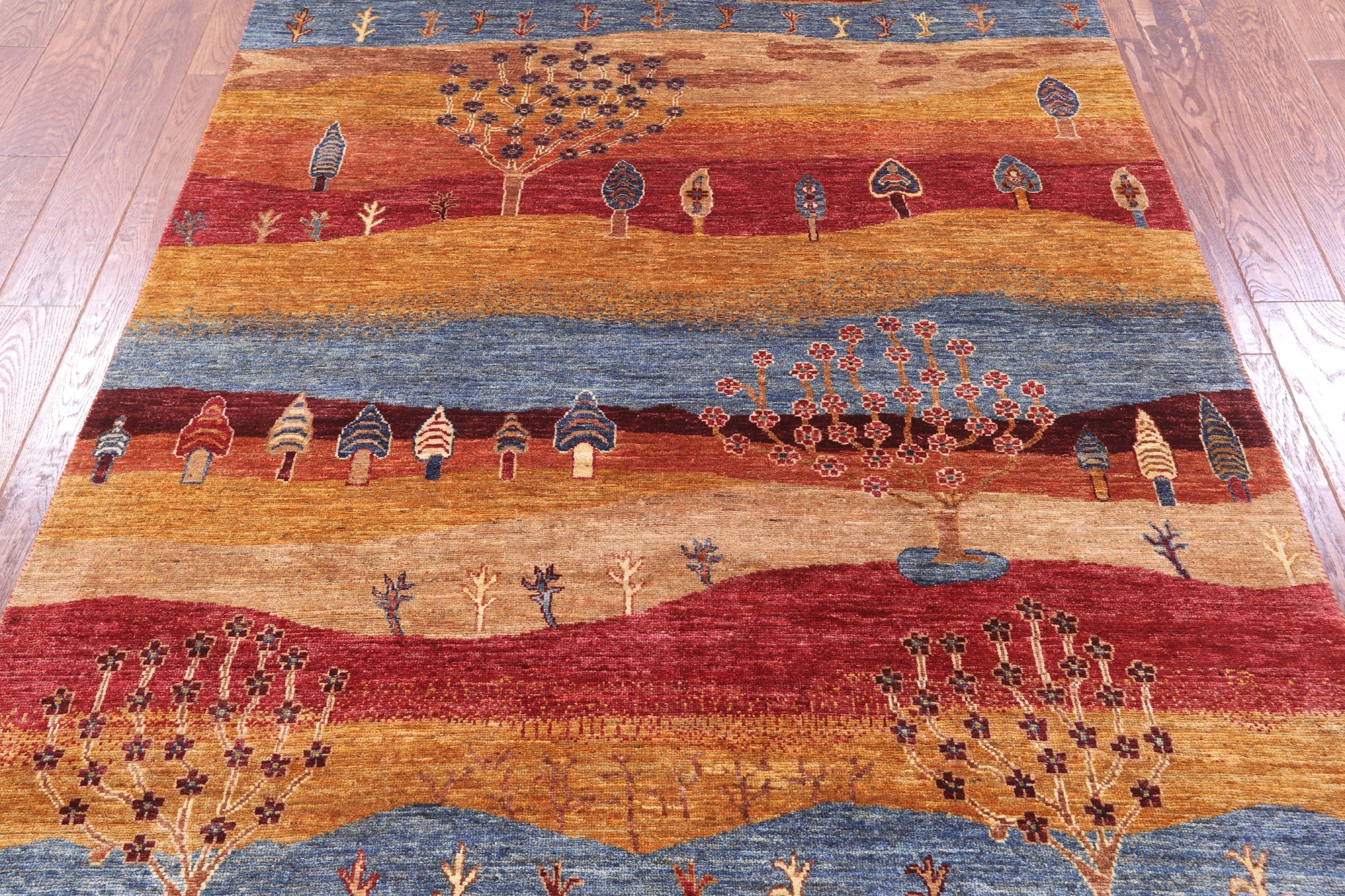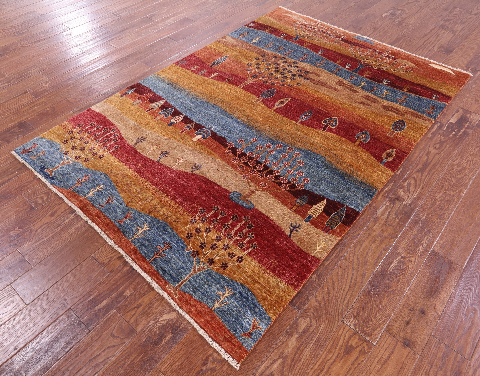 Gabbeh rugs are nothing short of simplistic and tribal, with designs consisting of primarily geometric shapes, animals, and plants. All done in a simplified way and based on the nomadic observation. Commonly brightly colored, these rugs are fun and beautiful and will add a warm touch to any home.