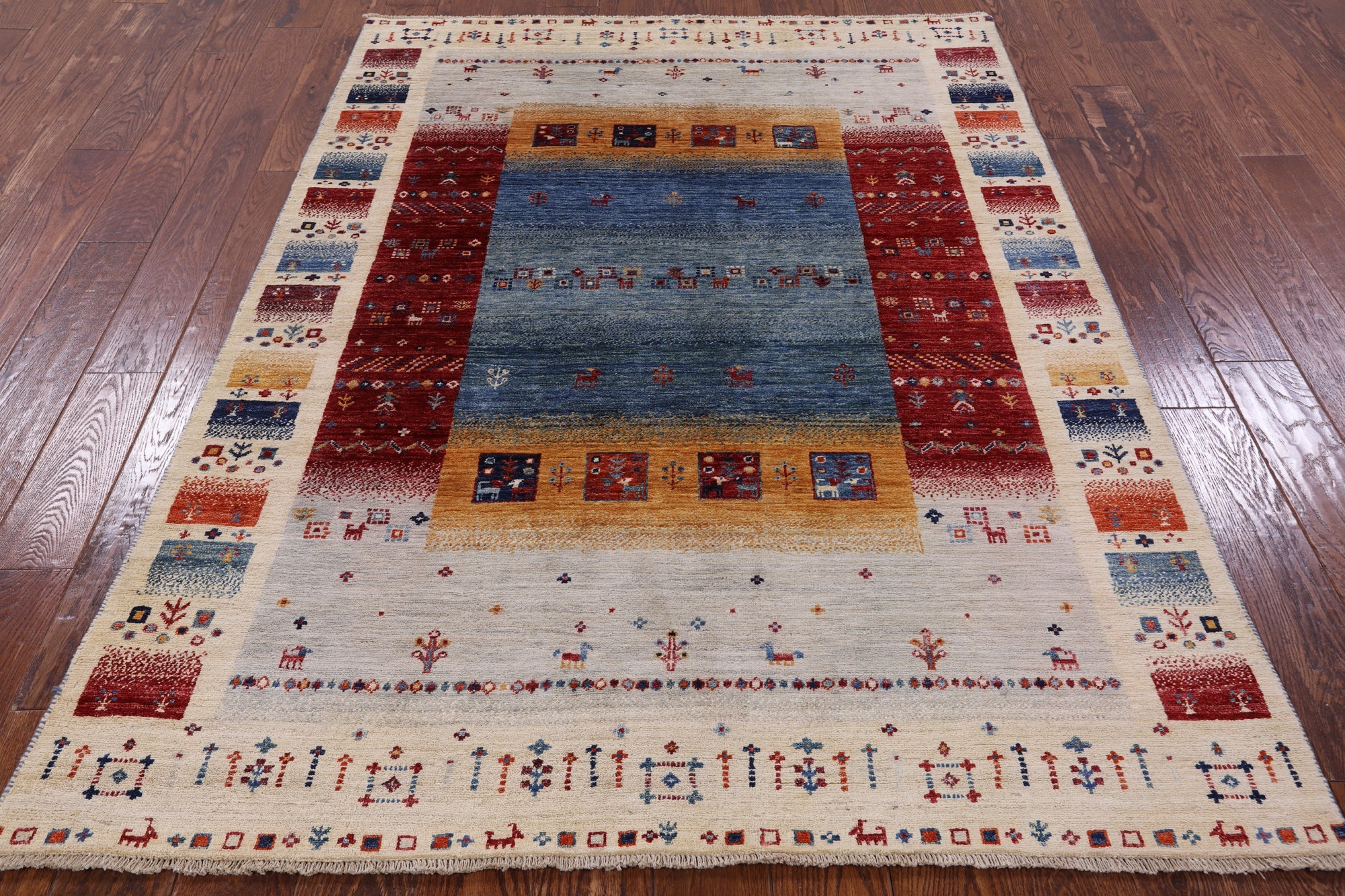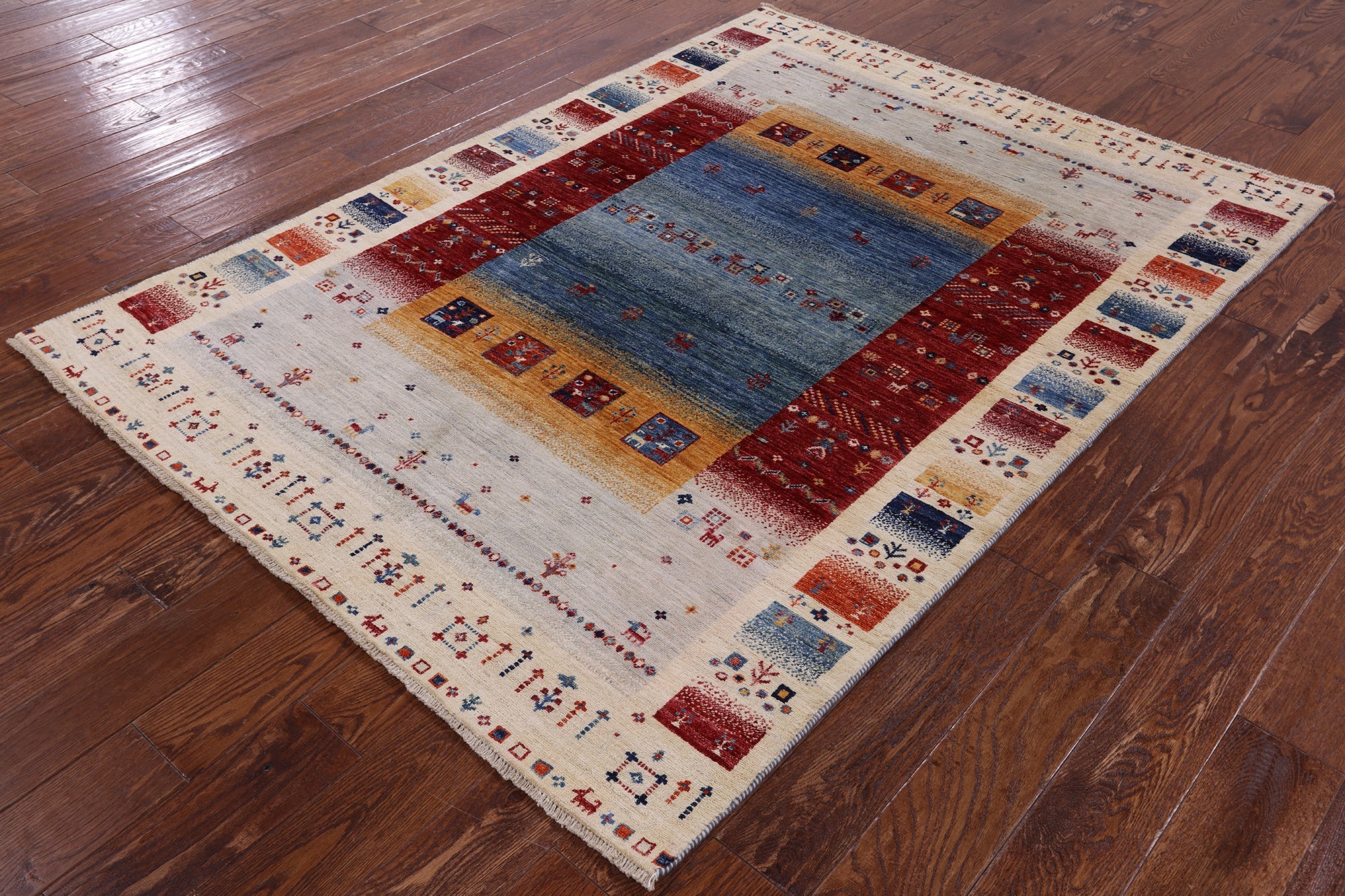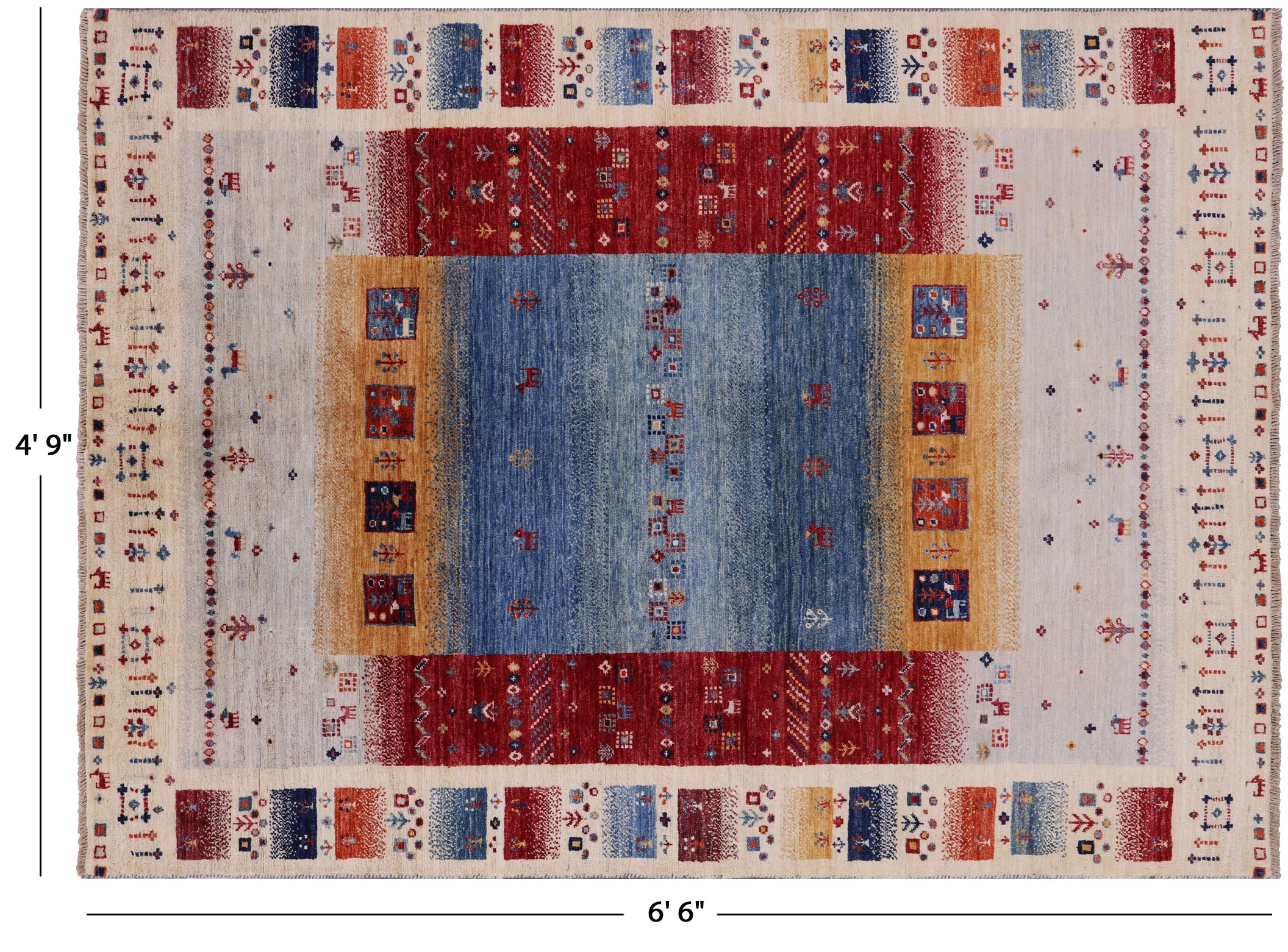 Tribal Persian Gabbeh Handmade Wool Rug 4' 9" X 6' 6" - Q8079