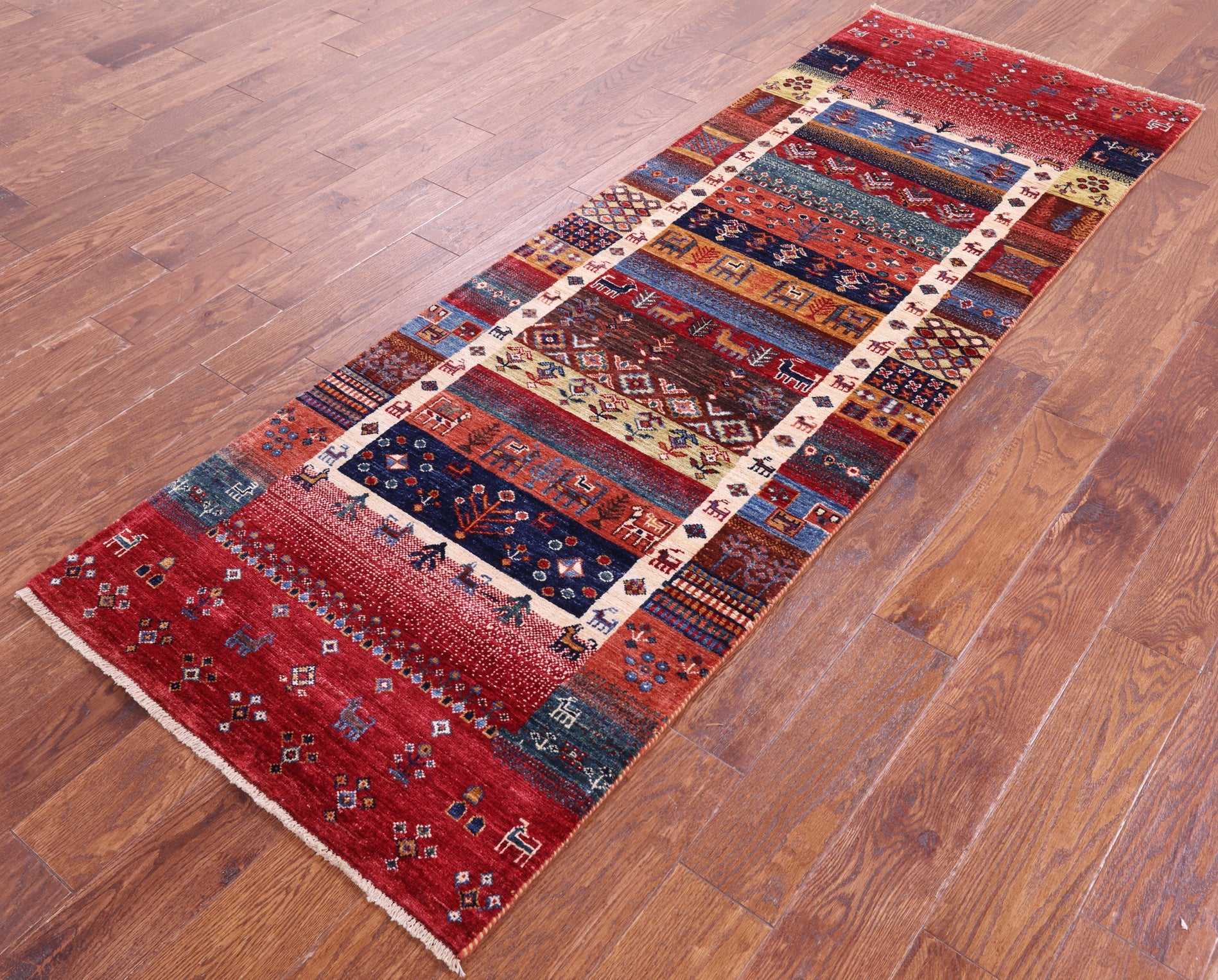 Tribal Persian Gabbeh Handmade Wool Runner Rug 2' 9" X 7' 10" - Q16766