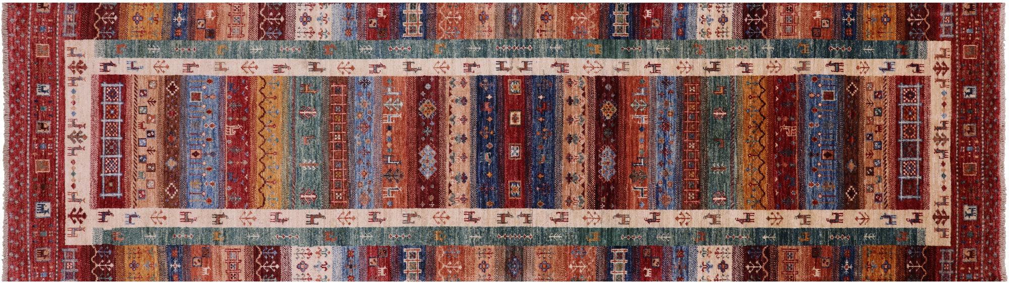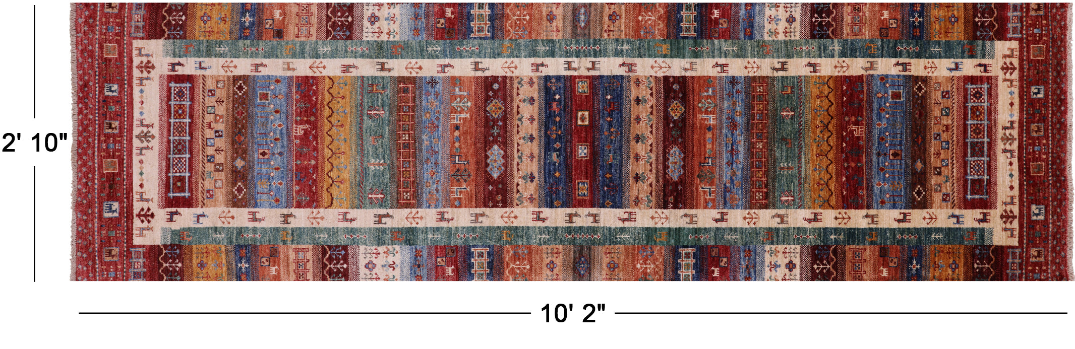 Tribal Persian Gabbeh Handmade Wool Runner Rug 2' 10" X 10' 2" - Q16772