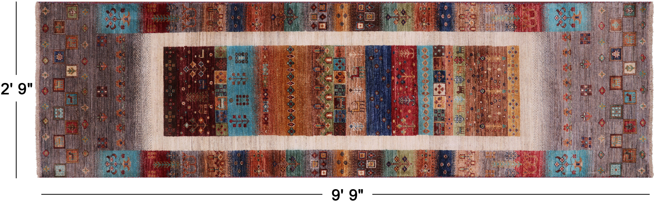 Tribal Persian Gabbeh Handmade Wool Runner Rug 2' 9" X 9' 9" - Q16852