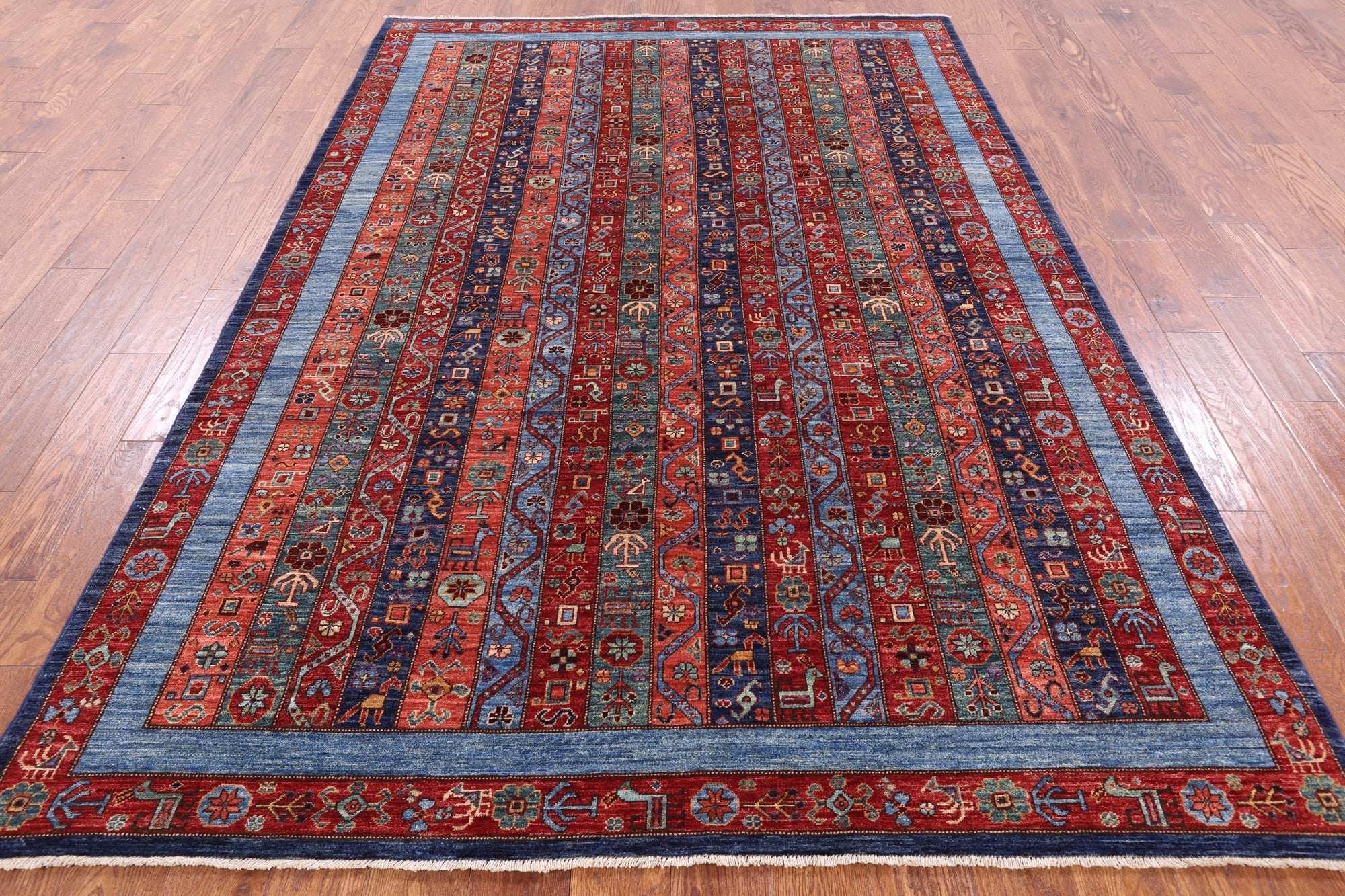 6' 2" X 8' 9" Tribal Persian Gabbeh Shall Handmade Rug - Q3575 is backordered and will ship as soon as it is back in stock.