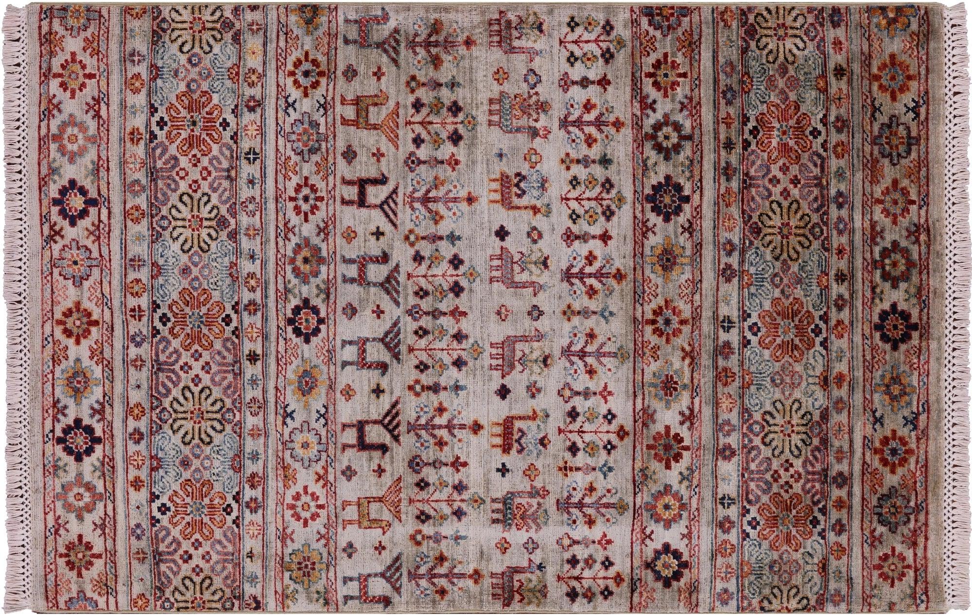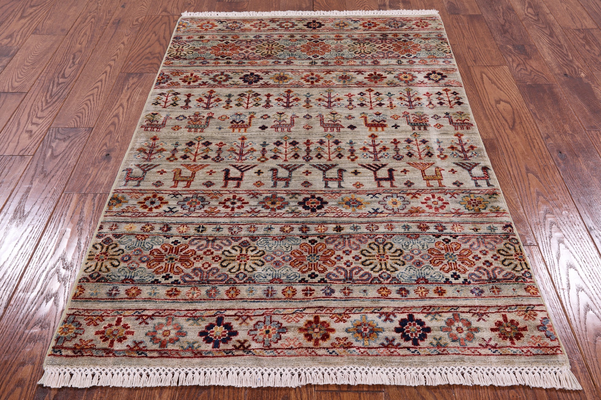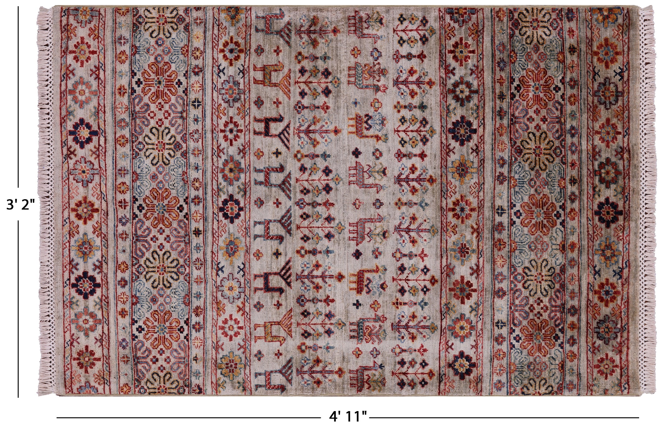 Tribal Persian Gabbeh Wool Area Rug 3' 2" X 4' 11" - Q3040