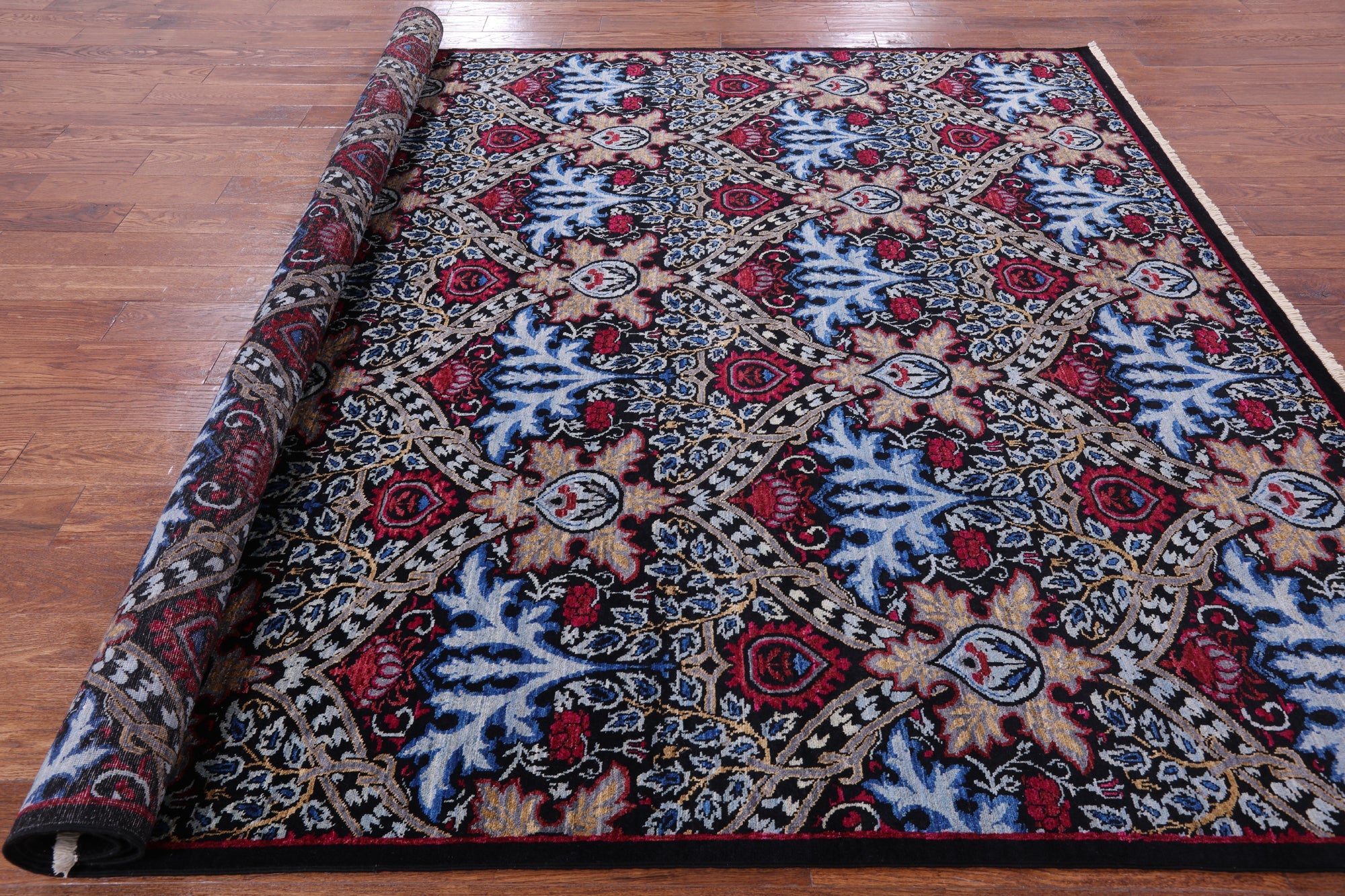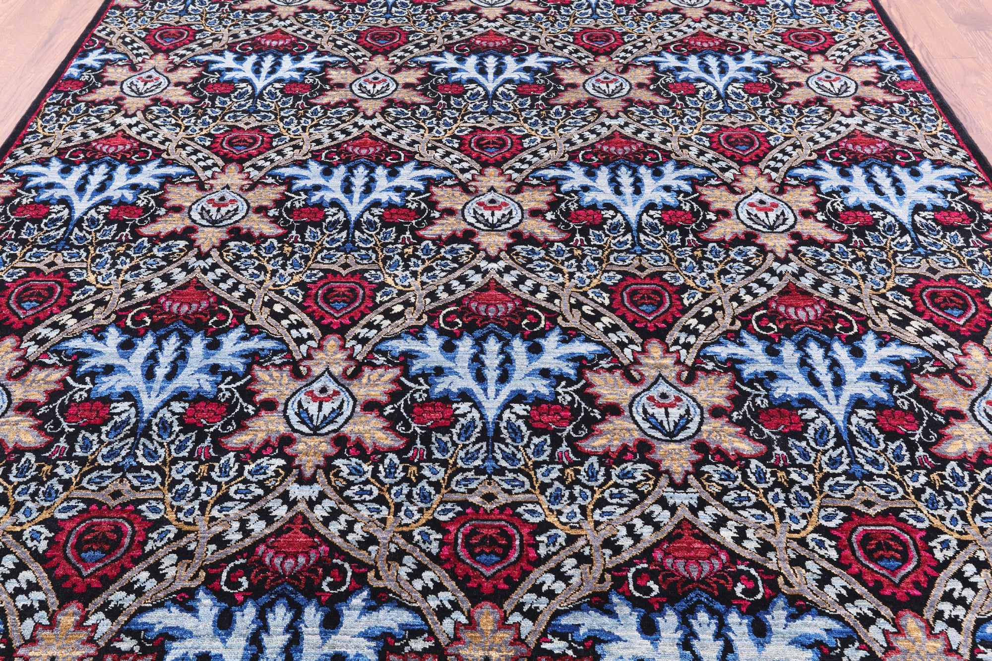 William Morris design are part of arts and crafts movement often including natural forms. These 19th and early 20th century designs are distinctive for their stylized natural forms, their symmetry and their vibrant colors. William Morris patterns are based on nature such thistles, ginkgo leaves, willow trees and flowers. These modern hand knotted rugs are woven with high quality wool, silk or both.