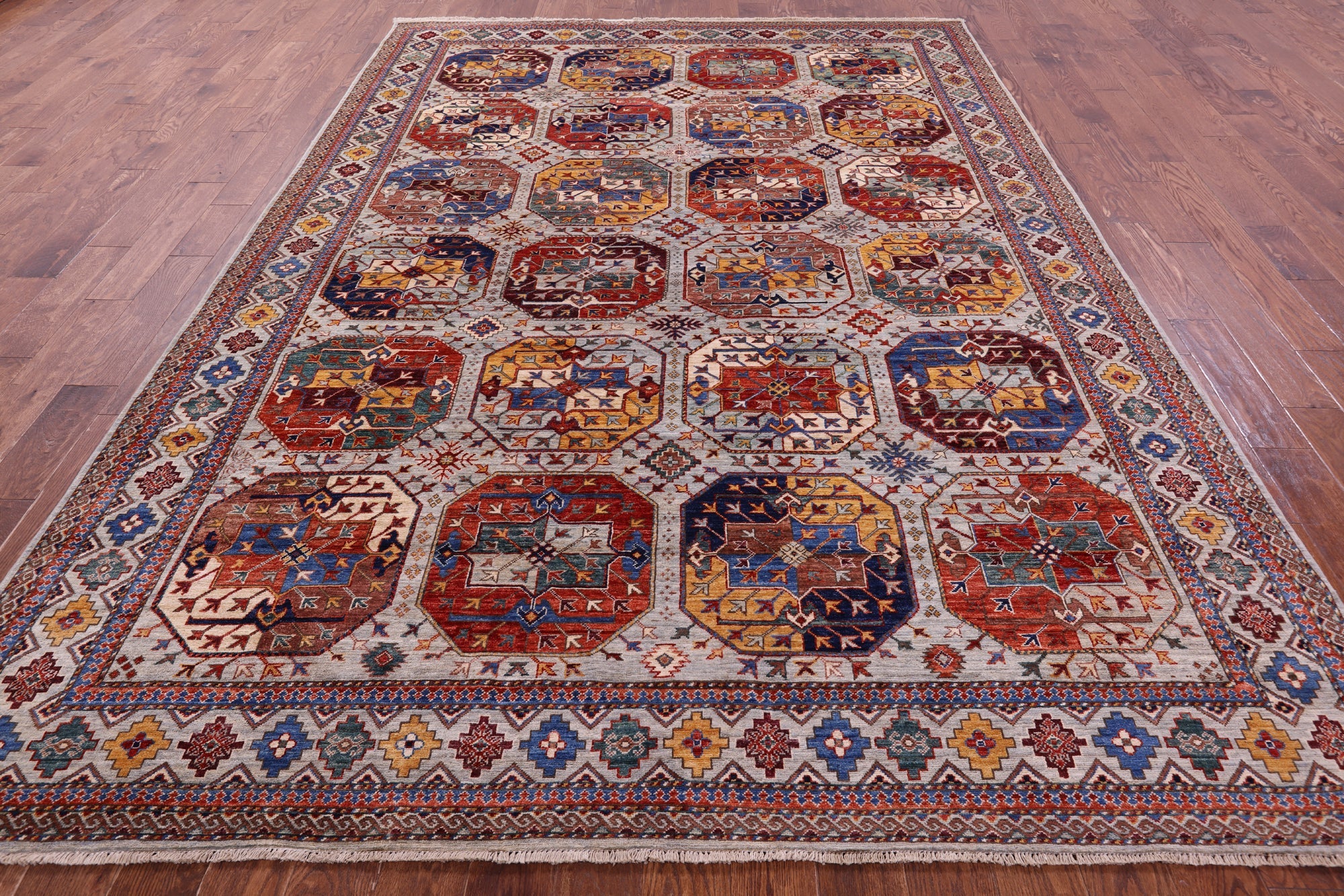 Turkmen rugs uses vegetable dyes or other natural dyes from the land, which comes from Turkmen a city of Persia. Their trademark design and most common is tribal patterns. Turkmen rugs are mostly made with cotton and wool pile.
