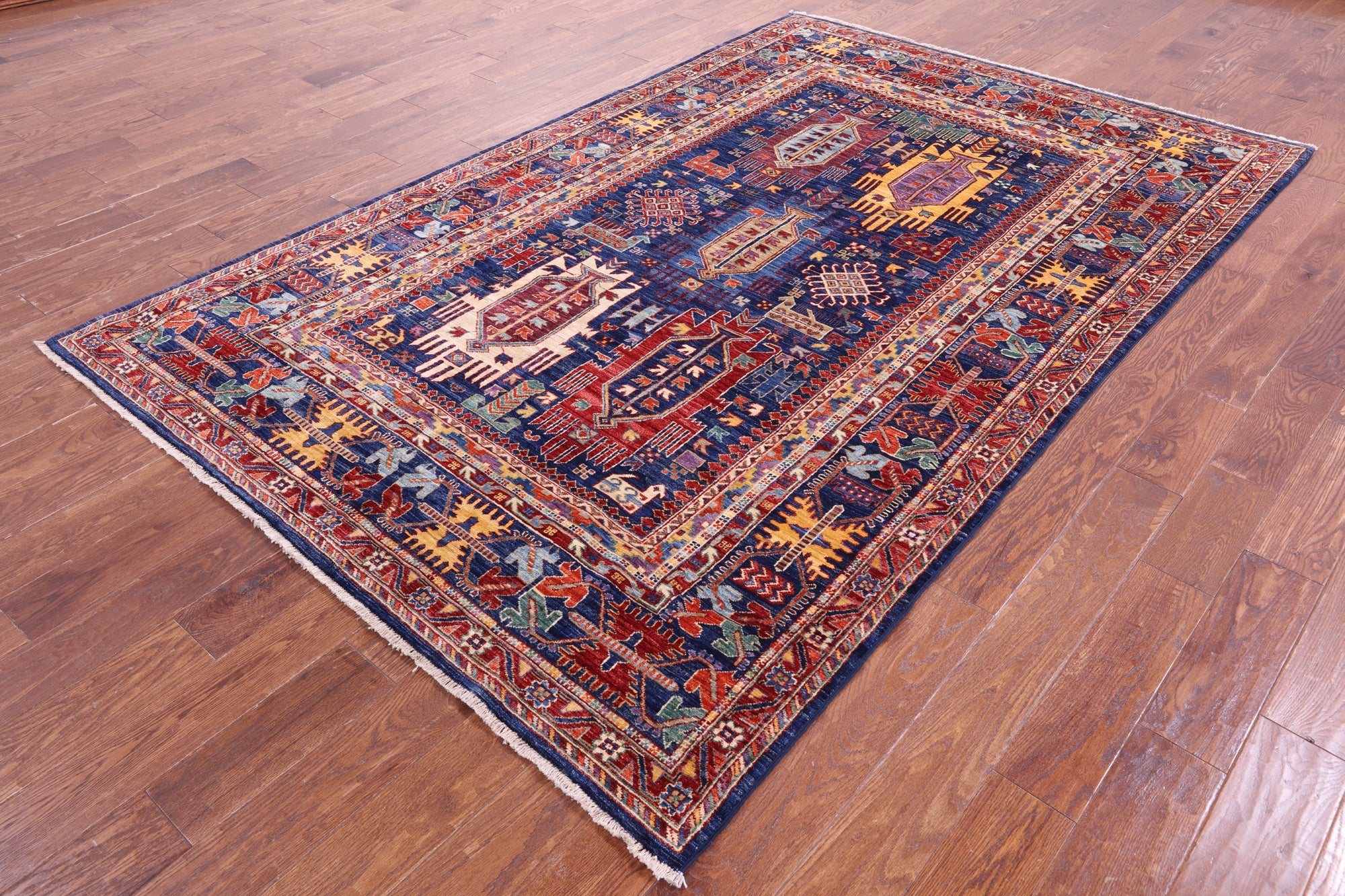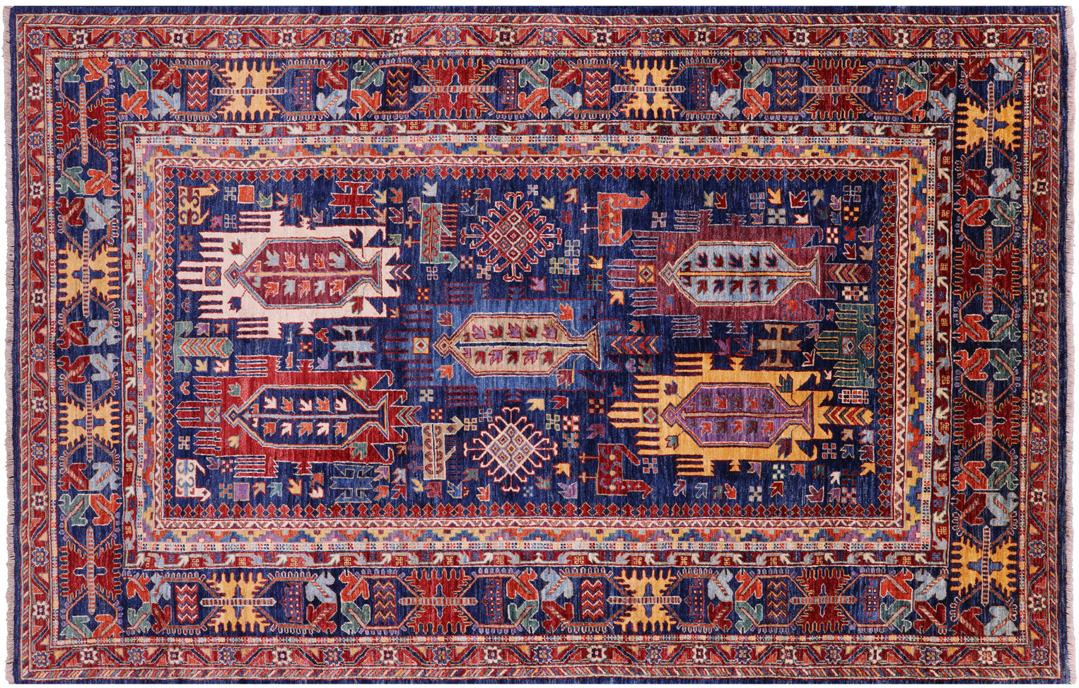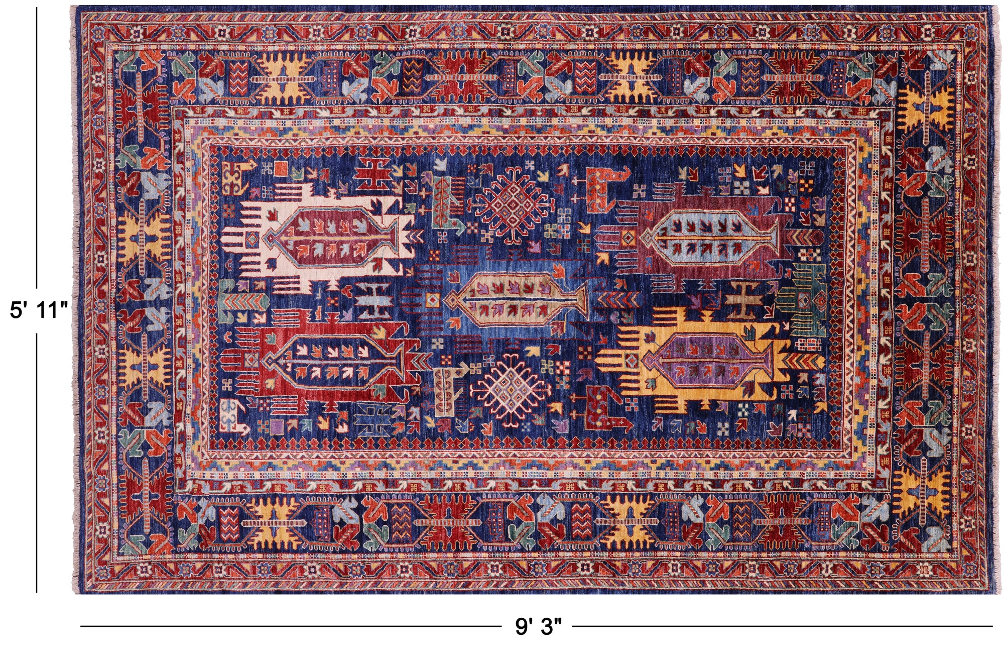 Blue 5' 11" X 9' 3" Tribal Fine Serapi Hand-Knotted Wool Rug - Q22906