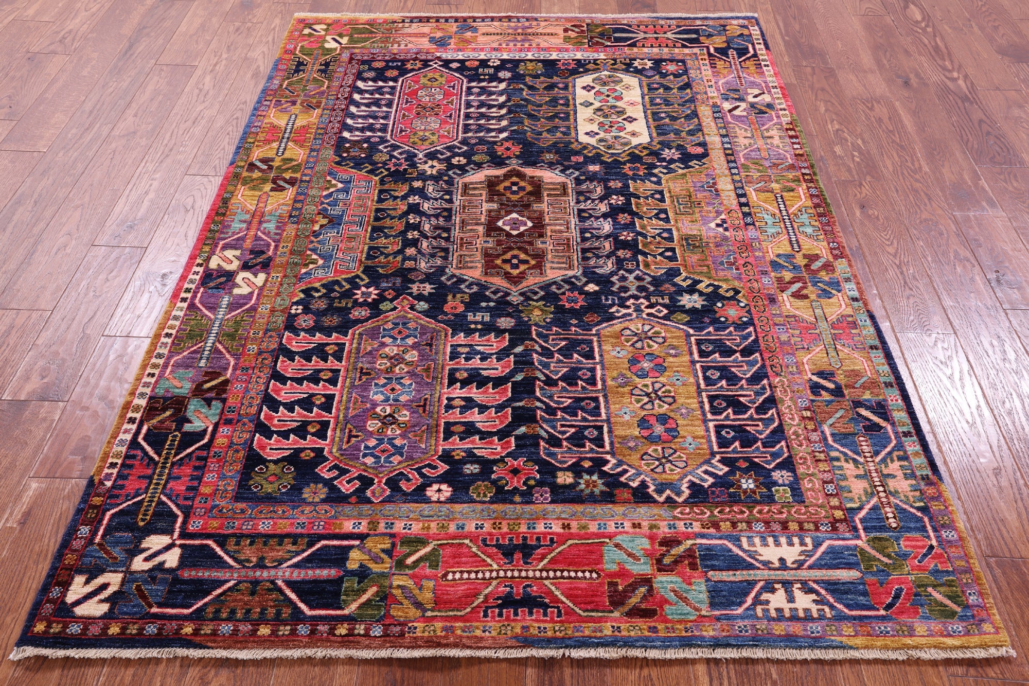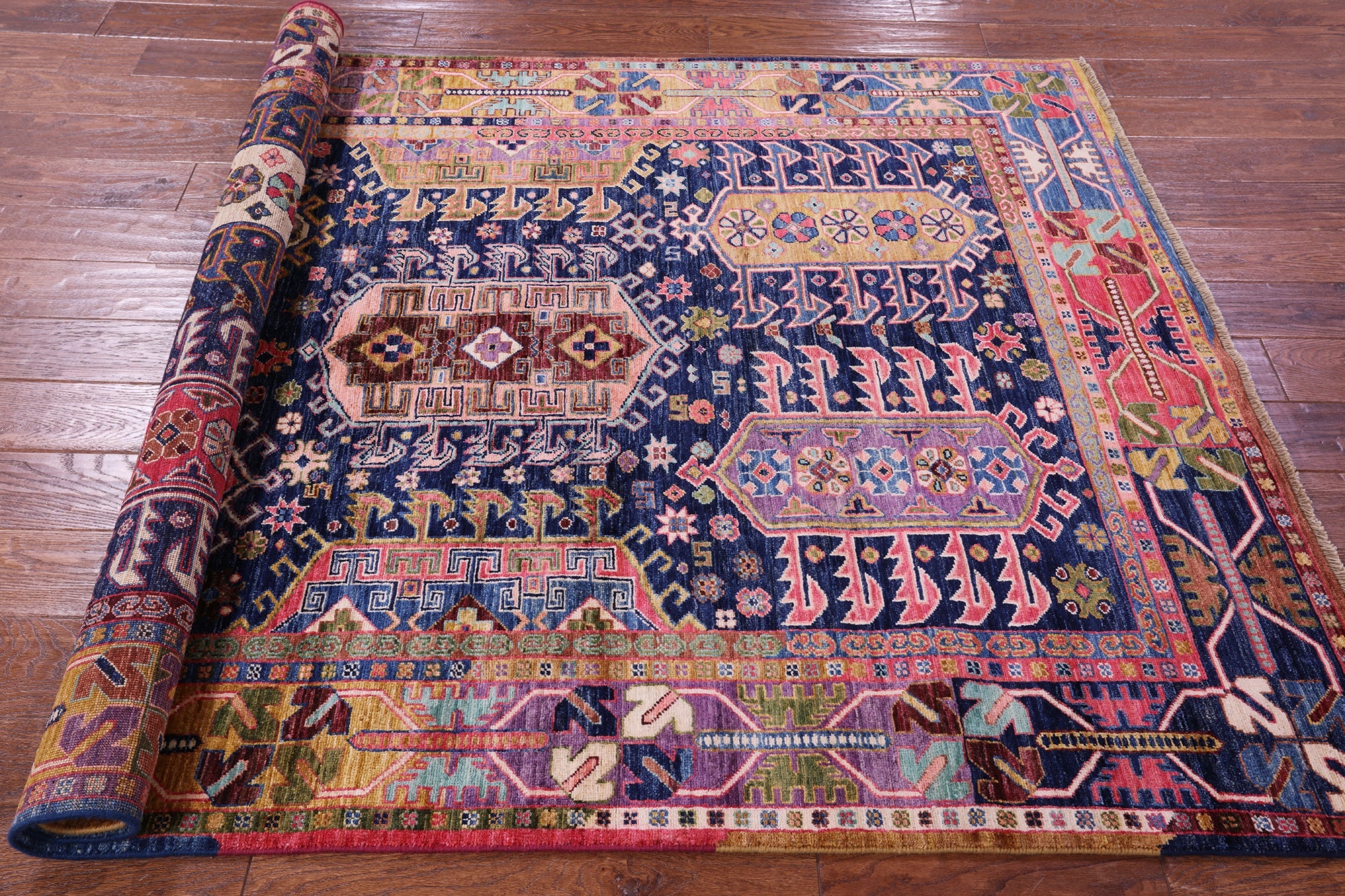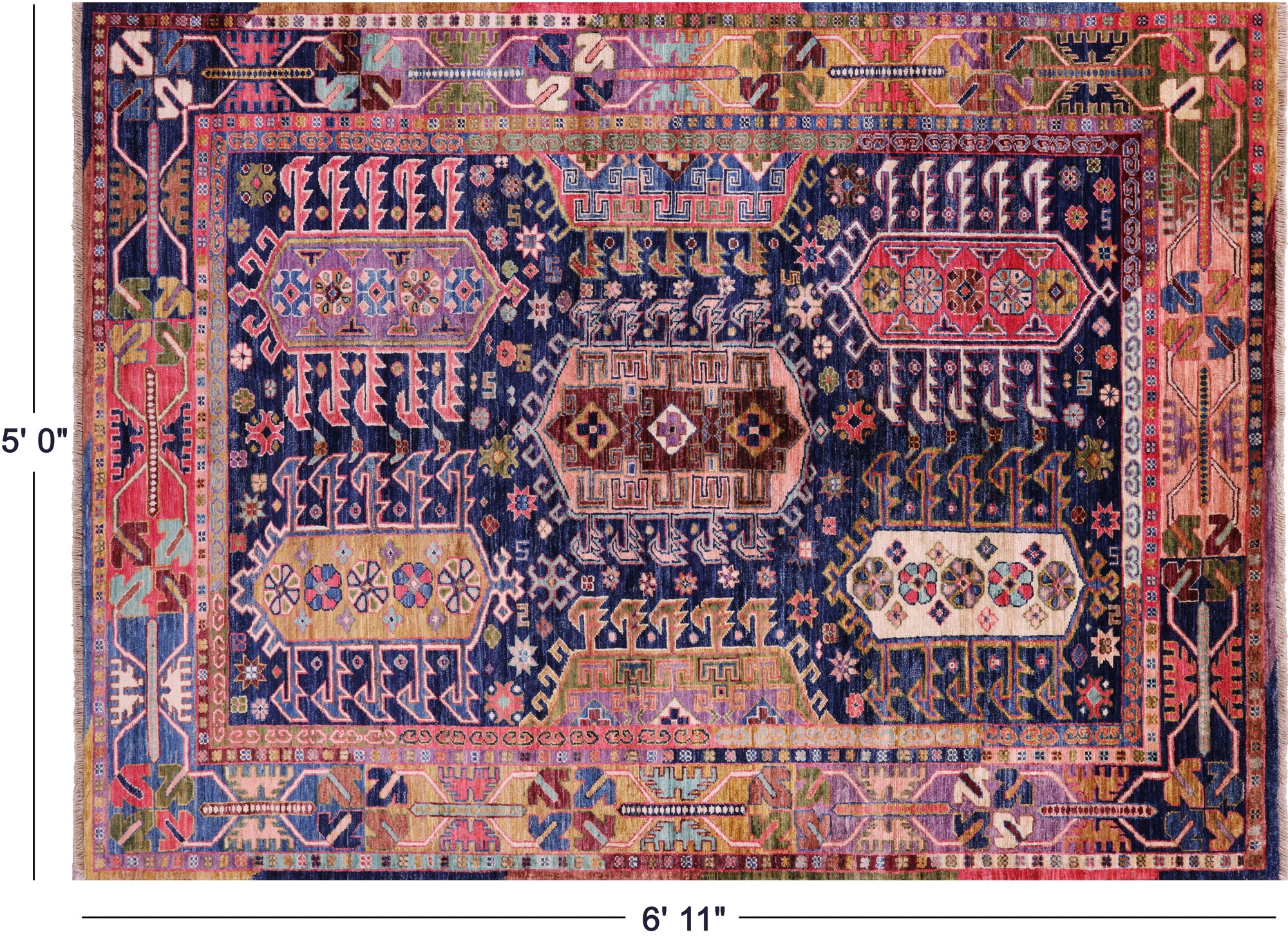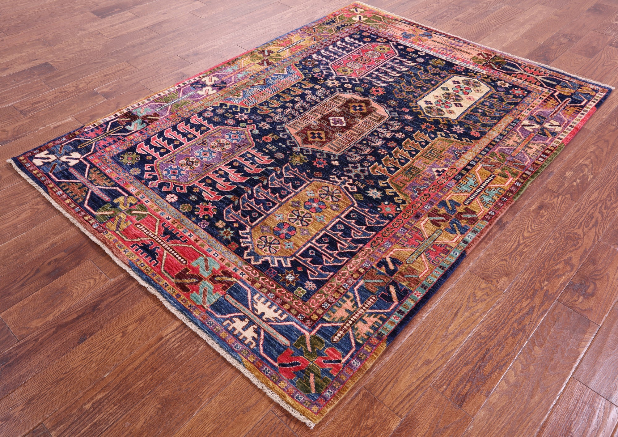 Blue 5' 0" X 6' 11" Tribal Fine Serapi Hand Knotted Wool Rug - Q23353