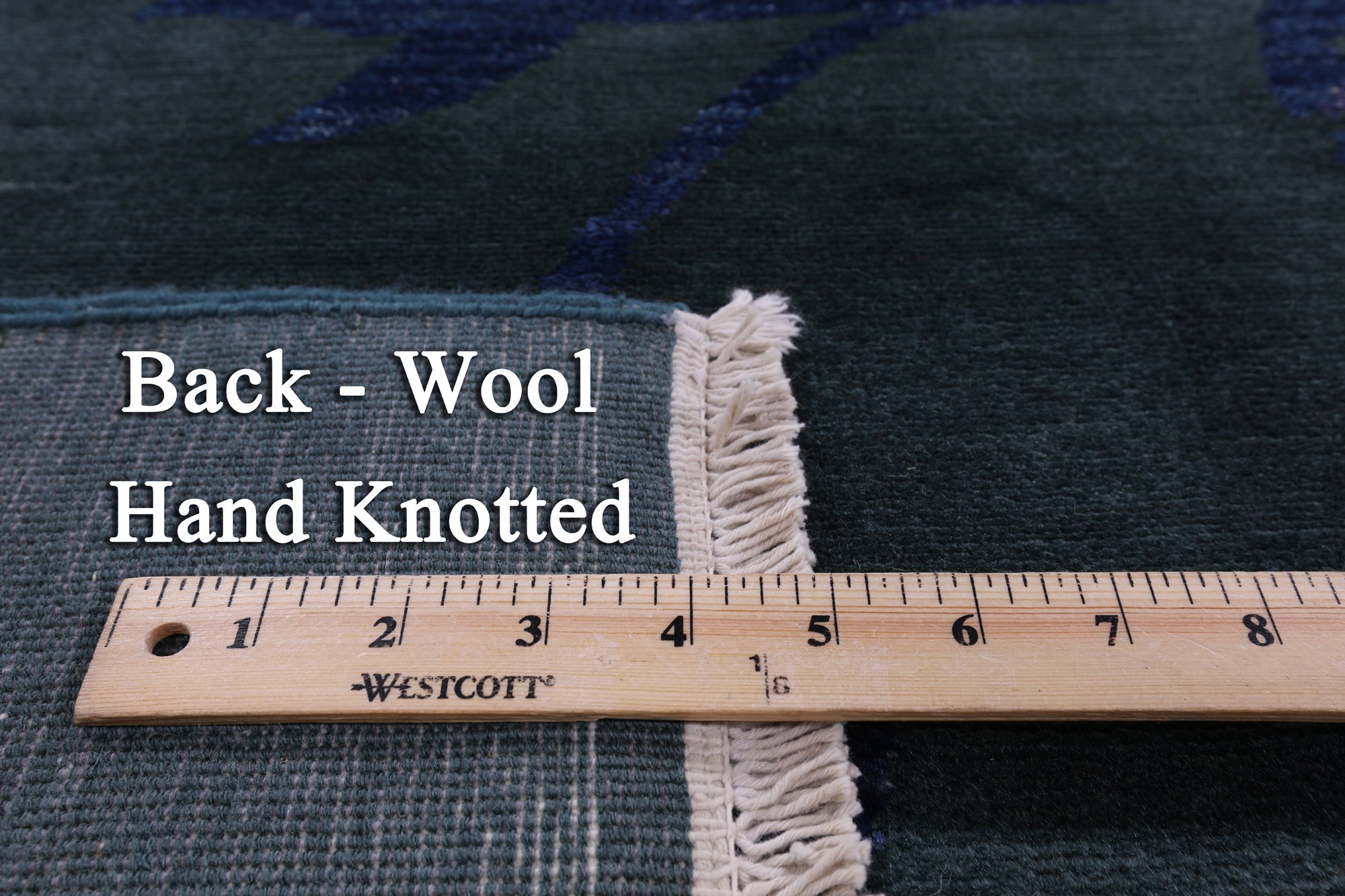 Green 9' 1" X 12' 3" Hand Knotted William Morris Rug - P6858