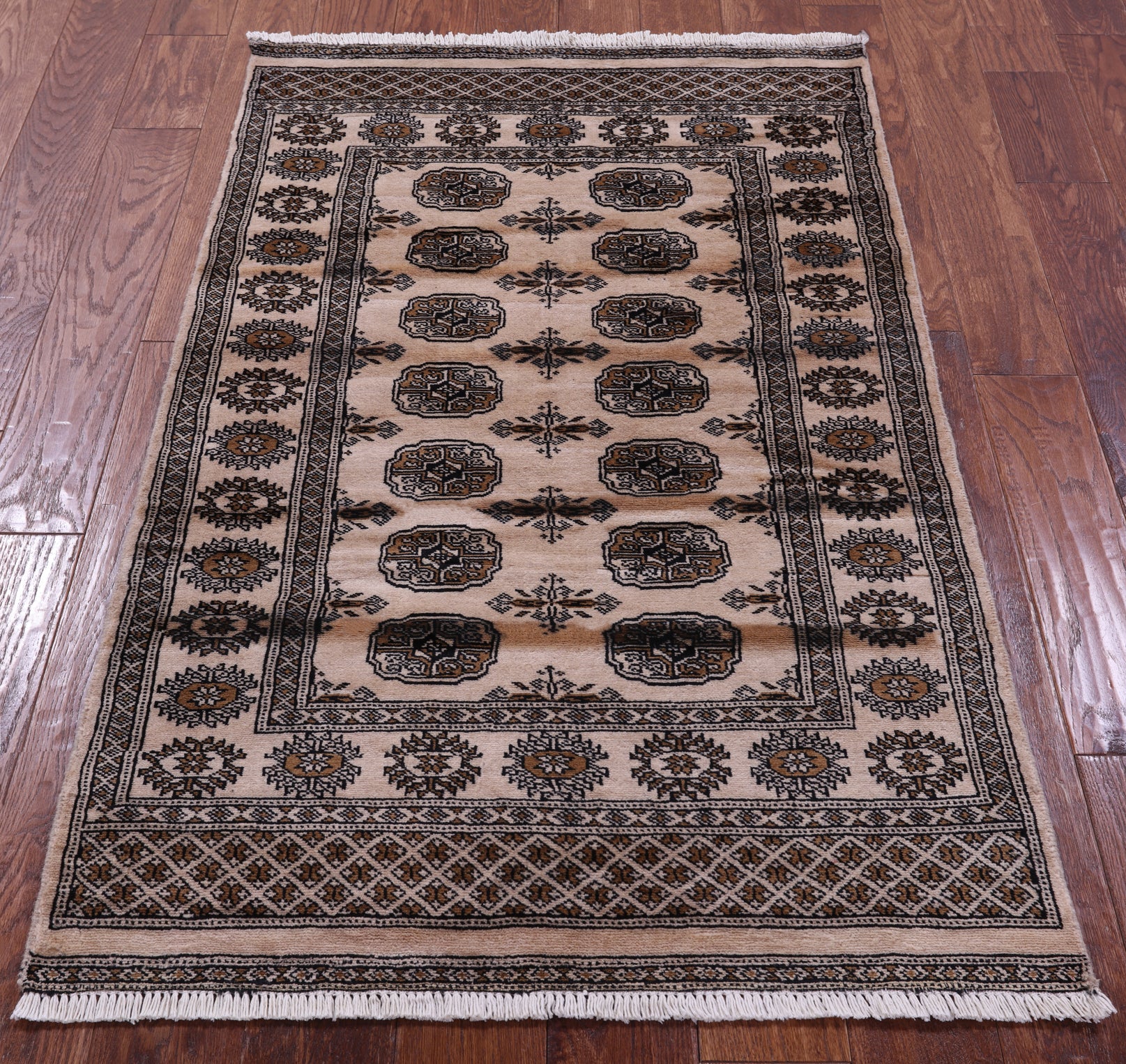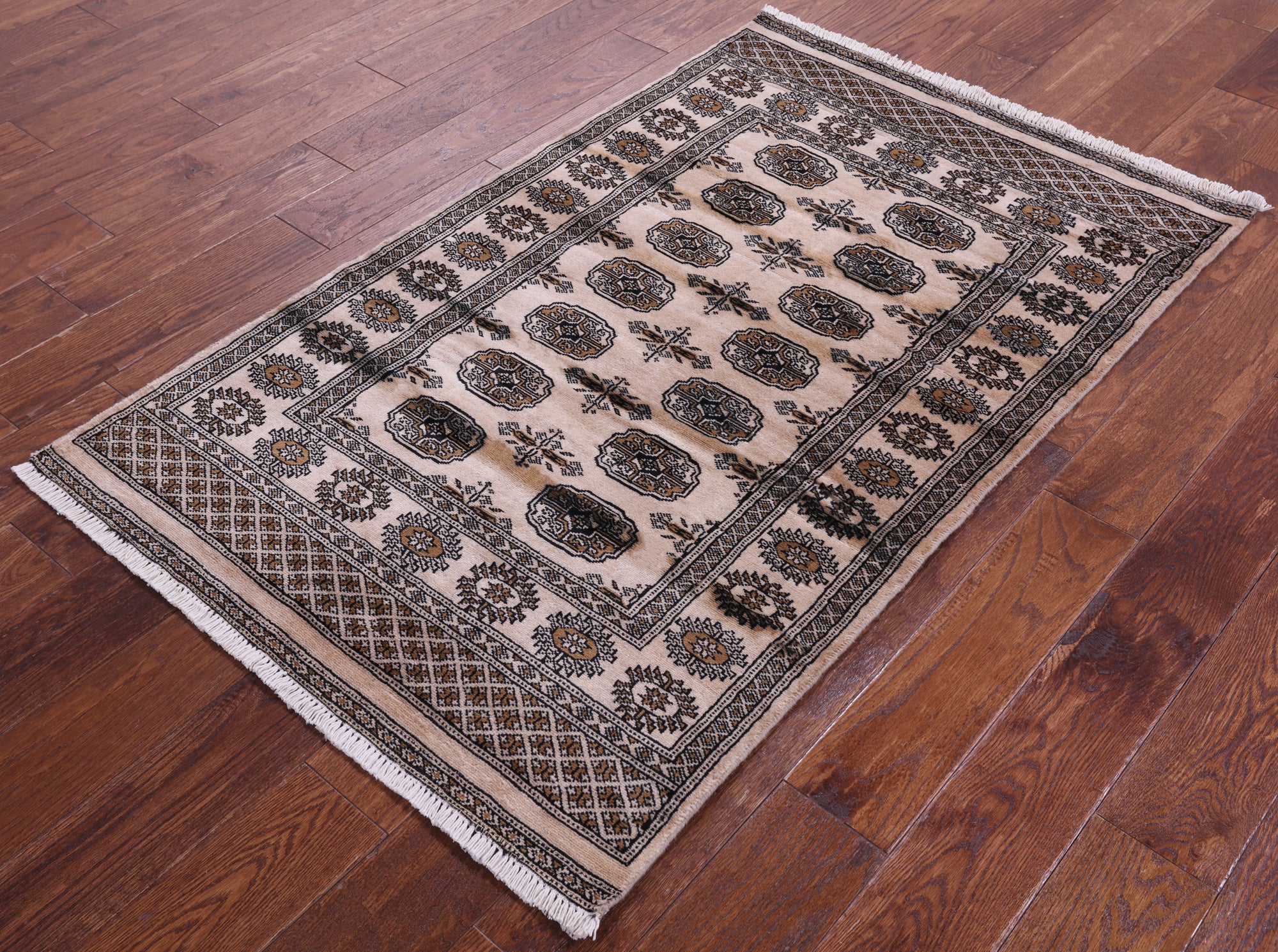 Ivory Silky Bokhara Hand-Knotted Wool Rug 3' 0" X 5' 0" - Q23804 is backordered and will ship as soon as it is back in stock.