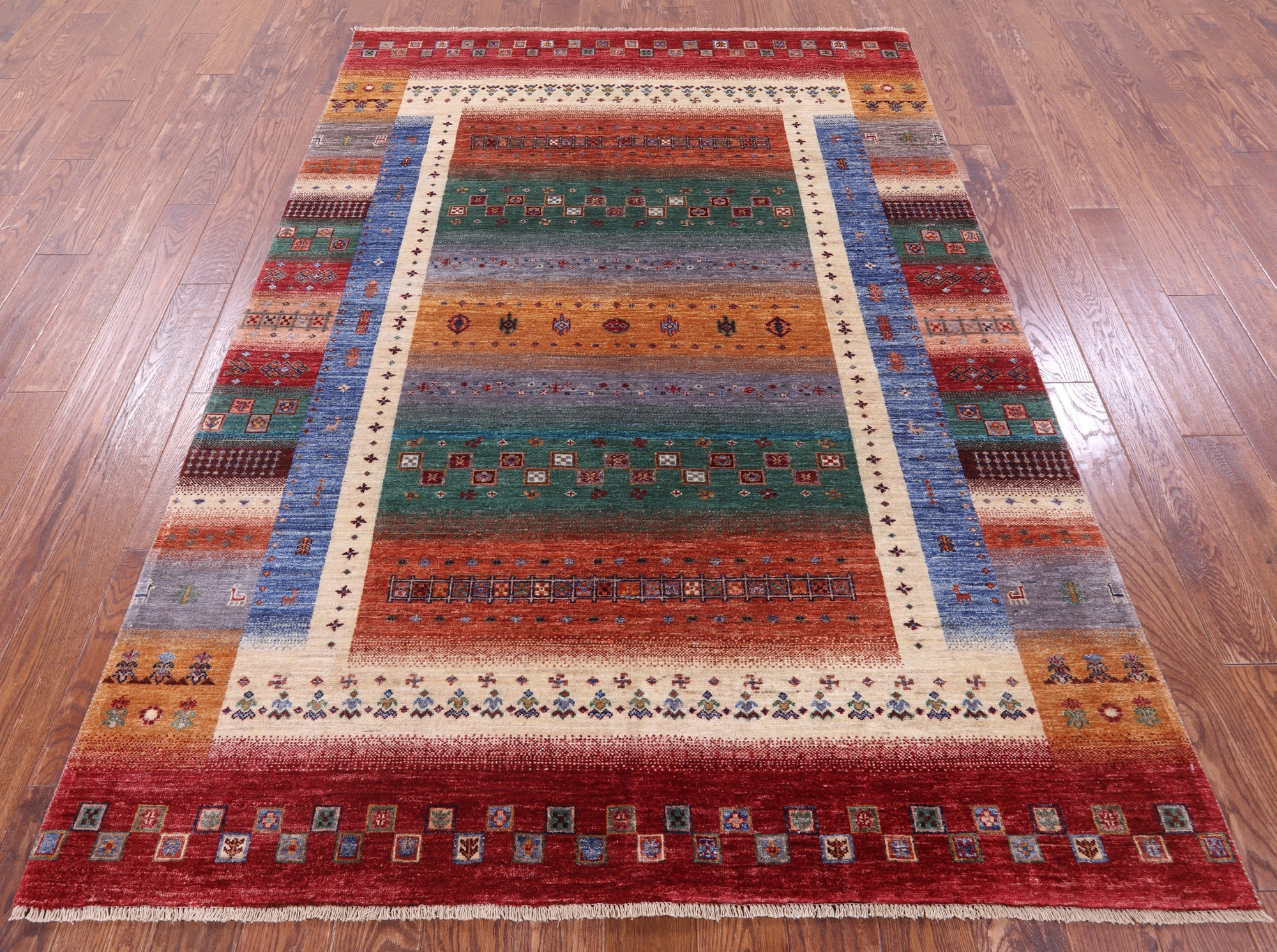 5' 9" X 8' 2" Persian Gabbeh Tribal Hand Knotted Wool Rug - Q16789