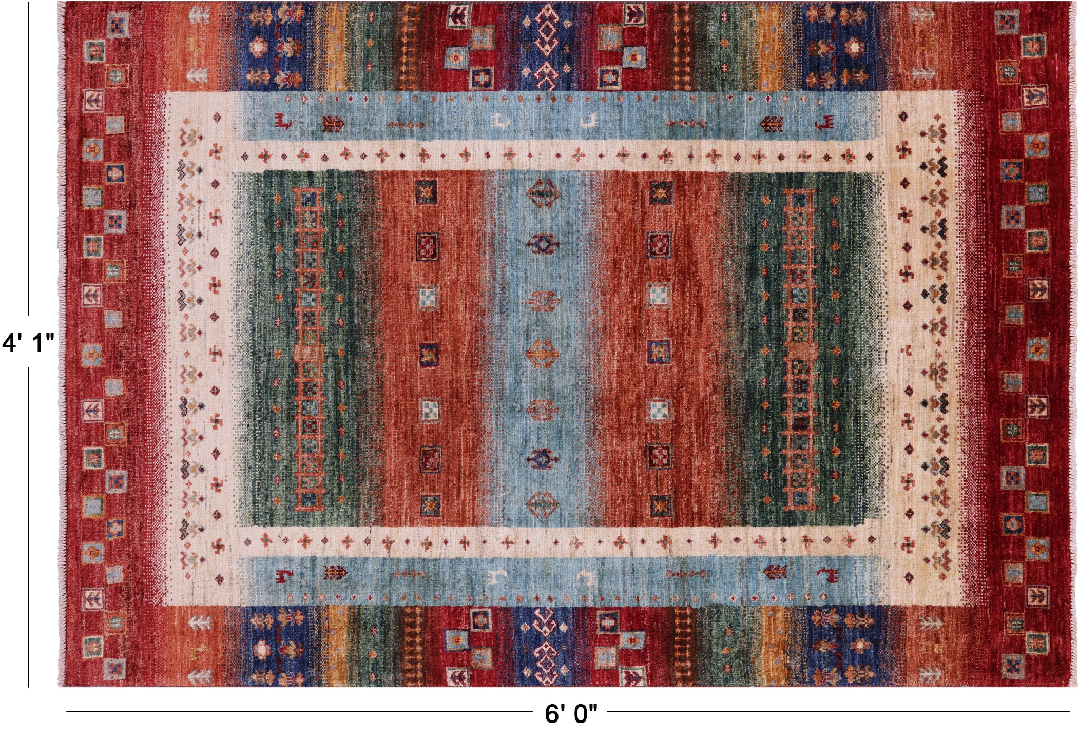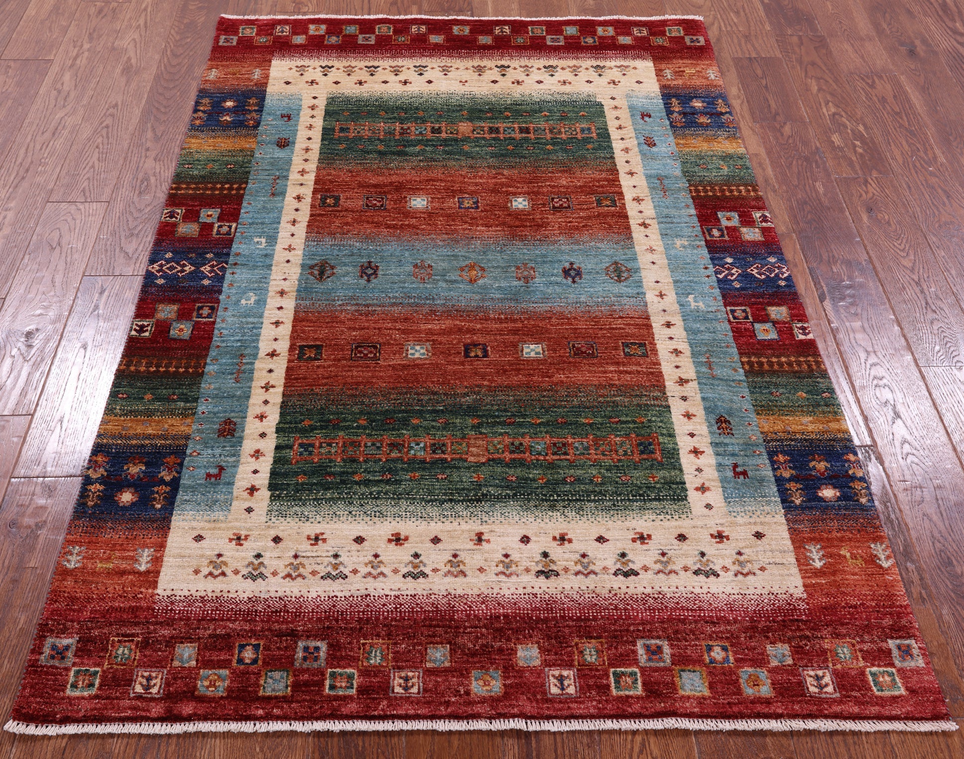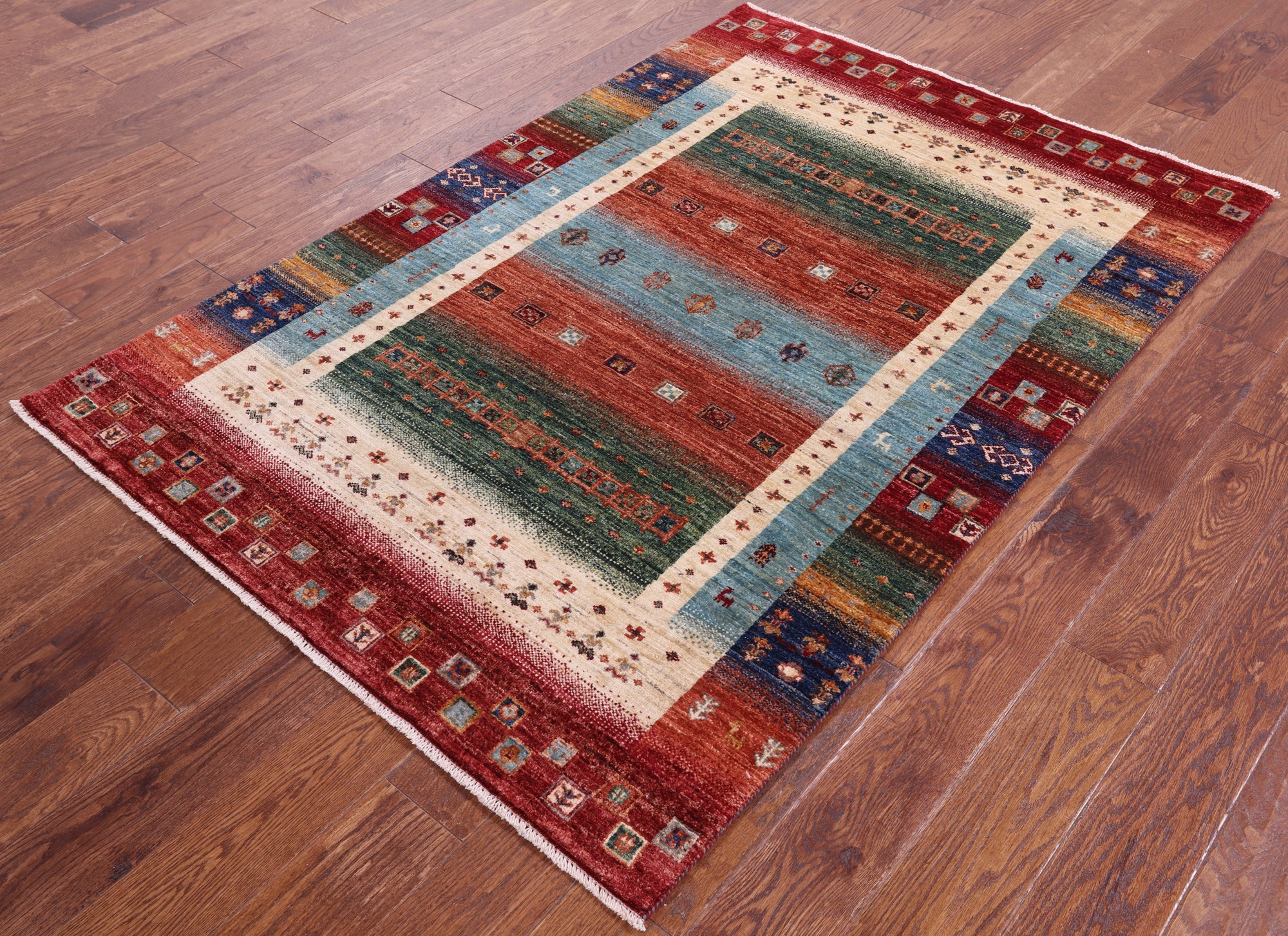 Persian Gabbeh Tribal Hand Knotted Wool Rug 4' 1" X 6' 0" - Q17132