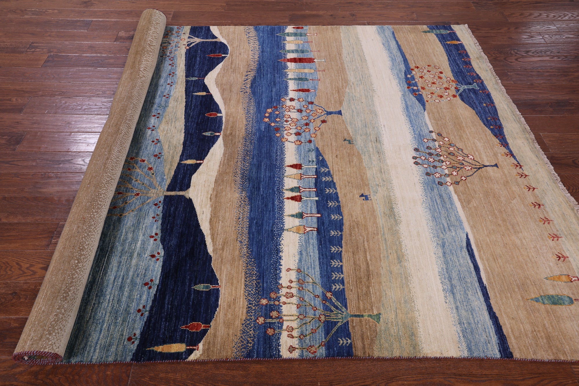Persian Gabbeh Tribal Hand Knotted Wool Rug 6' 7" X 9' 7" - Q17304
