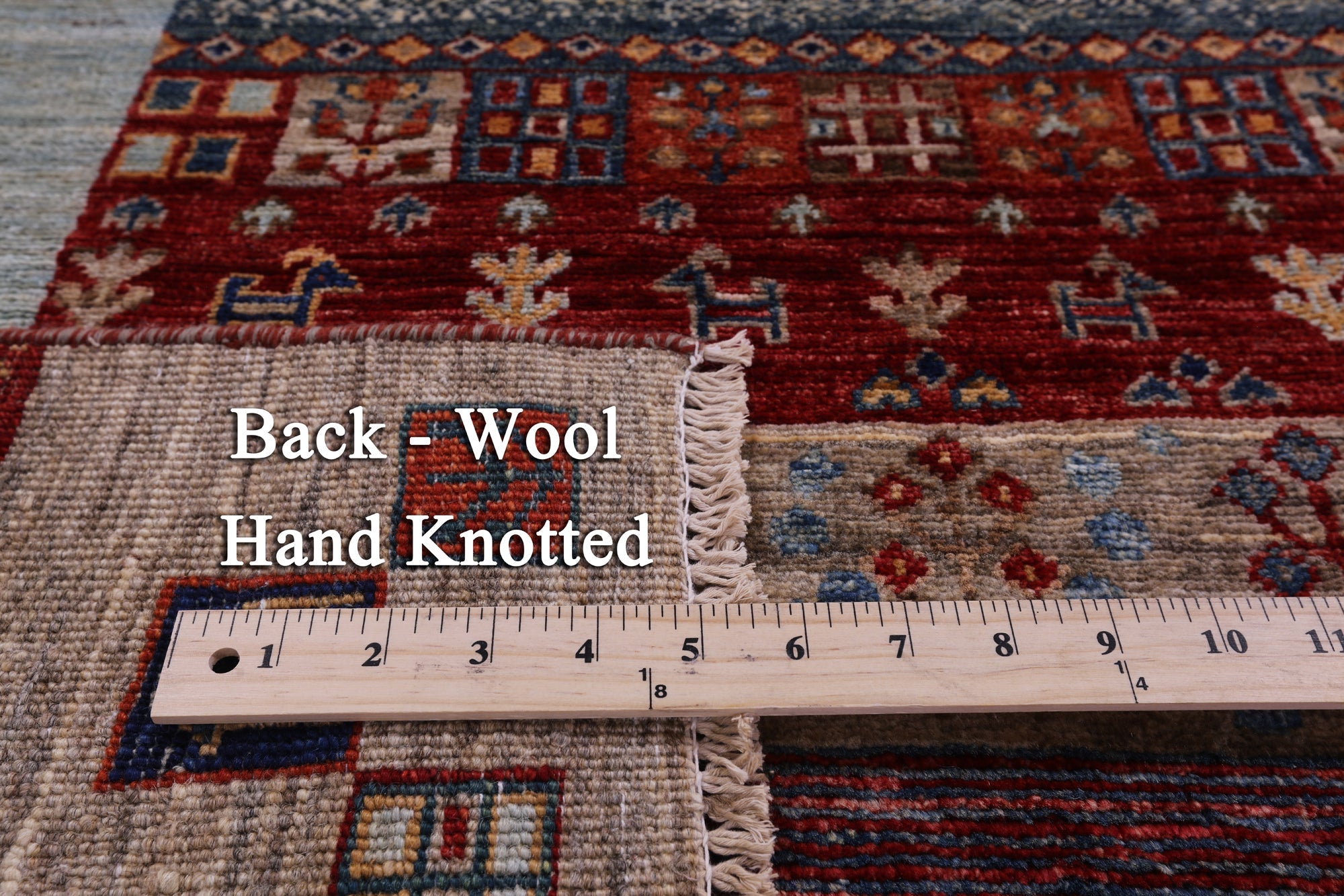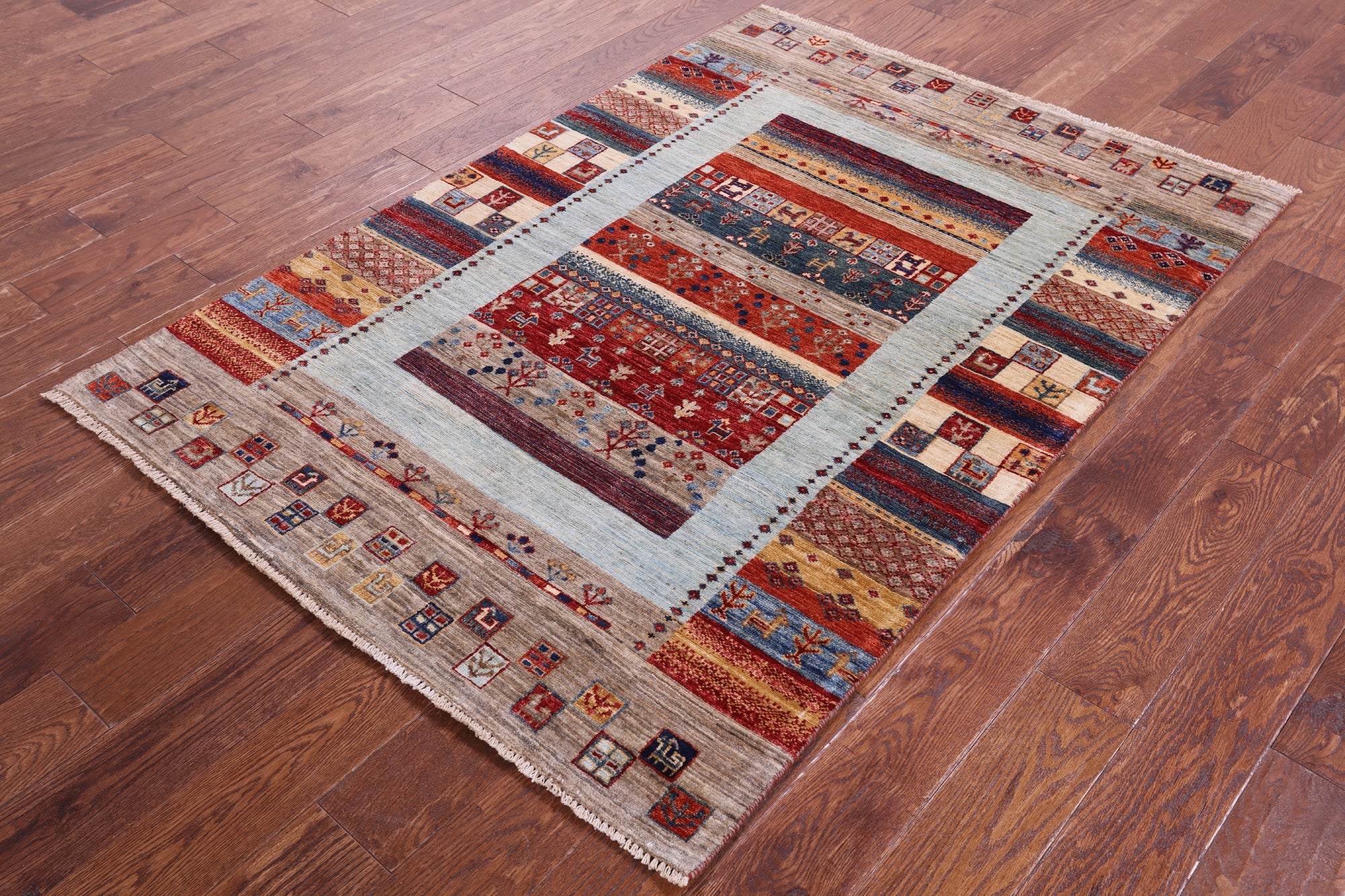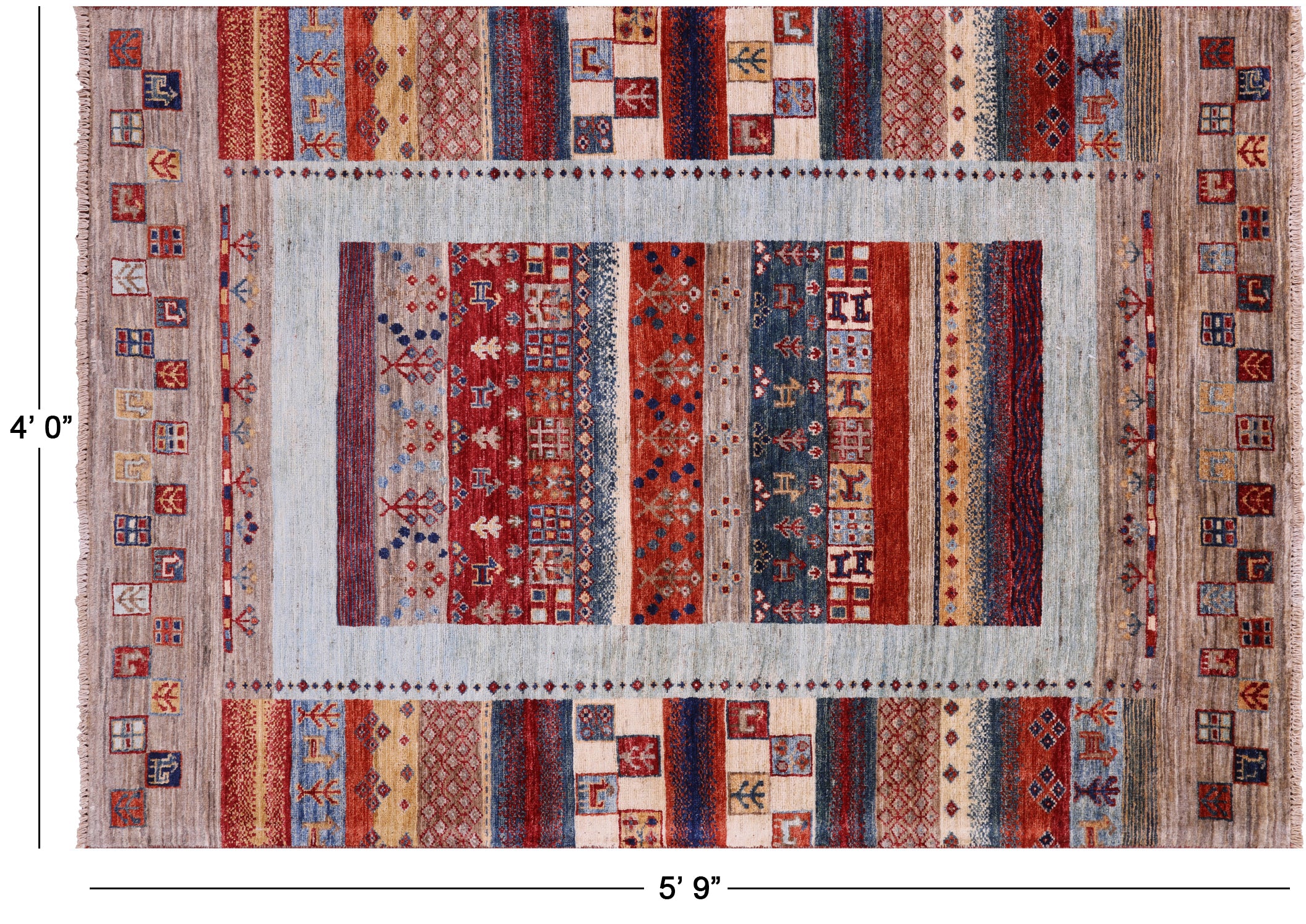 Persian Gabbeh Tribal Hand-Knotted Wool Rug 4' 0" X 5' 10" - Q20514