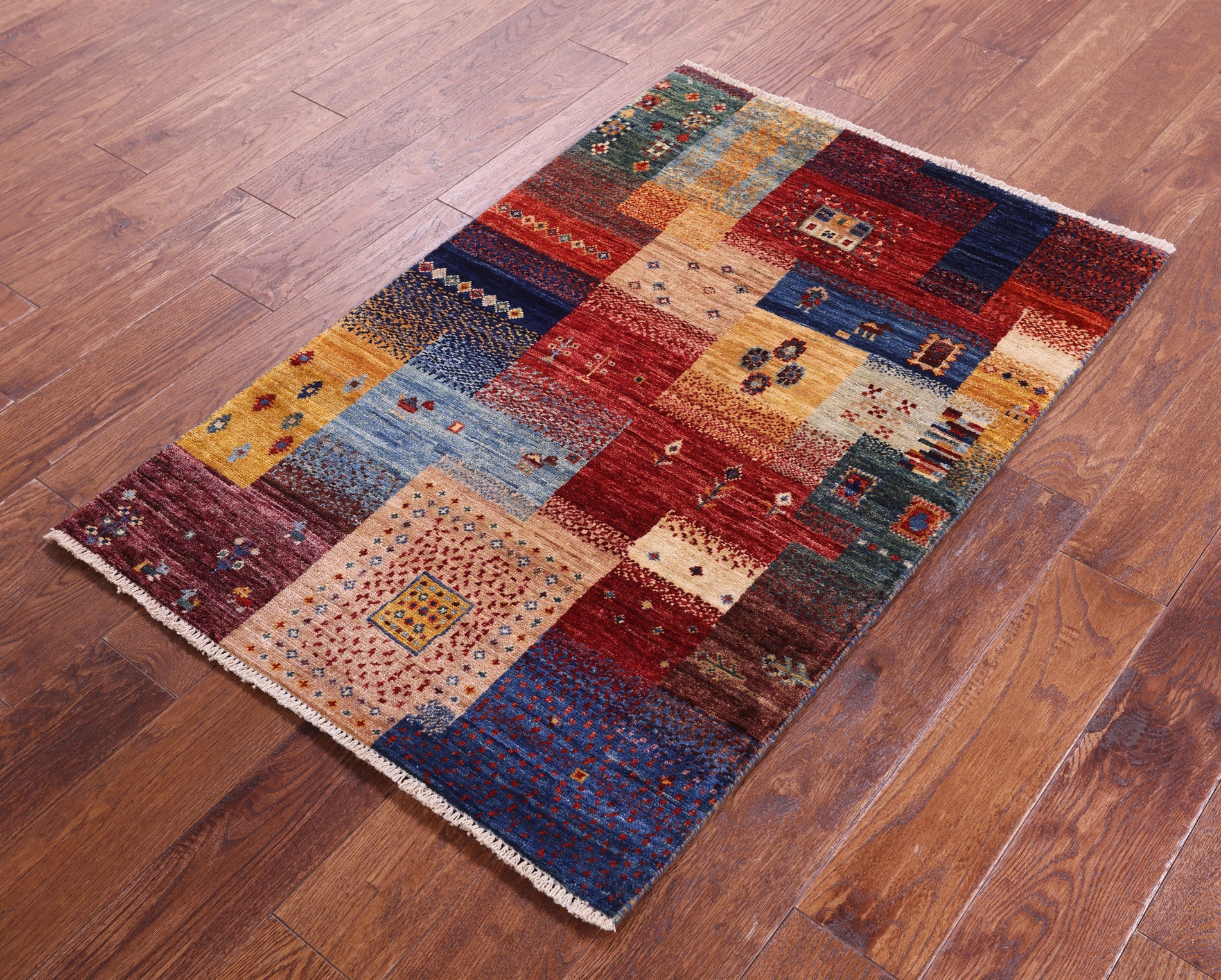 Gabbeh rugs are nothing short of simplistic and tribal, with designs consisting of primarily geometric shapes, animals, and plants. All done in a simplified way and based on the nomadic observation. Commonly brightly colored, these rugs are fun and beautiful and will add a warm touch to any home.