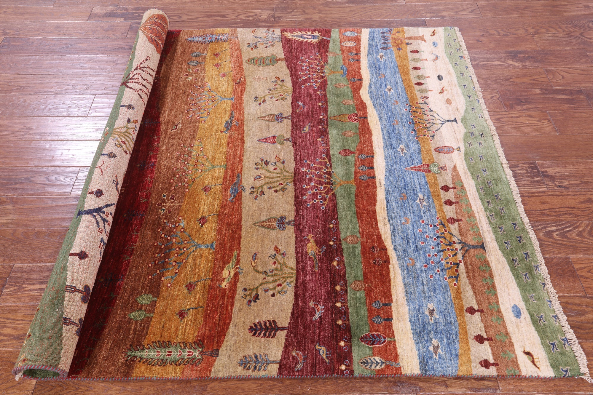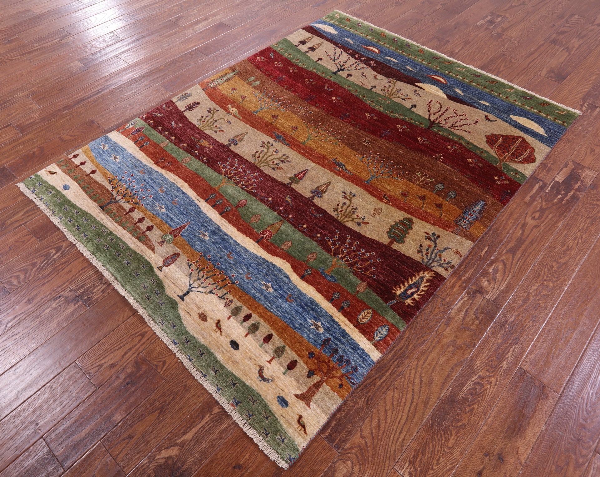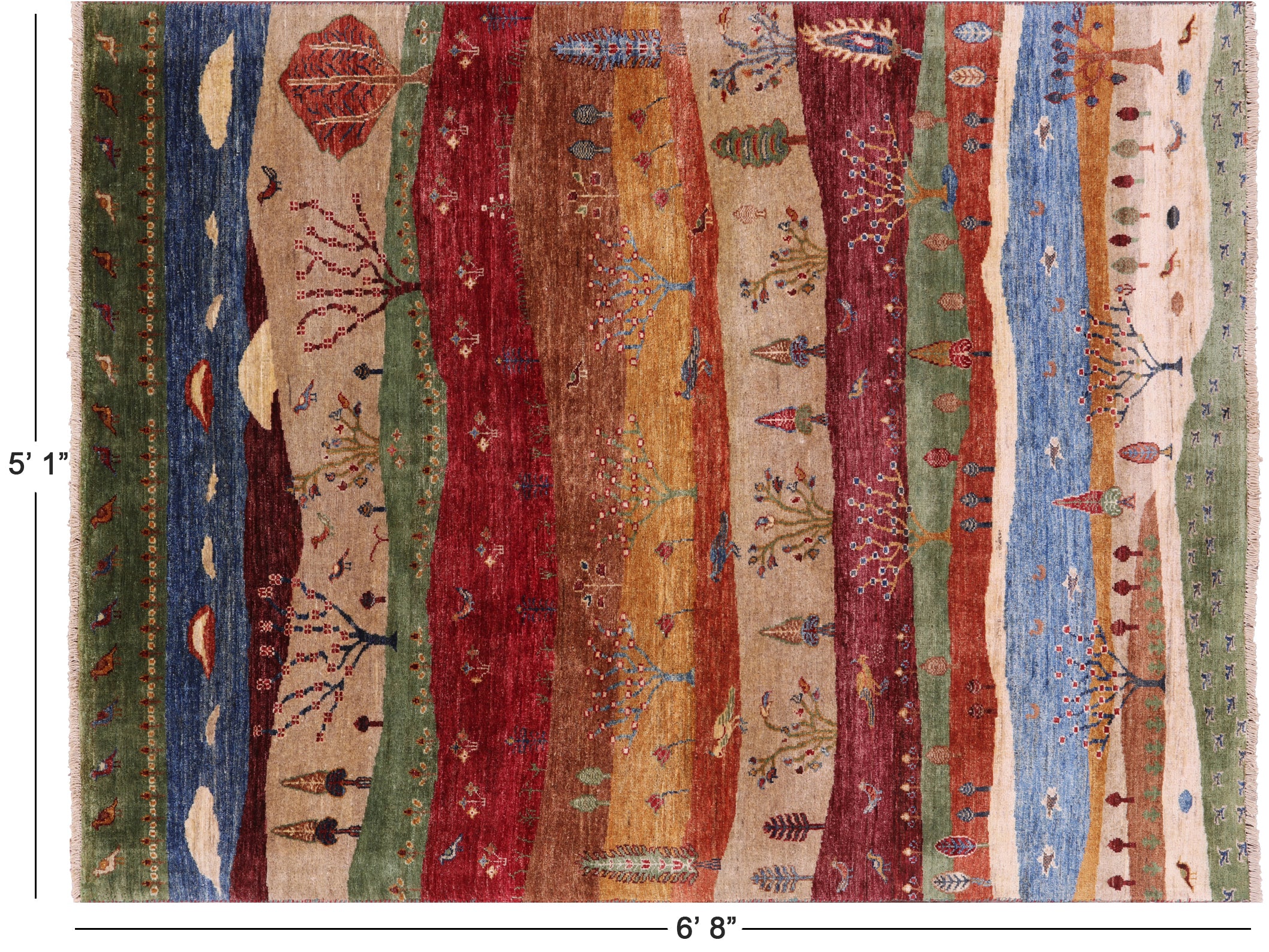 Persian Gabbeh Tribal Hand-Knotted Wool Rug 5' 1" X 6' 8" - Q20650