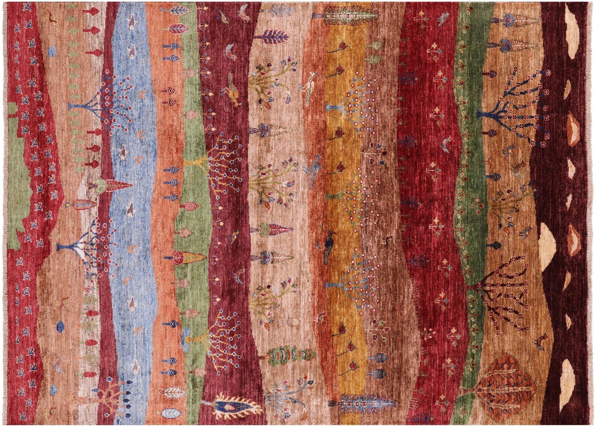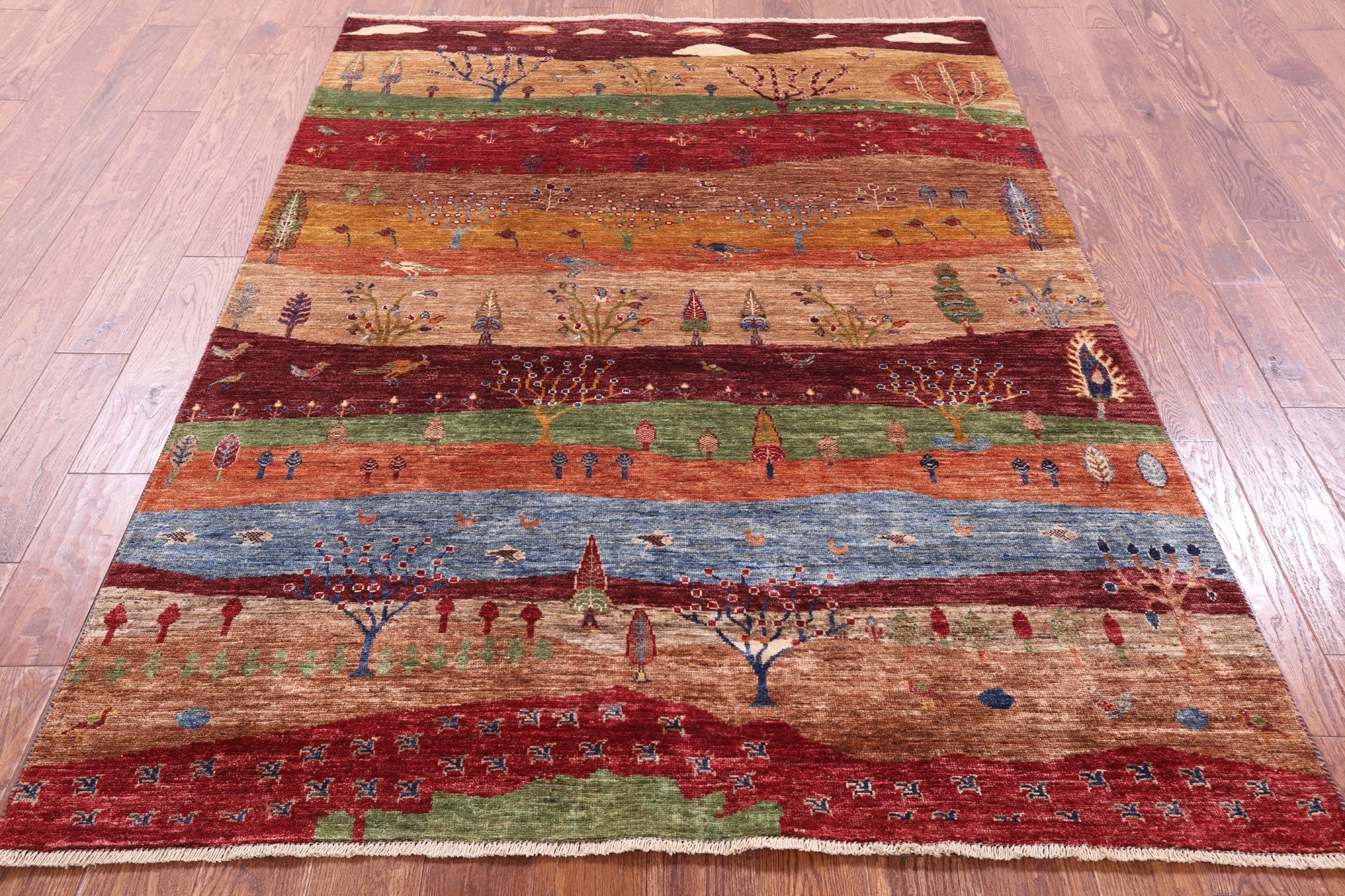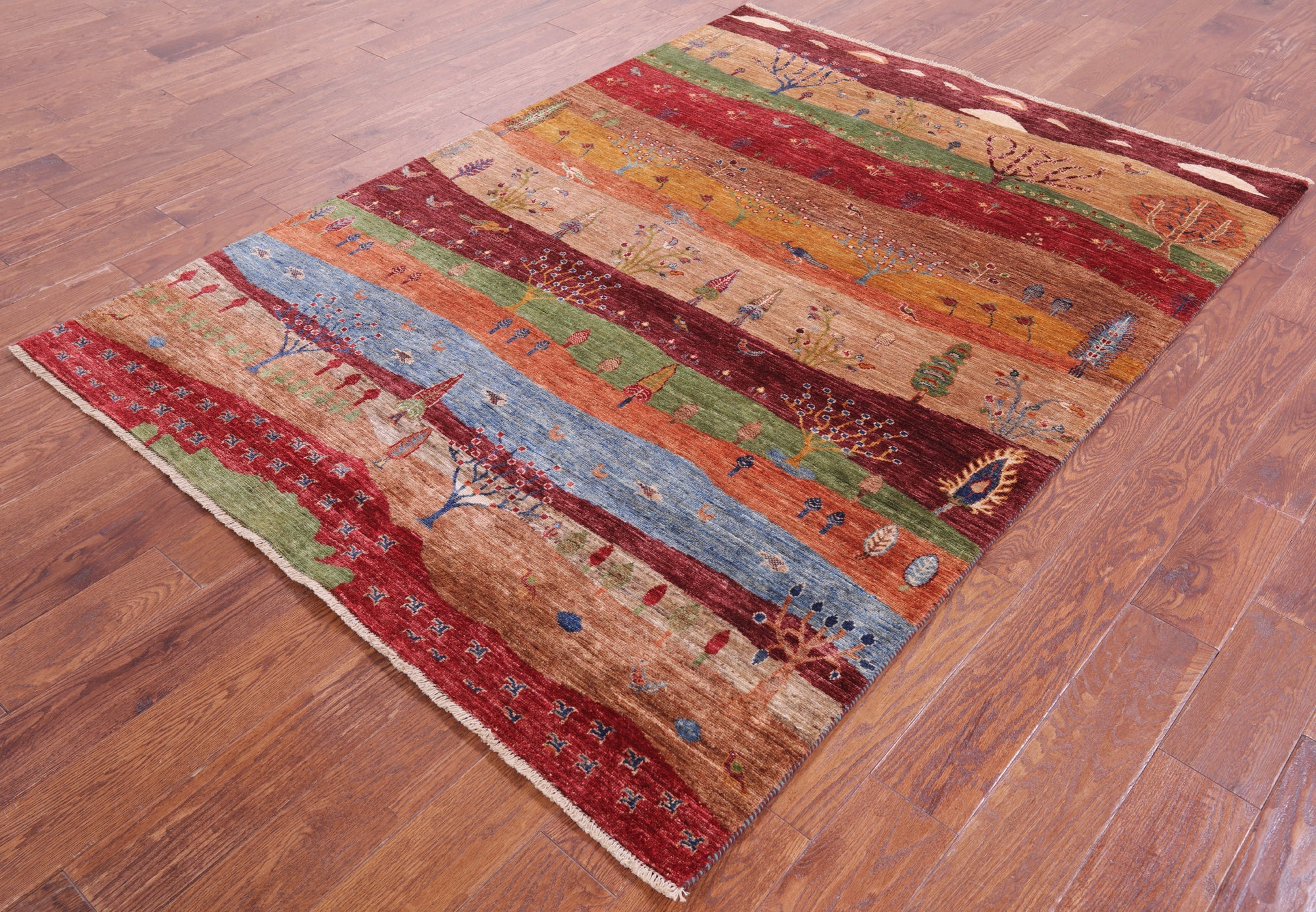 Gabbeh rugs are nothing short of simplistic and tribal, with designs consisting of primarily geometric shapes, animals, and plants. All done in a simplified way and based on the nomadic observation. Commonly brightly colored, these rugs are fun and beautiful and will add a warm touch to any home.
