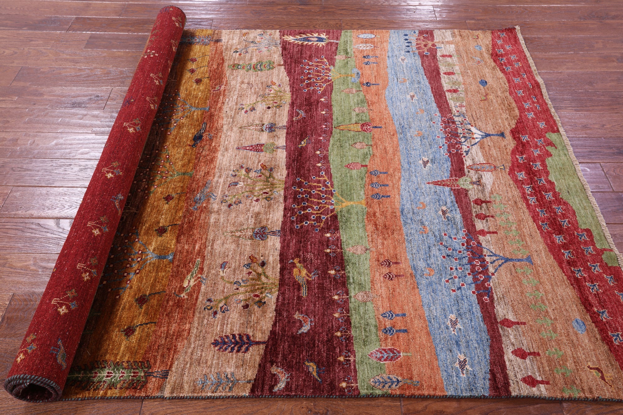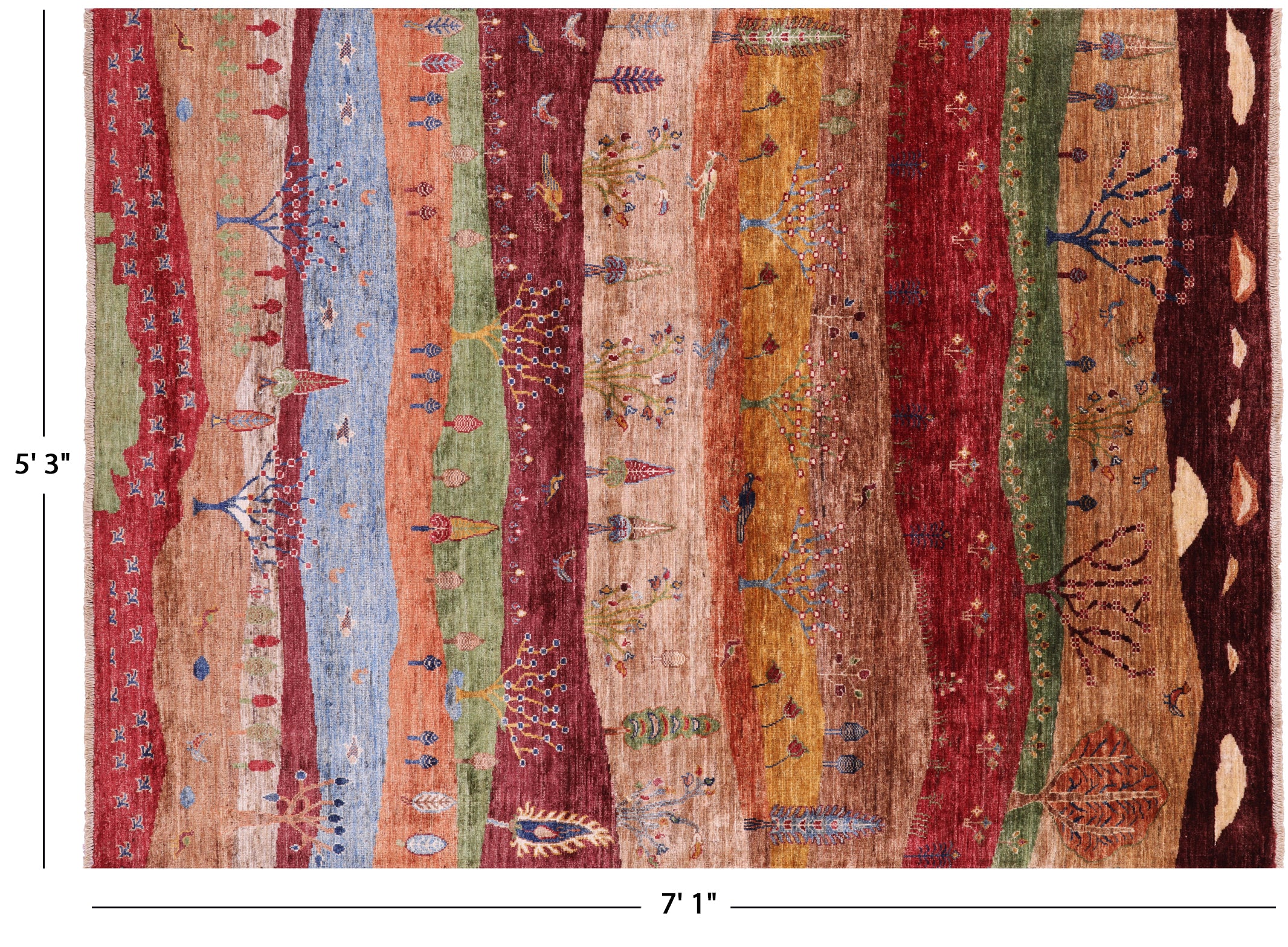 Persian Gabbeh Tribal Hand Knotted Wool Rug 5' 3" X 7' 1" - Q20653