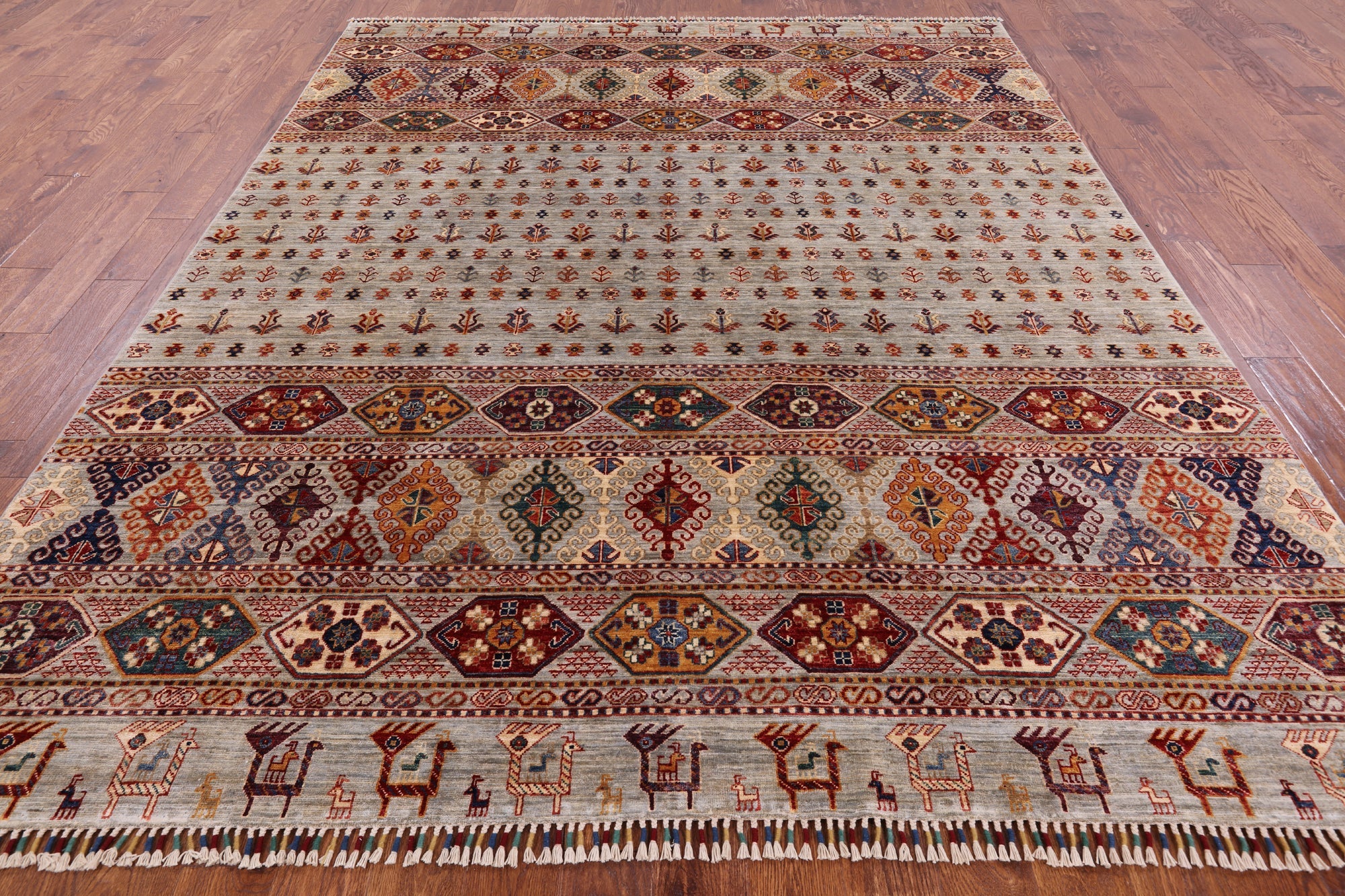 8' 0" X 9' 10" Persian Gabbeh Tribal Hand Knotted Wool Rug - Q2930 is backordered and will ship as soon as it is back in stock.