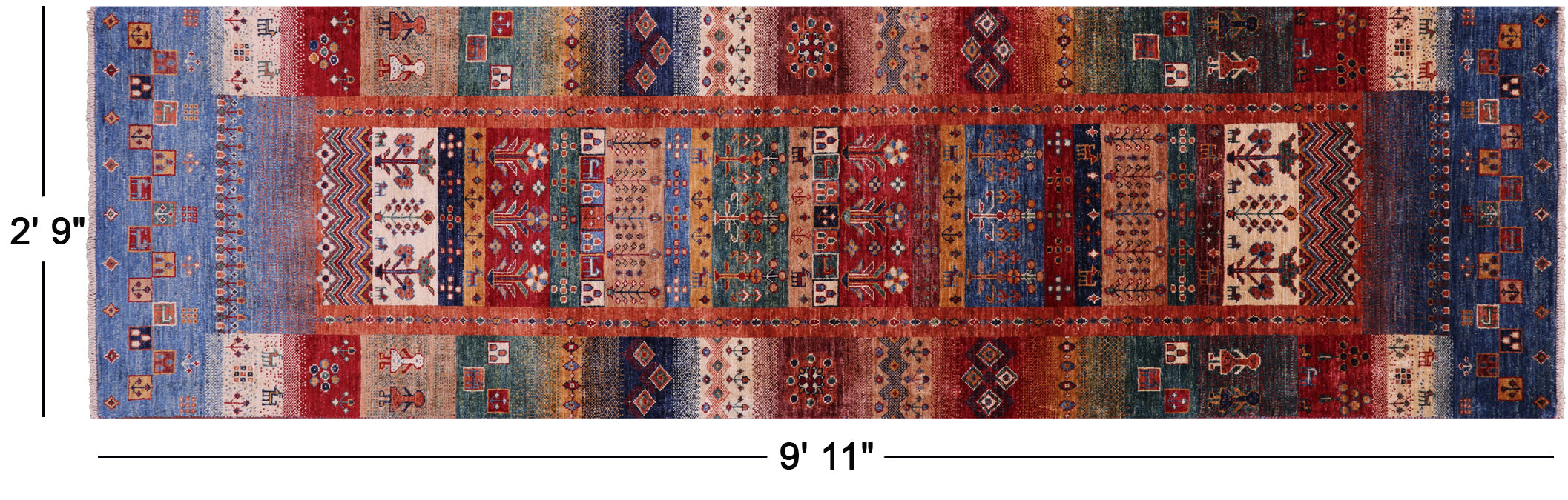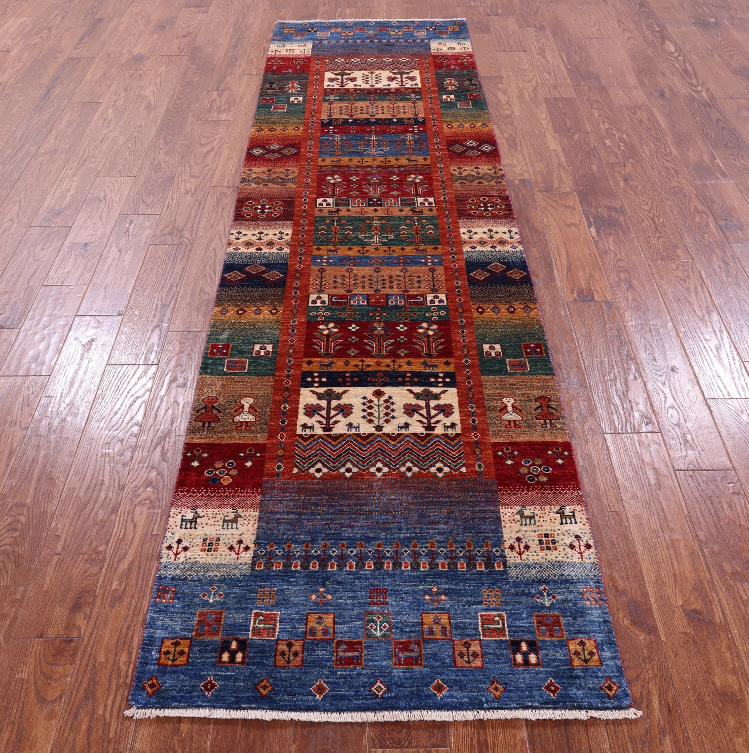 Persian Gabbeh Tribal Hand Knotted Wool Runner Rug 2' 9" X 9' 11" - Q17231