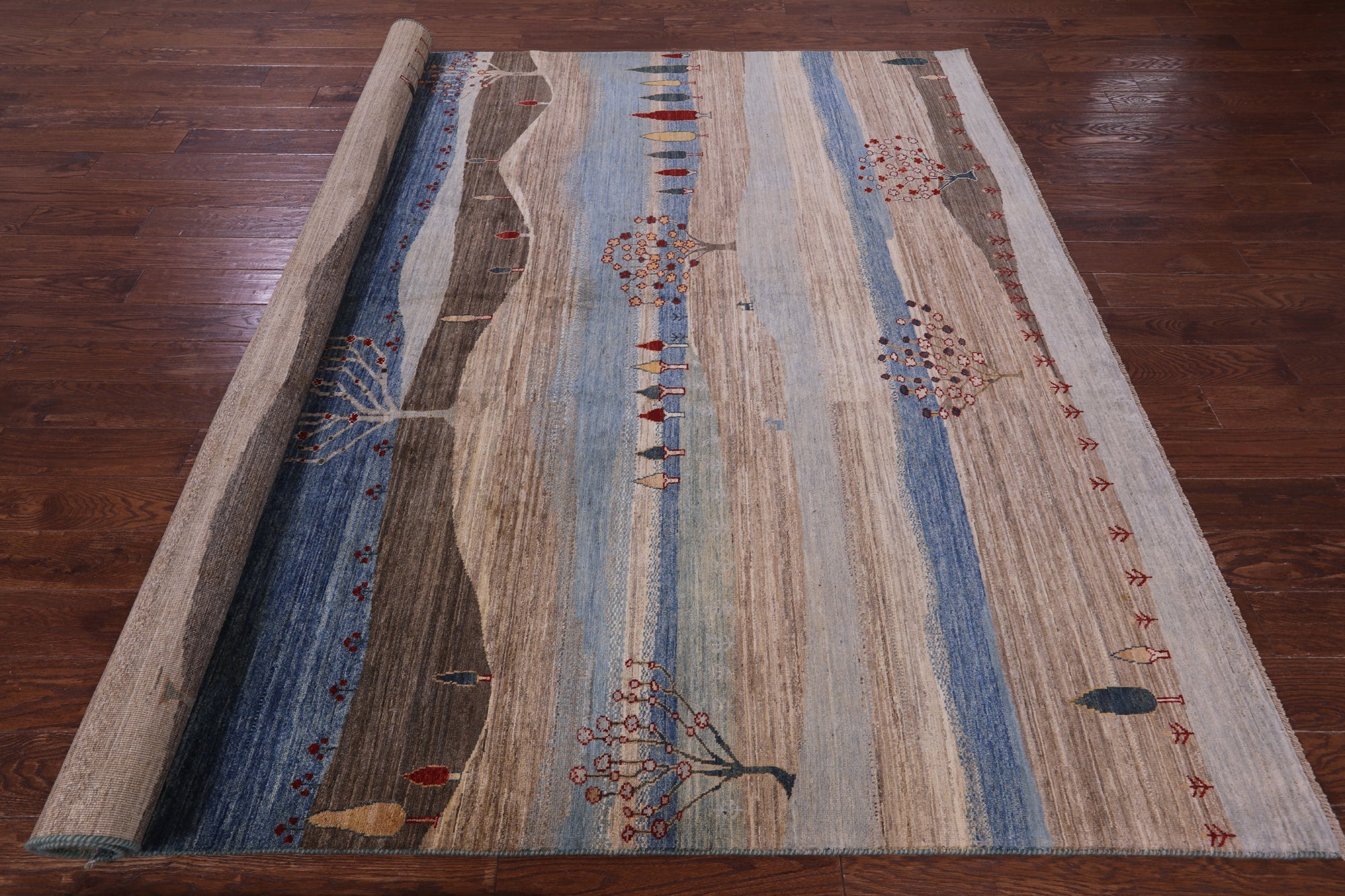 Gabbeh rugs are nothing short of simplistic and tribal, with designs consisting of primarily geometric shapes, animals, and plants. All done in a simplified way and based on the nomadic observation. Commonly brightly colored, these rugs are fun and beautiful and will add a warm touch to any home.