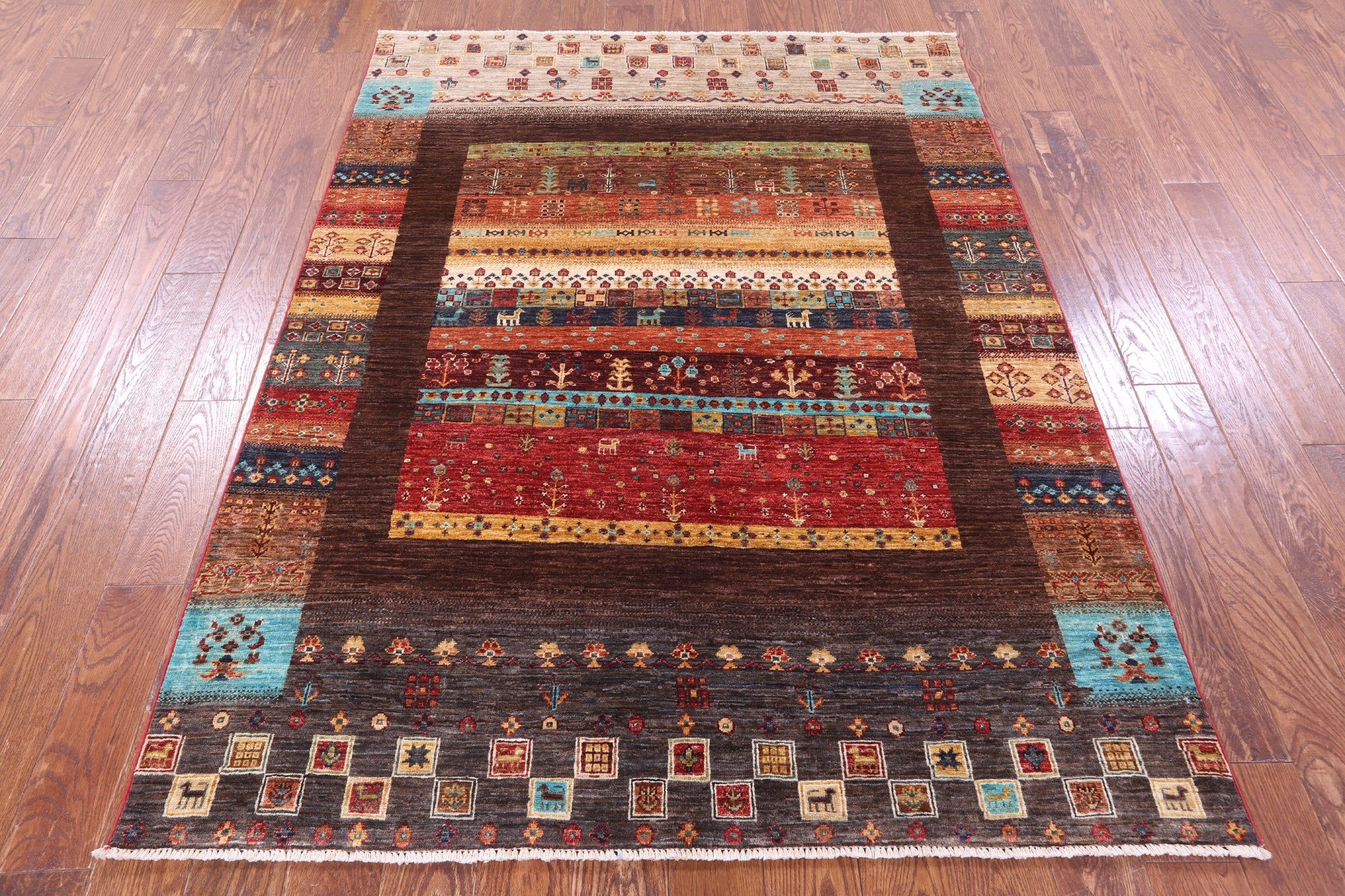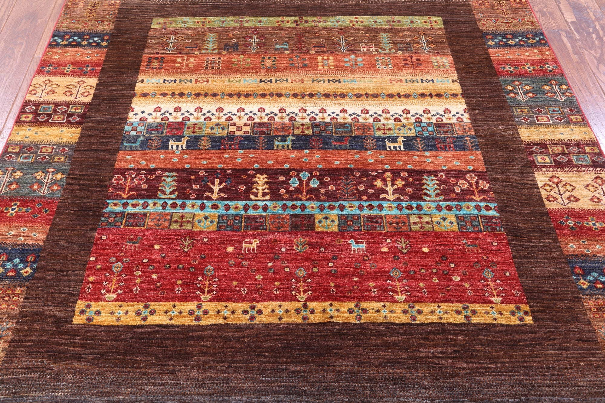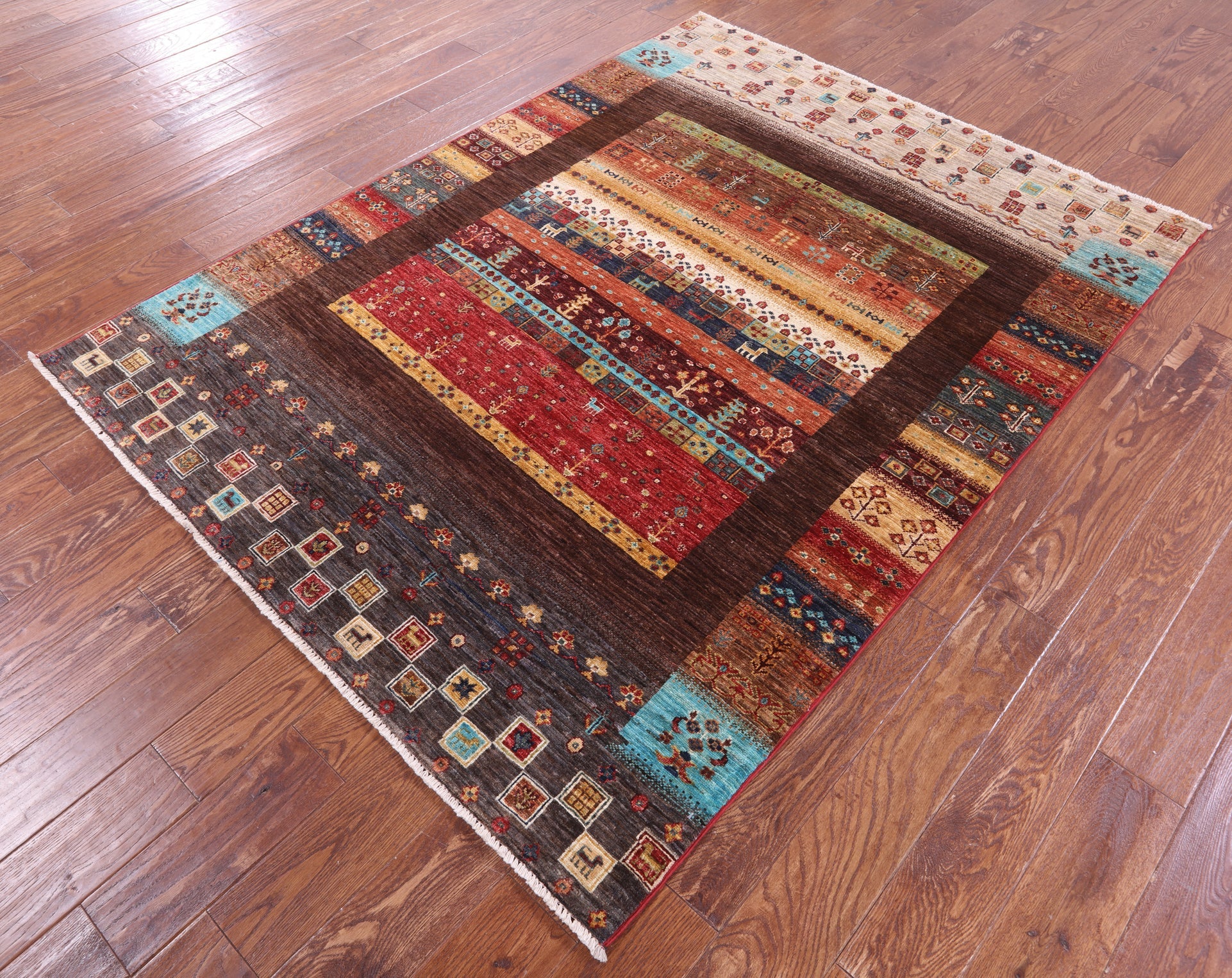 5' 1" X 6' 9" Persian Gabbeh Tribal Handmade Rug - Q20914 is backordered and will ship as soon as it is back in stock.