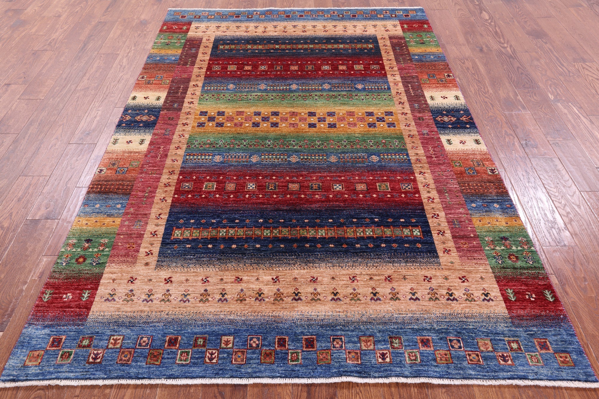 Persian Gabbeh Tribal Handmade Wool Rug 5' 7" X 8' 2" - Q17106 is backordered and will ship as soon as it is back in stock.