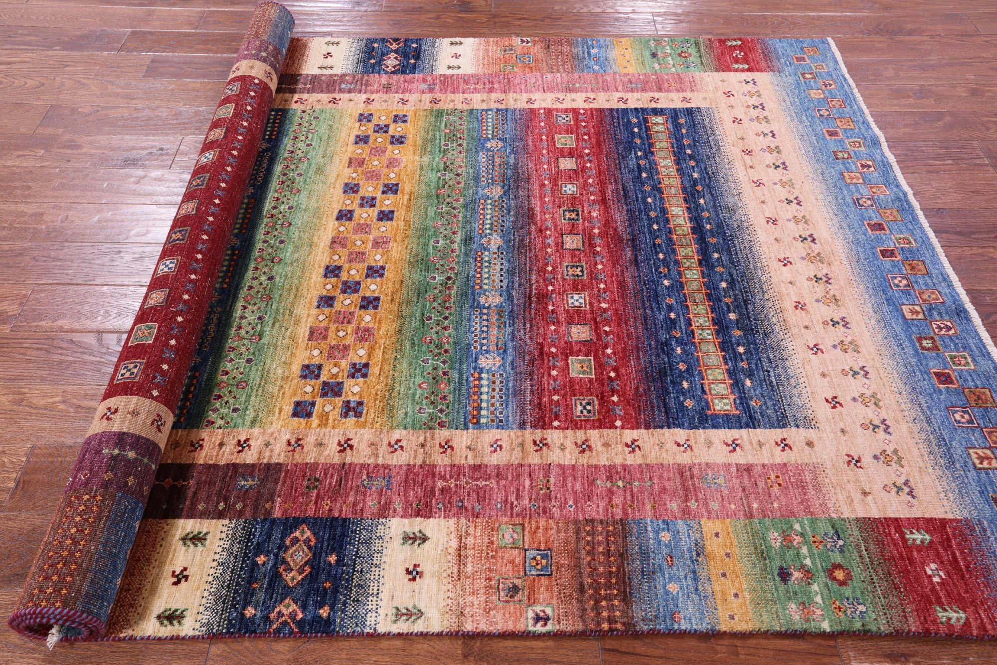 Persian Gabbeh Tribal Handmade Wool Rug 5' 7" X 8' 2" - Q17106