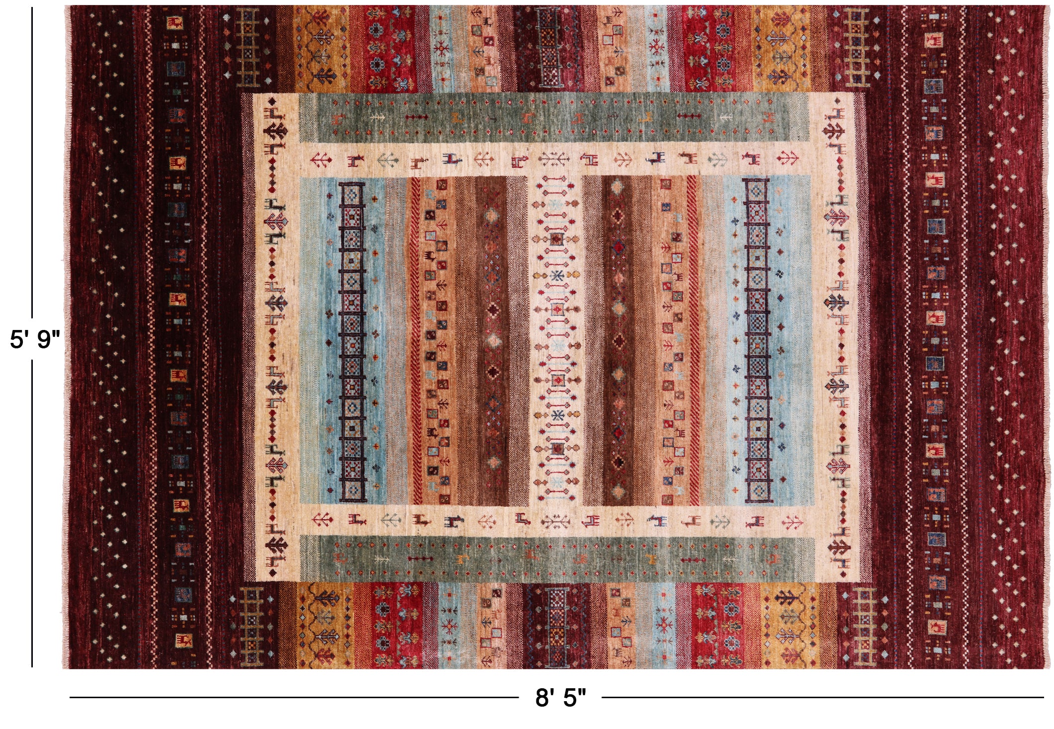 Persian Gabbeh Tribal Handmade Wool Rug 5' 9" X 8' 5" - Q17229