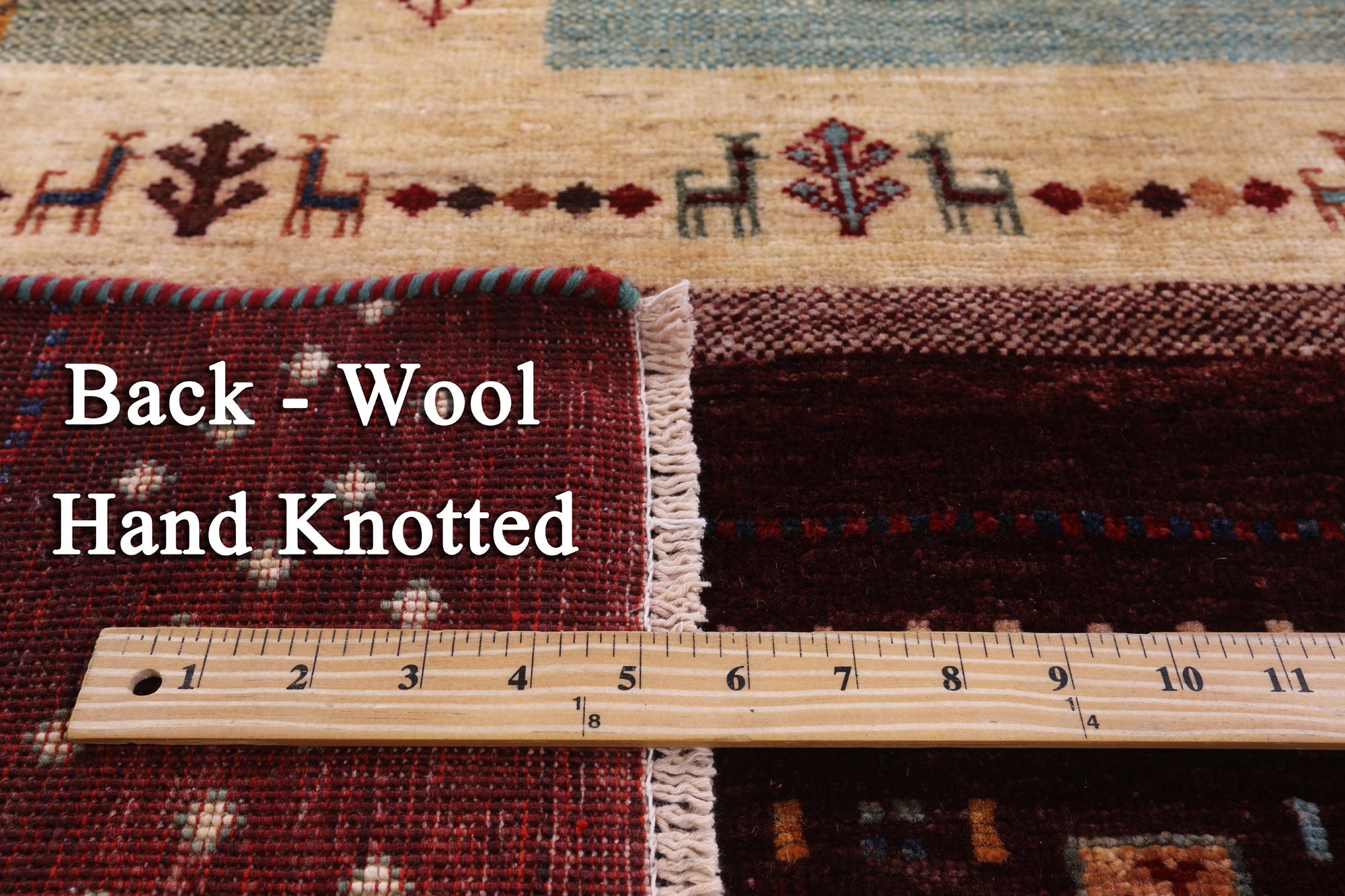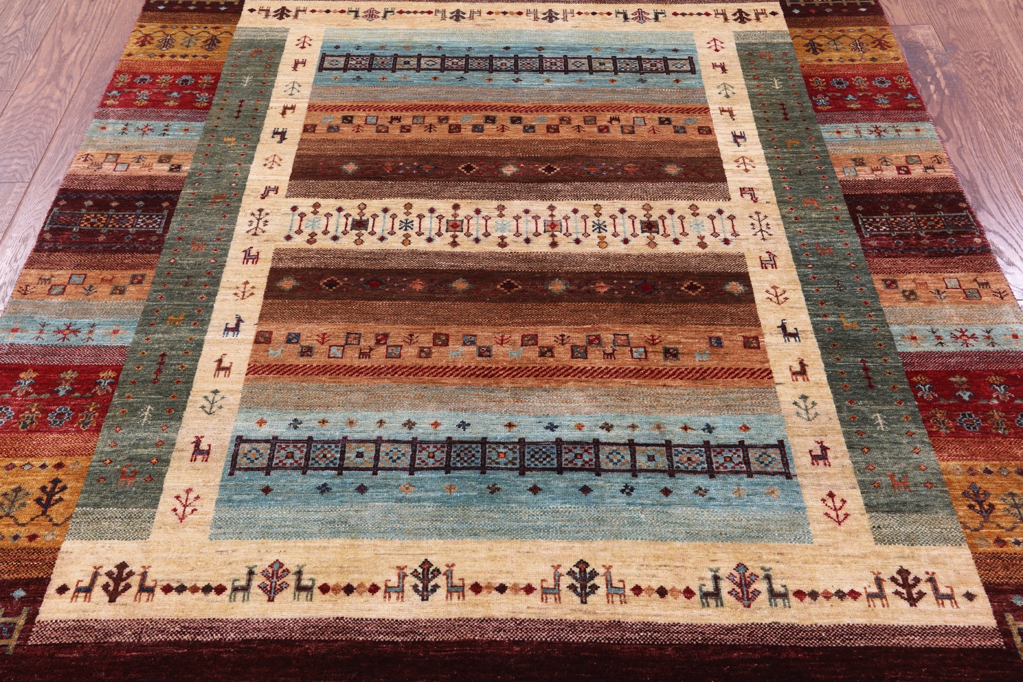 Persian Gabbeh Tribal Handmade Wool Rug 5' 9" X 8' 5" - Q17229 is backordered and will ship as soon as it is back in stock.