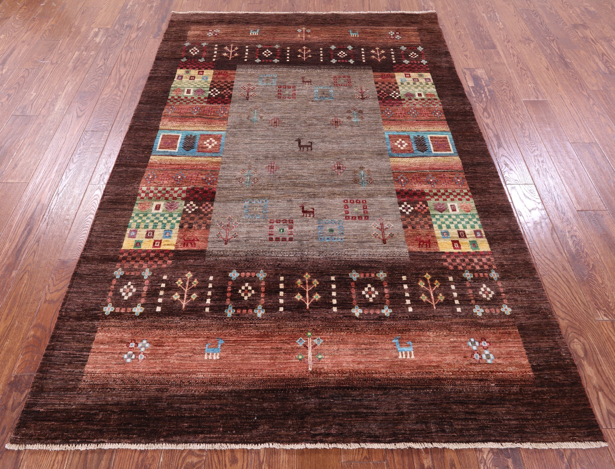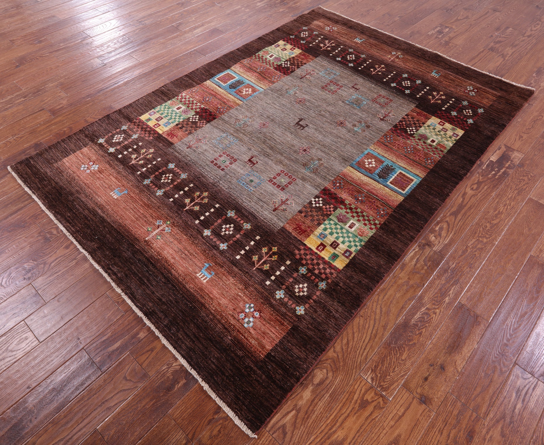 Gabbeh rugs are nothing short of simplistic and tribal, with designs consisting of primarily geometric shapes, animals, and plants. All done in a simplified way and based on the nomadic observation. Commonly brightly colored, these rugs are fun and beautiful and will add a warm touch to any home.